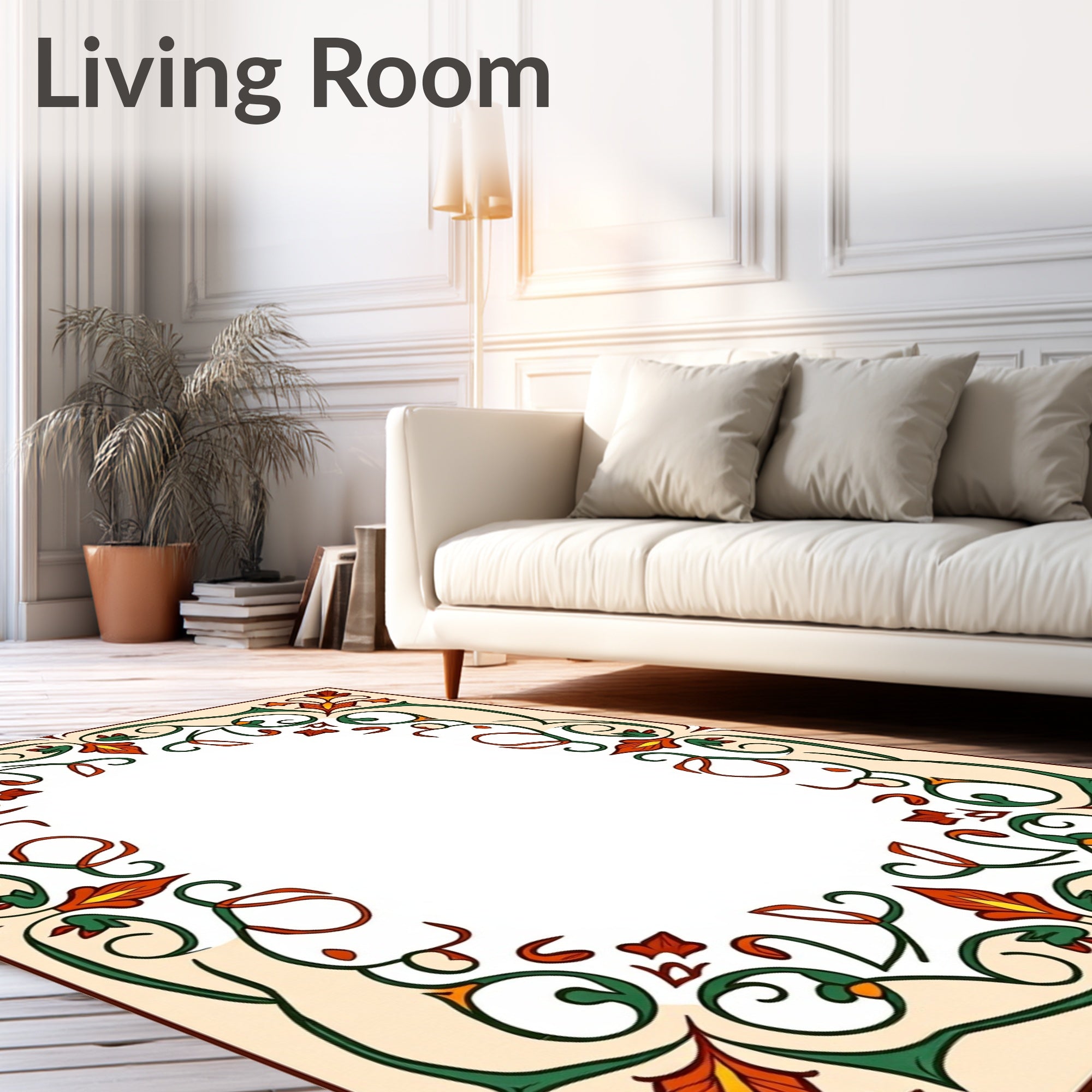 Ultra Soft Area Rug, Non Slip, Stain Resistant, Washable Area Rugs for Living Room, Bedroom, Woodland Tapestry Elegant Floral Swirl Arrangement(Beige) Overview: