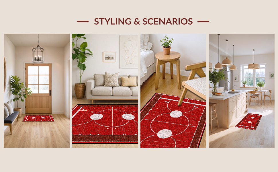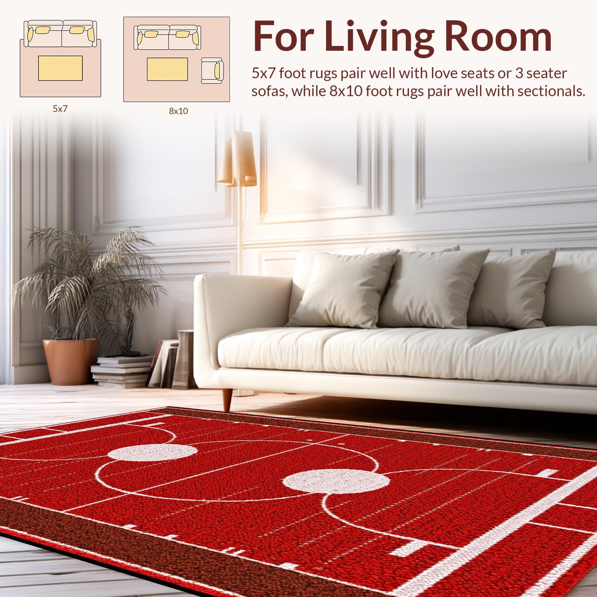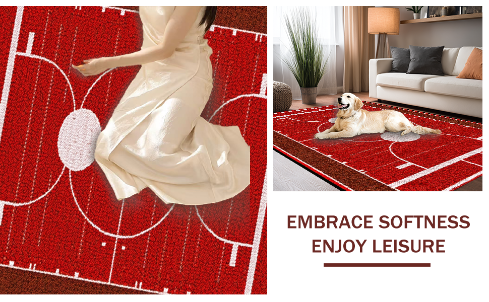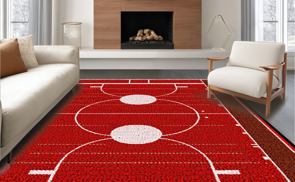 Ultra Soft Area Rug, Non Slip, Stain Resistant, Washable Area Rugs for Living Room, Bedroom, Youthful Energetic Sports Aesthetic(Red) Overview: