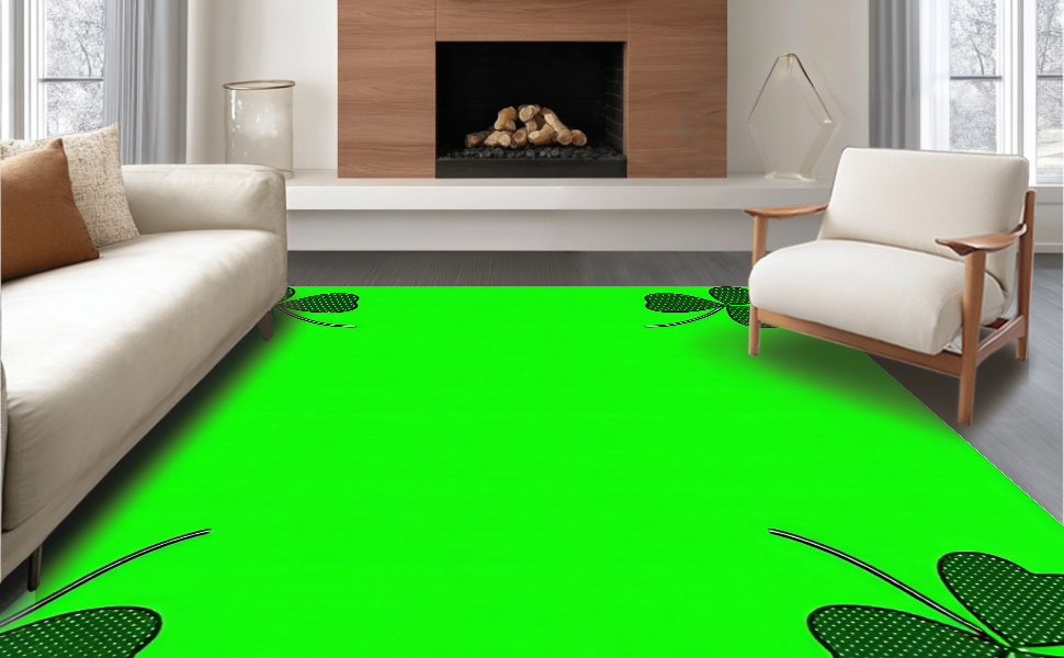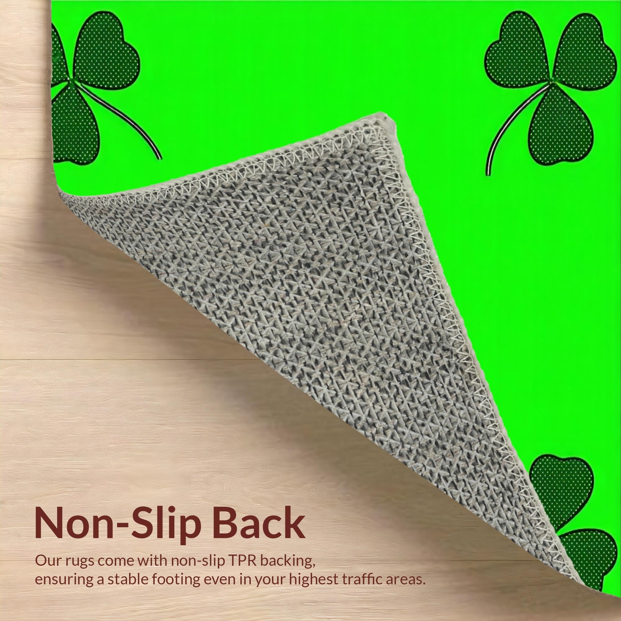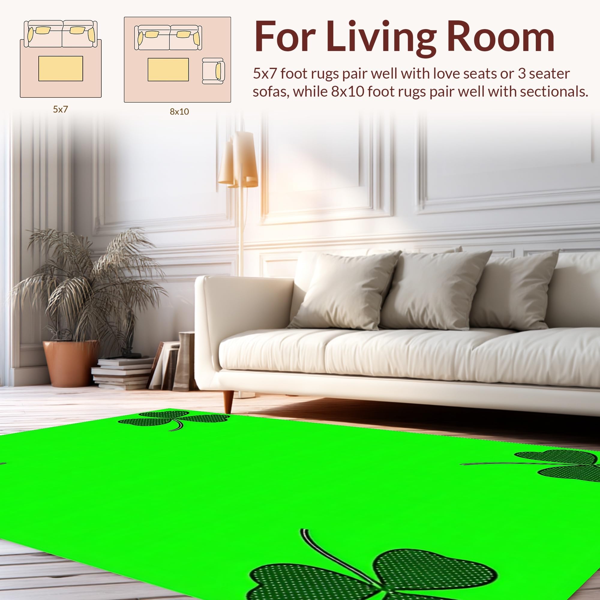 Ultra Soft Area Rug, Non Slip, Stain Resistant, Washable Area Rugs for Living Room, Bedroom, Youthful Fun Shamrock Design(Green) Overview: