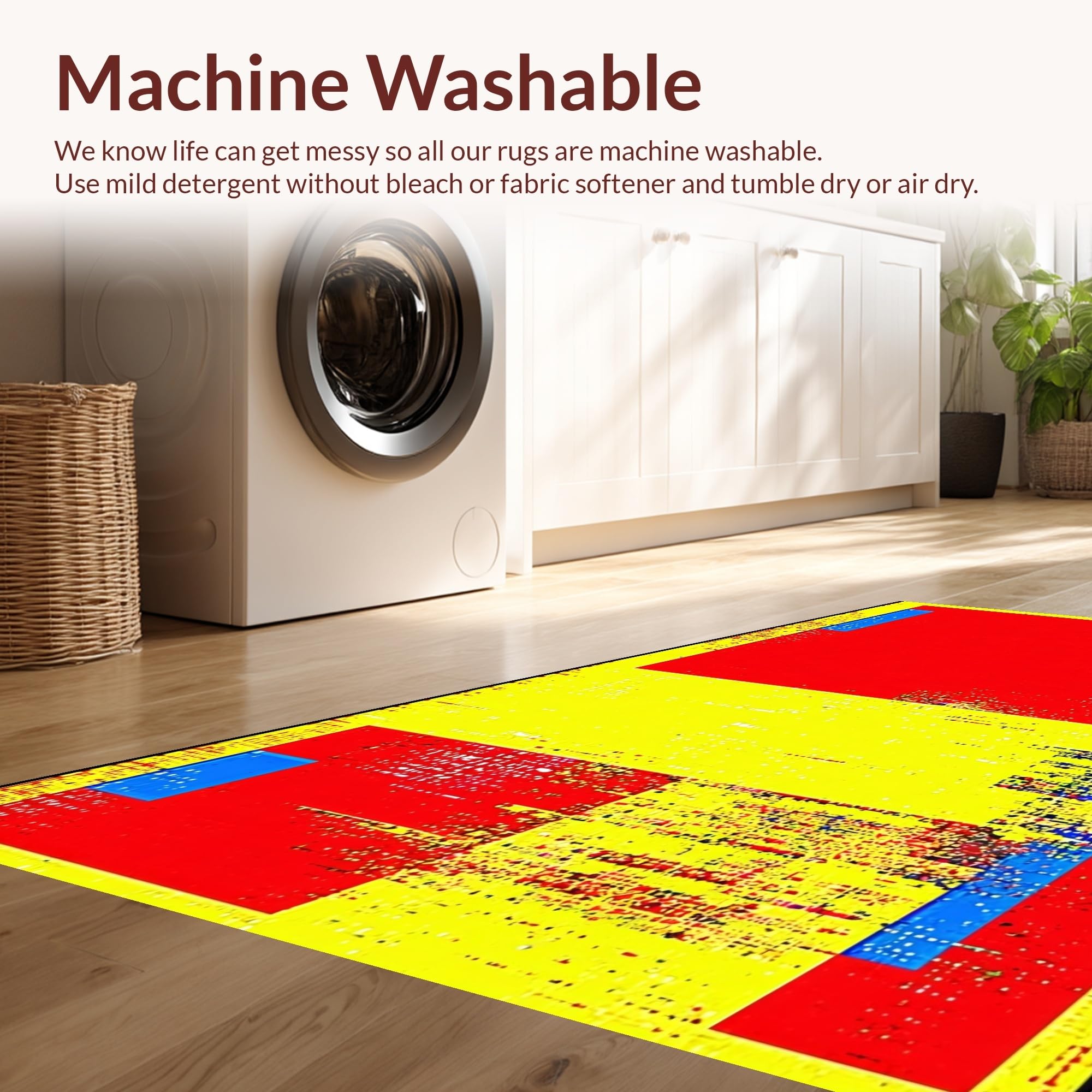 - Machine Washable: Our rugs can be easily thrown in the wash machine.