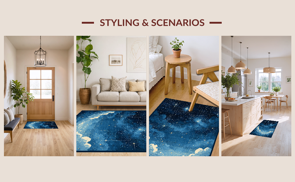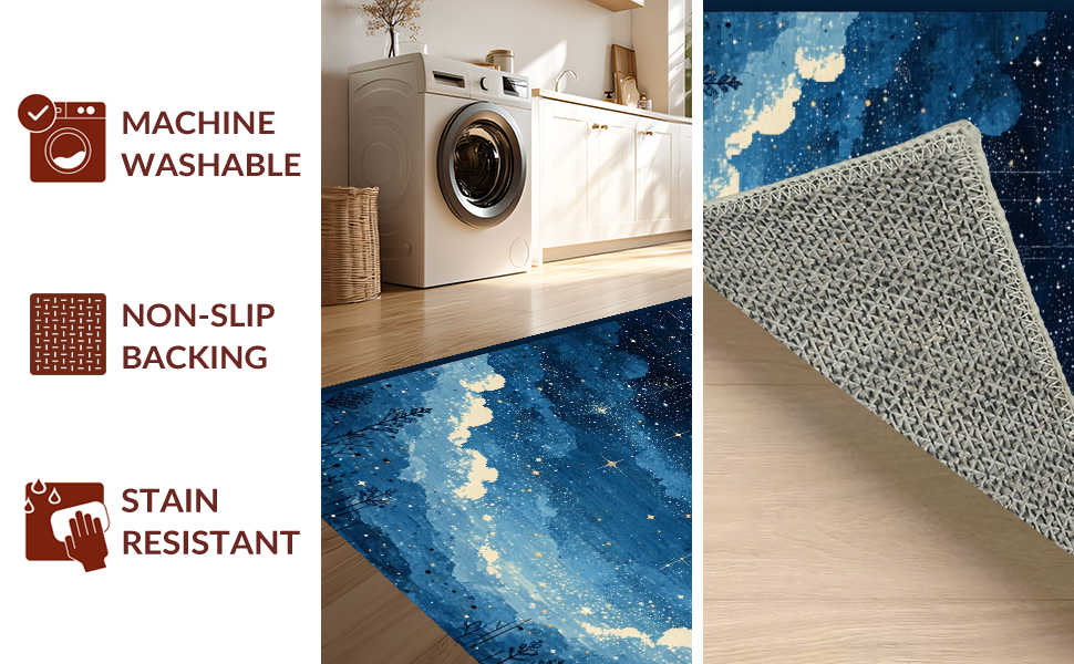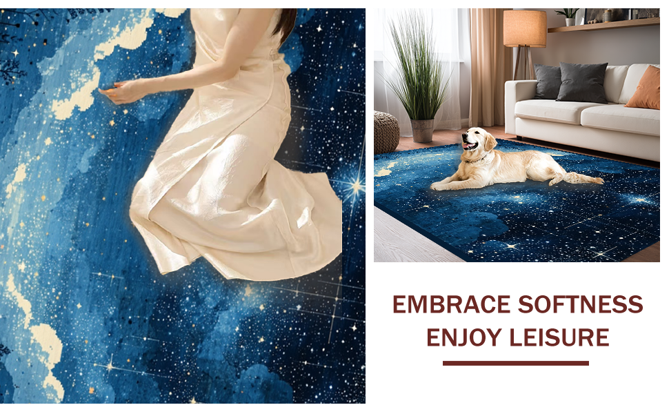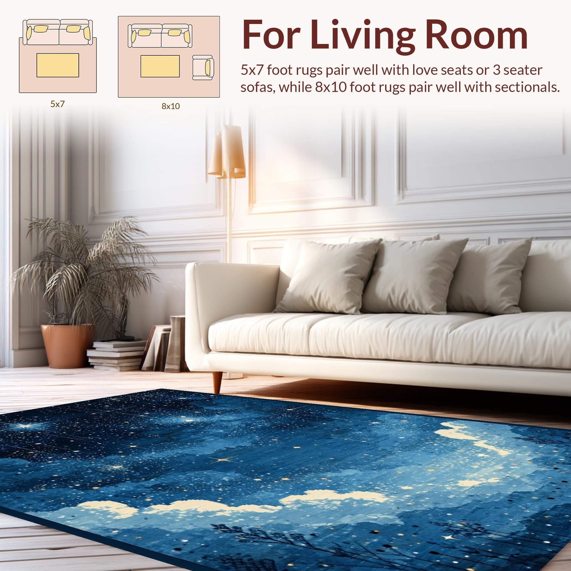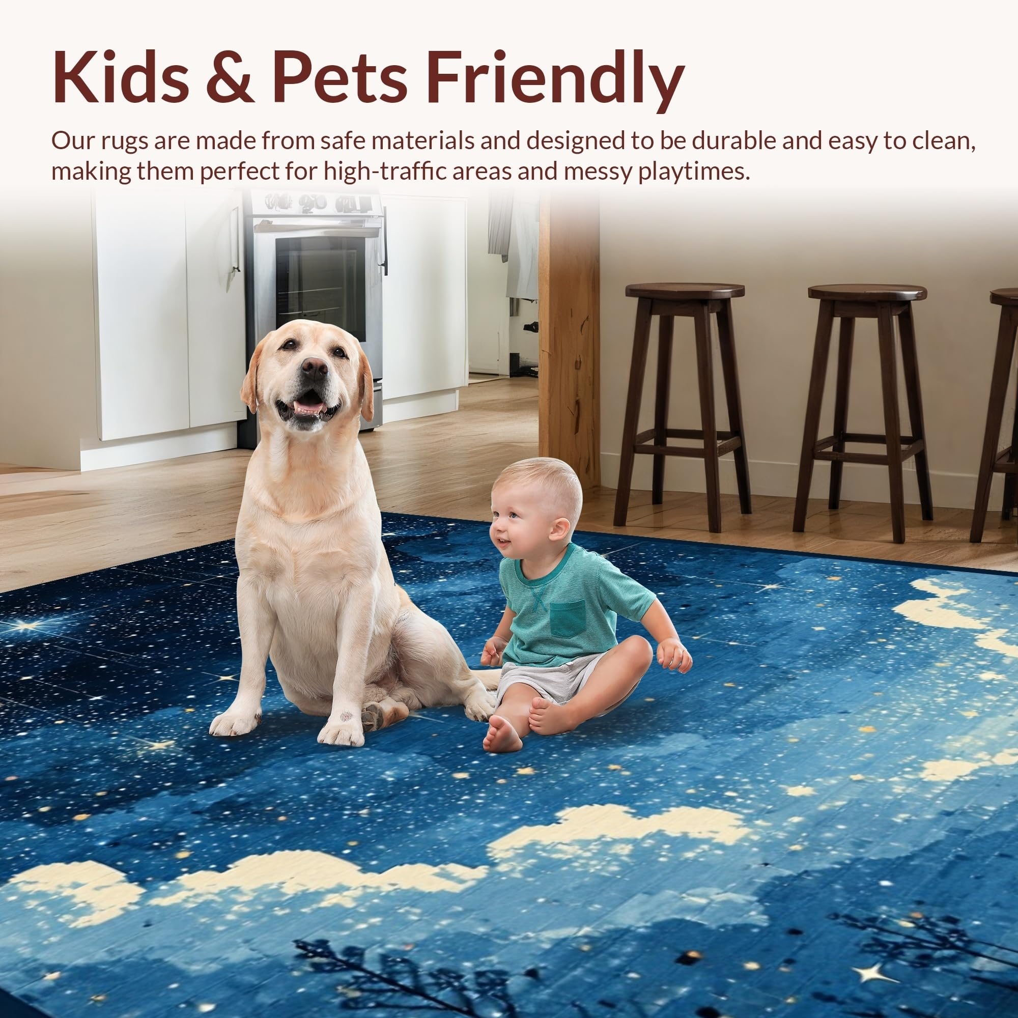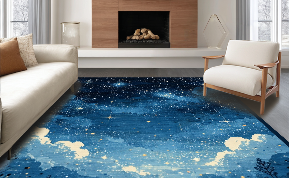Ultra Soft Area Rug, Non Slip, Stain Resistant, Washable Area Rugs for Living Room, Bedroom, Youthful Sky Blue Star Design(Blue) Overview: