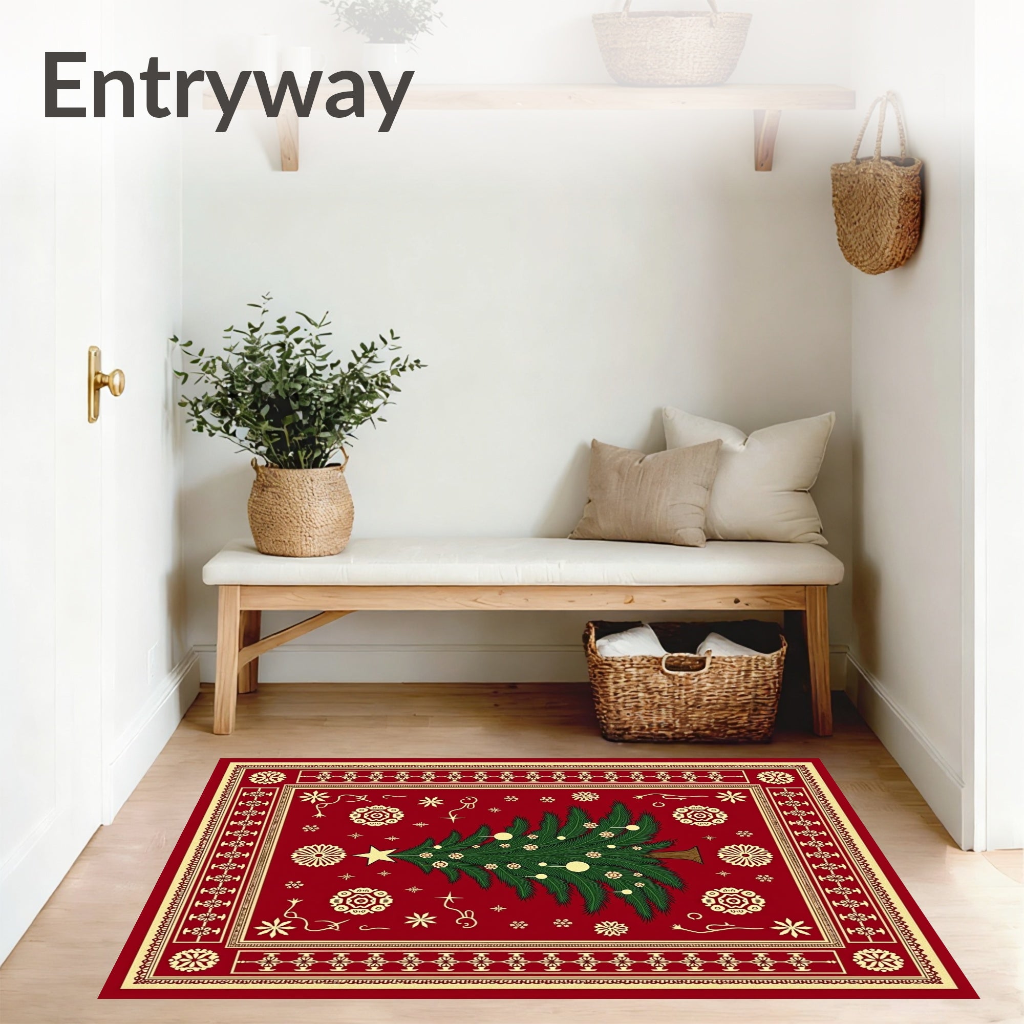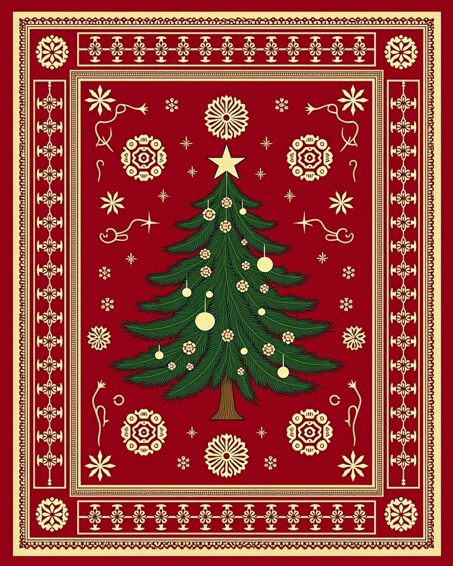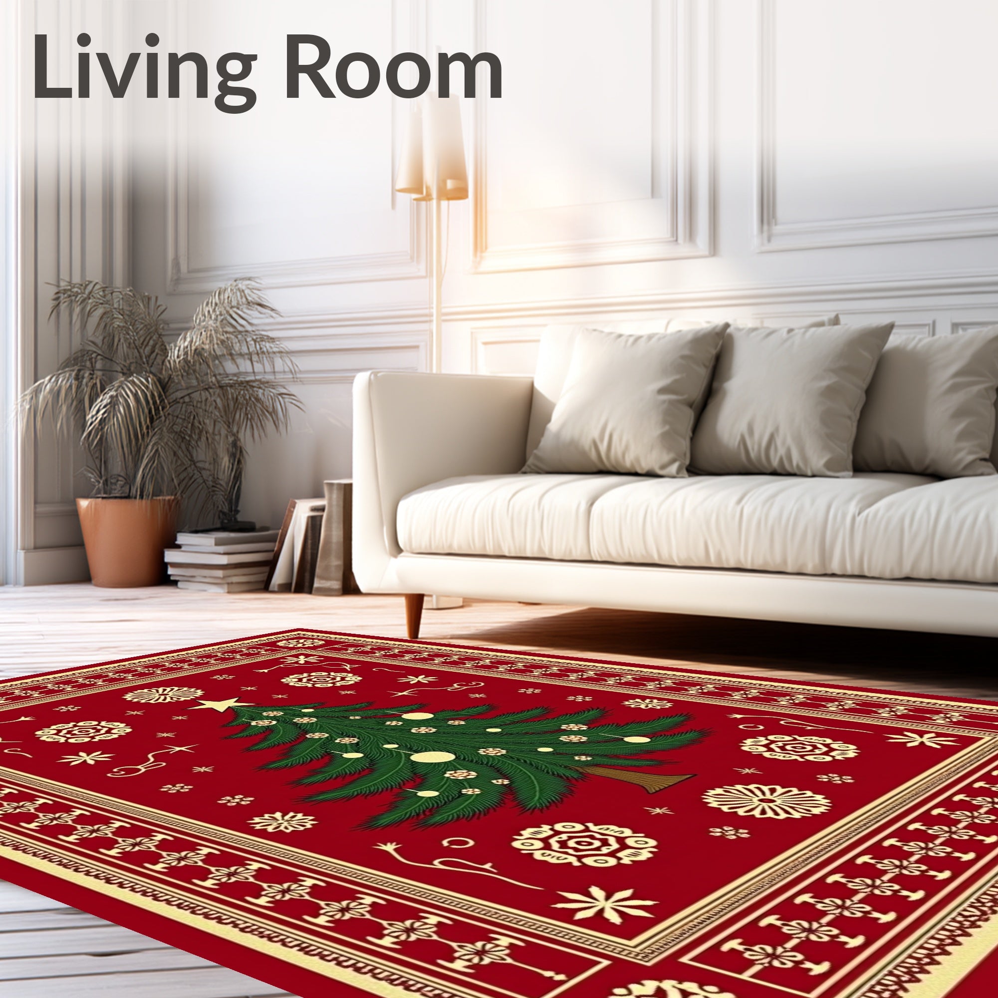 Ultra Soft Area Rug, Non Slip, Stain Resistant, Washable Area Rugs for Living Room, Bedroom, Yuletide Celebration Pine Embellished Surface Covering(Red) Overview: