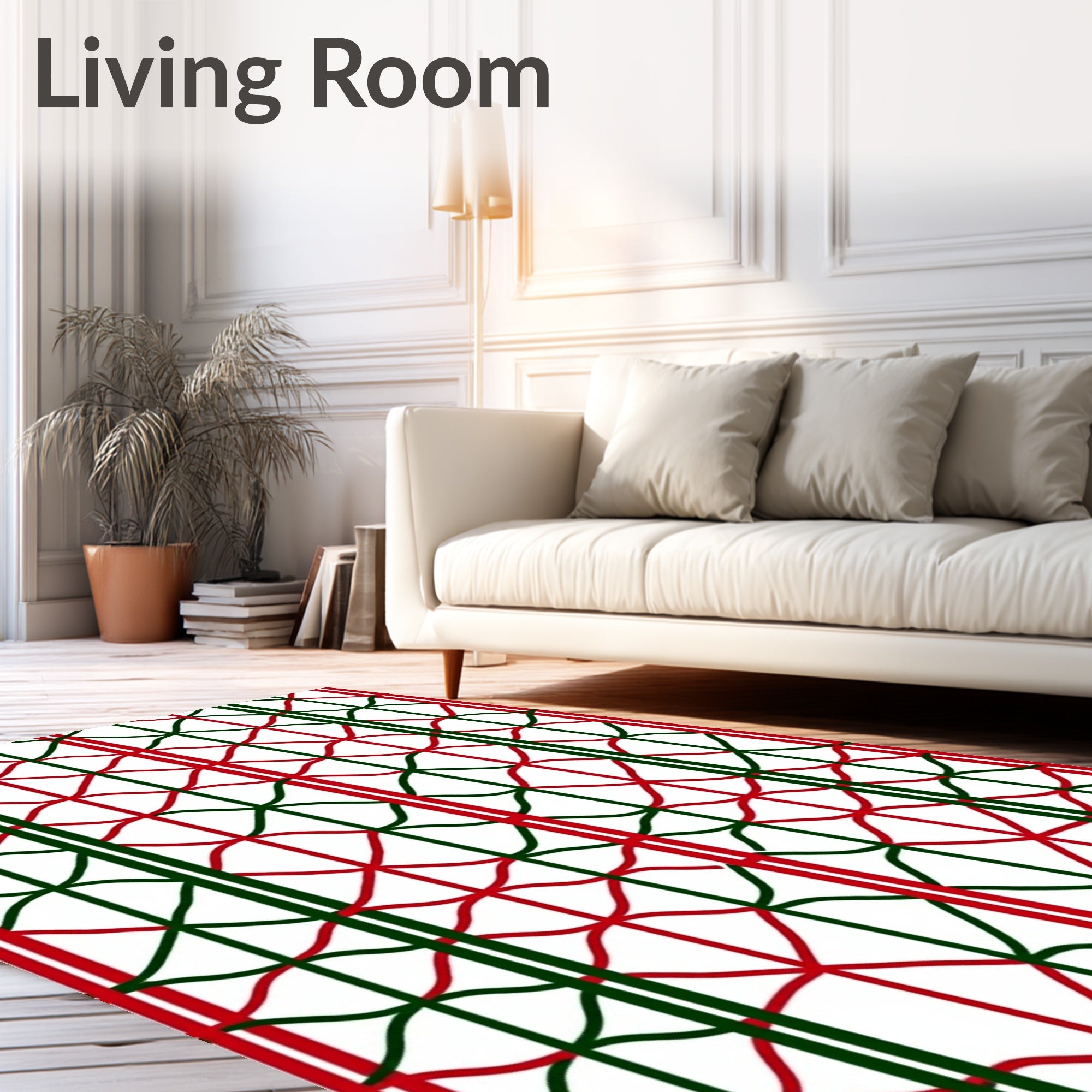 Ultra Soft Area Rug, Non Slip, Stain Resistant, Washable Area Rugs for Living Room, Bedroom, Yuletide Striped Crossweave Decorative(Red) Overview: