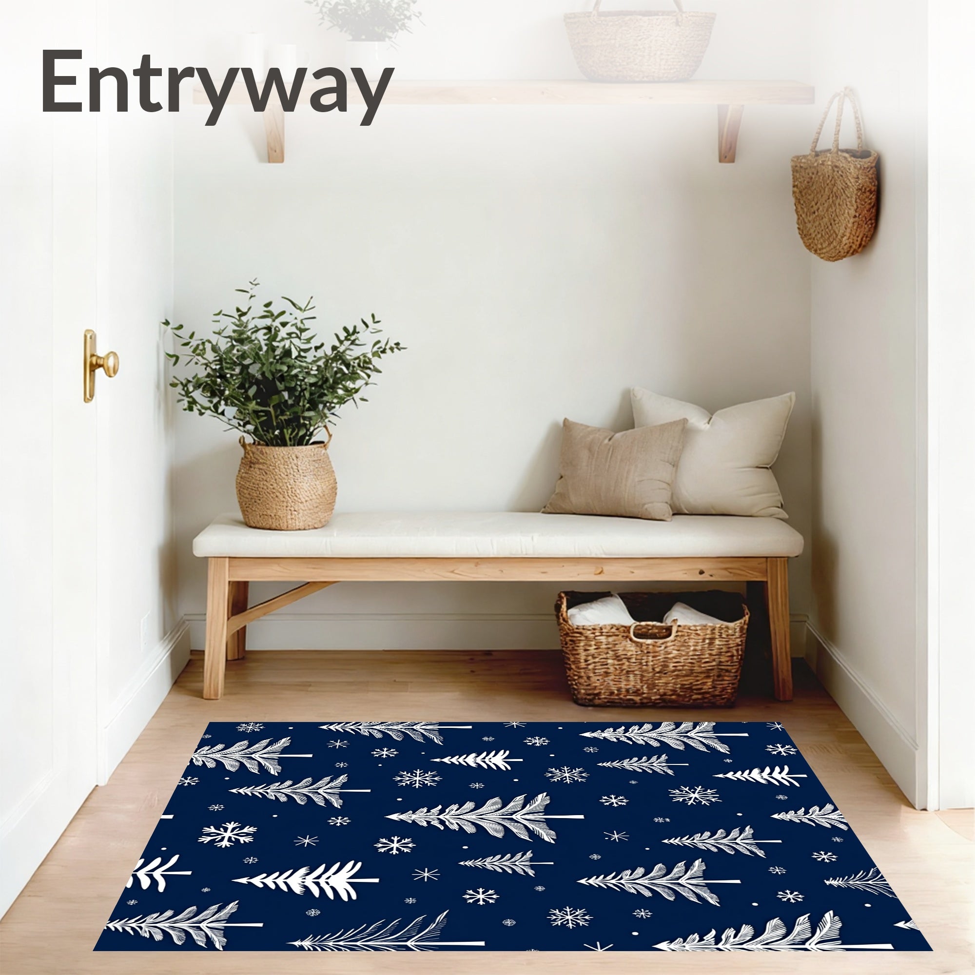 Flatwoven High Traffic Area Rug, Yuletide Wonderland Magical Winter Entrance, Non Slip, Stain Resistant, Washable Area Rugs for Living Room, Bedroom (Blue) Overview: