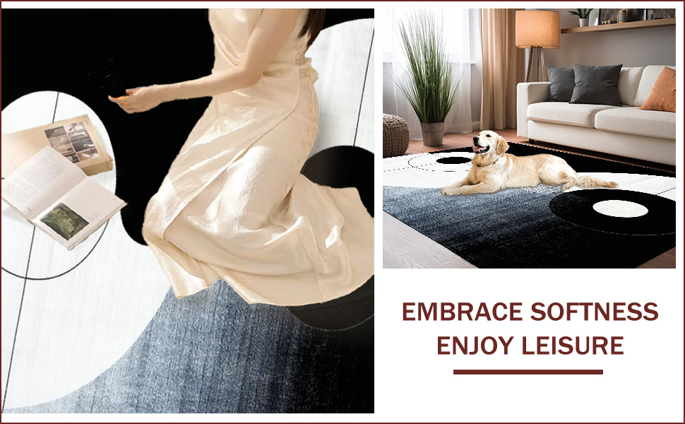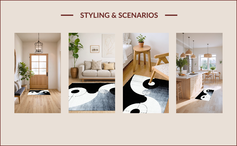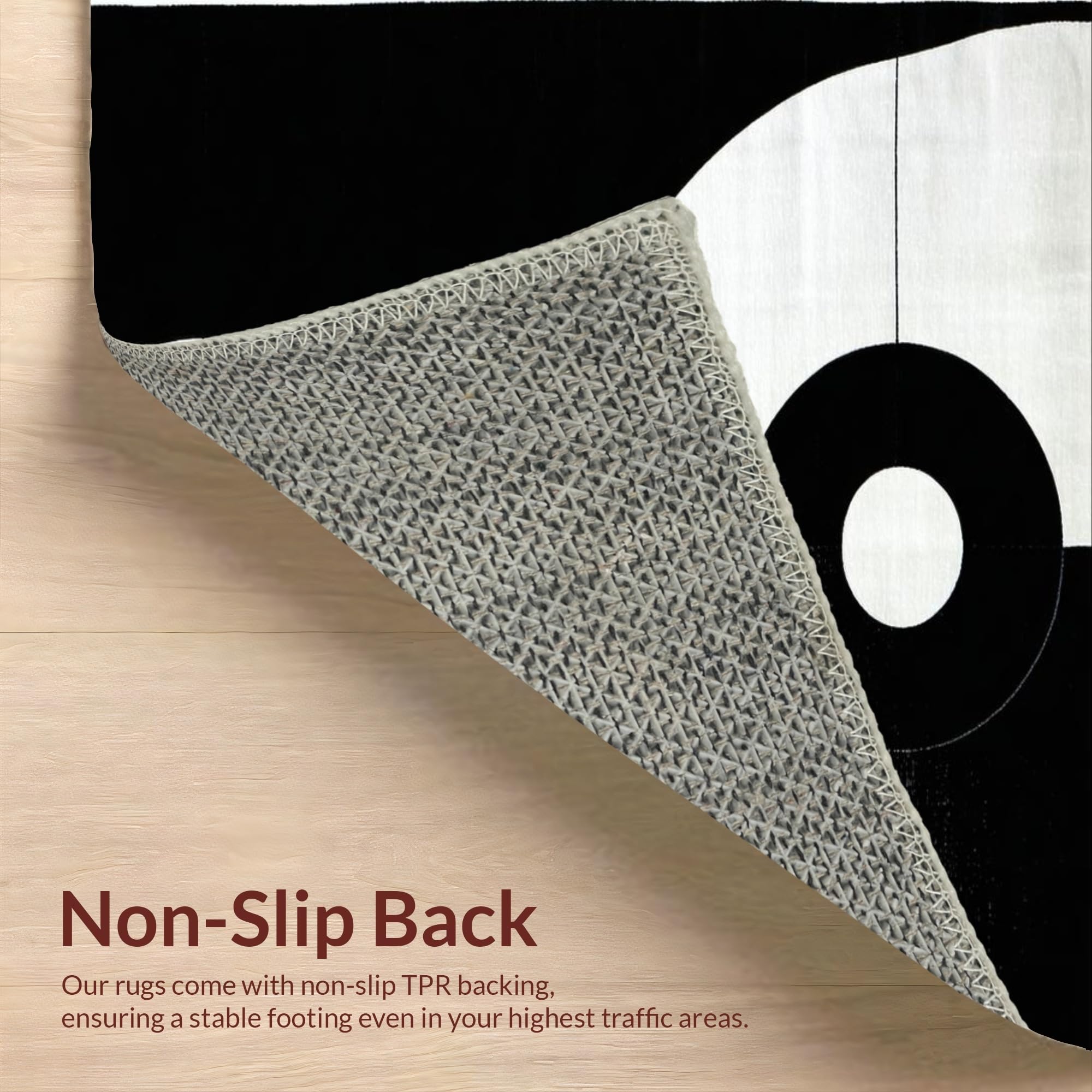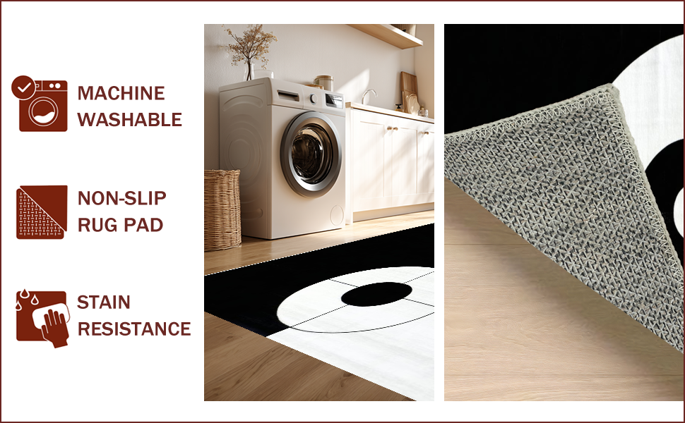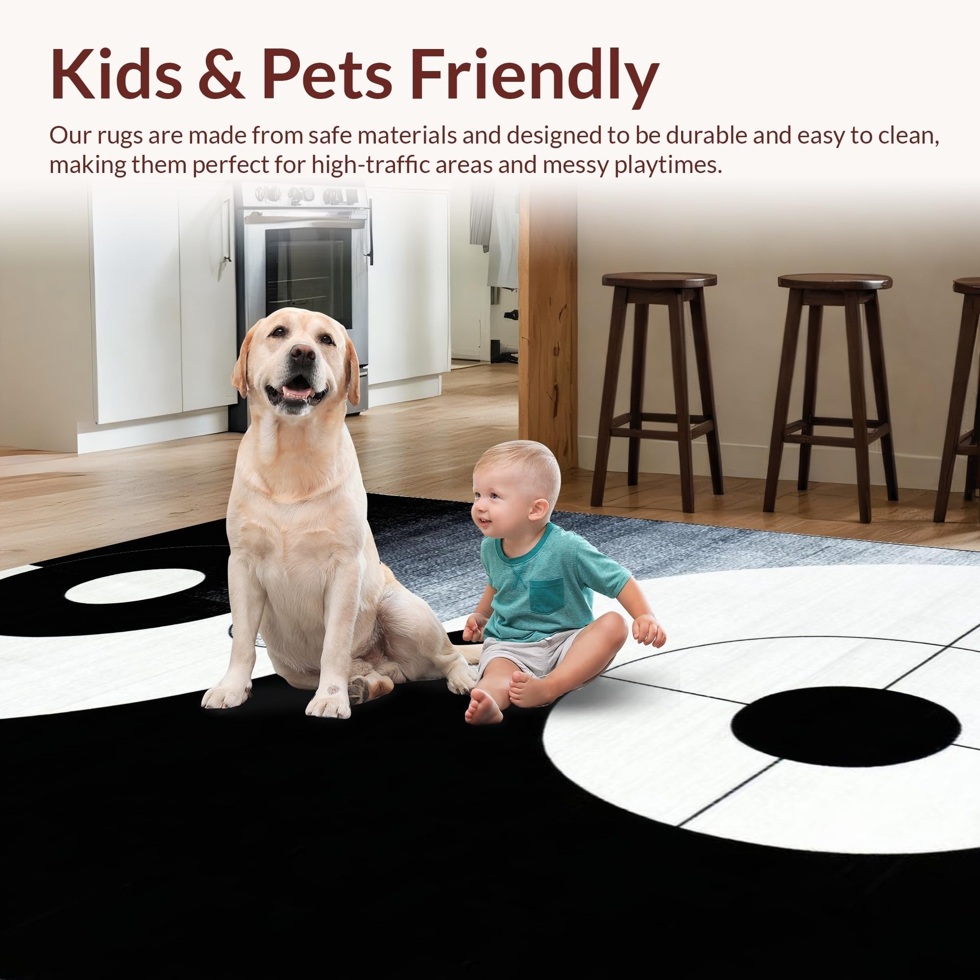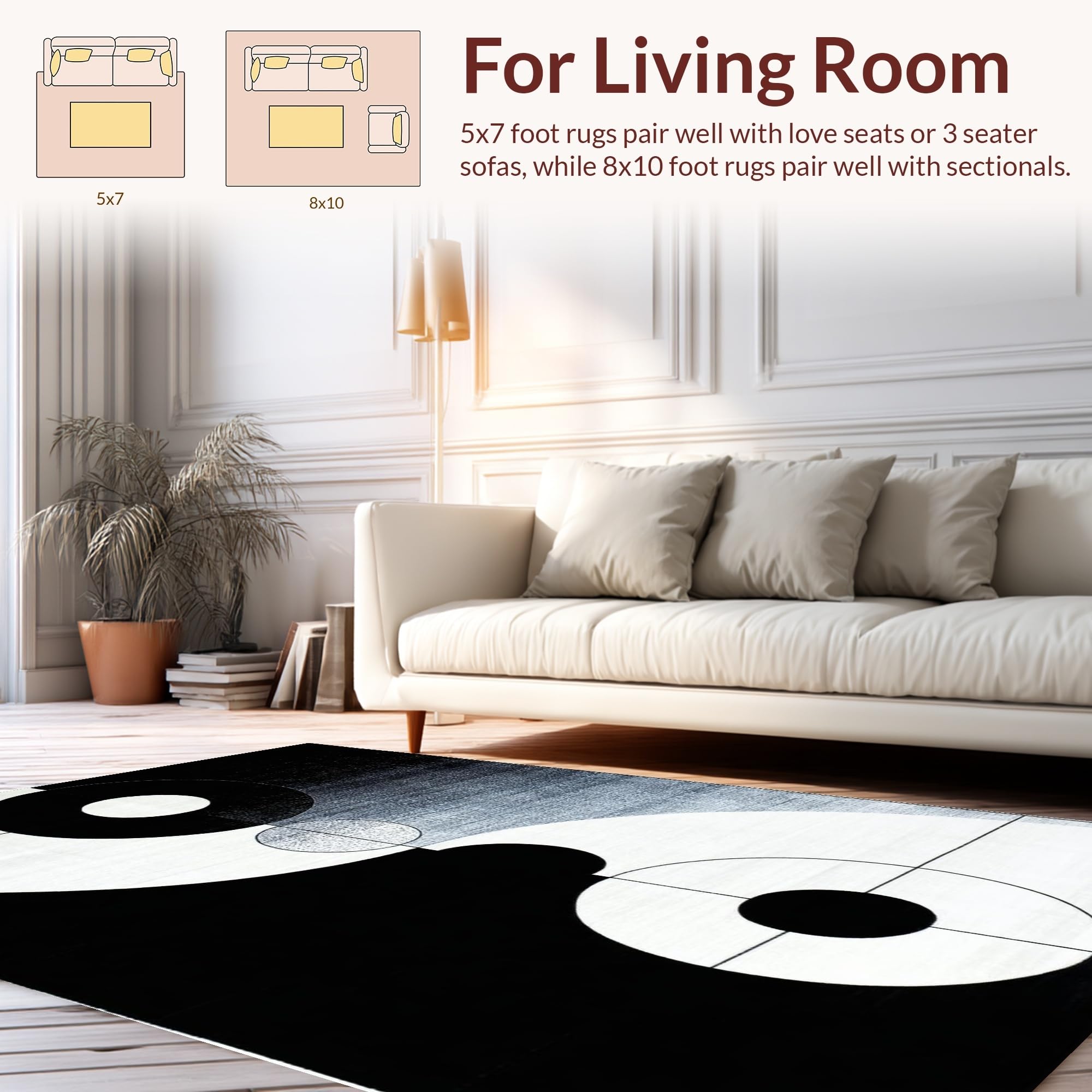 Ultra Soft Area Rug, Non Slip, Stain Resistant, Washable Area Rugs for Living Room, Bedroom, Zen Circular Harmony Aesthetic(Black) Overview: