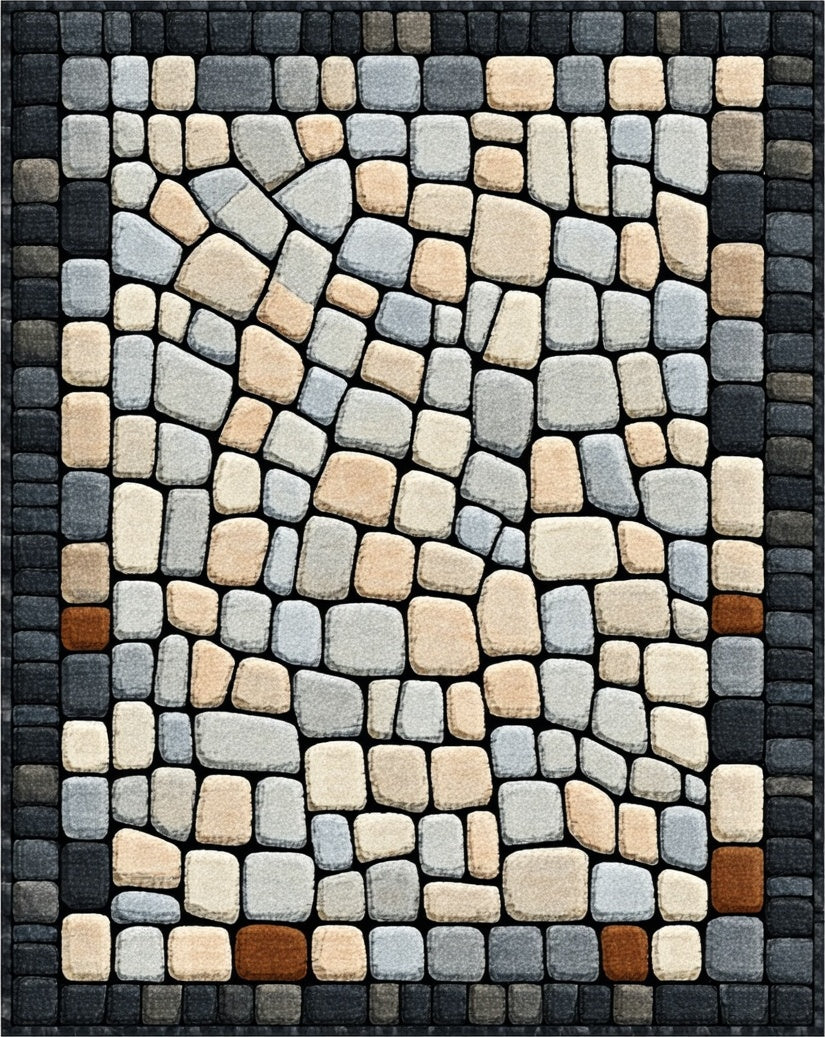 Zen Stone Mosaic with Cobblestone Inspired Boho Geometric Motifs(Beige)