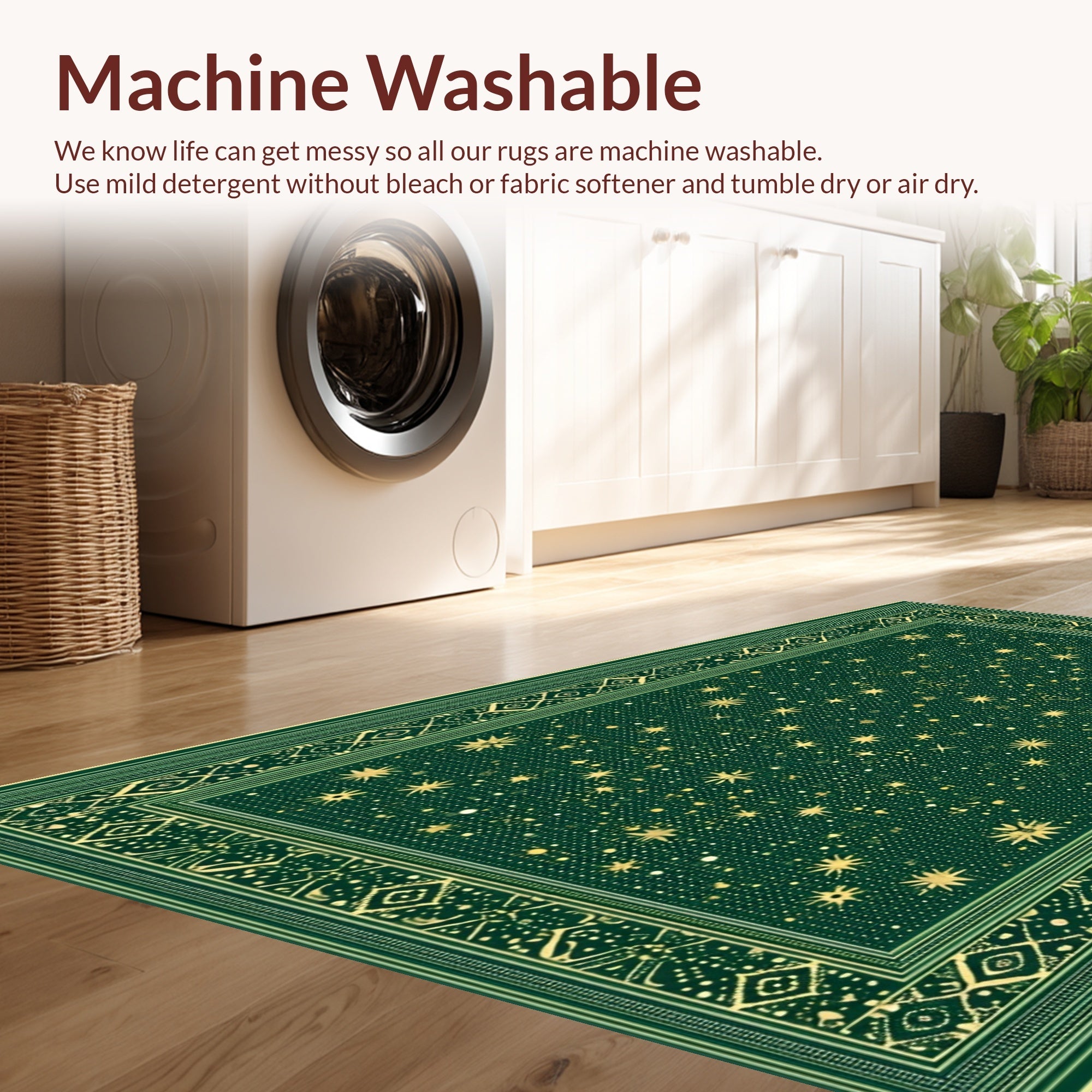 - Machine Washable: Our rugs can be easily thrown in the wash machine.