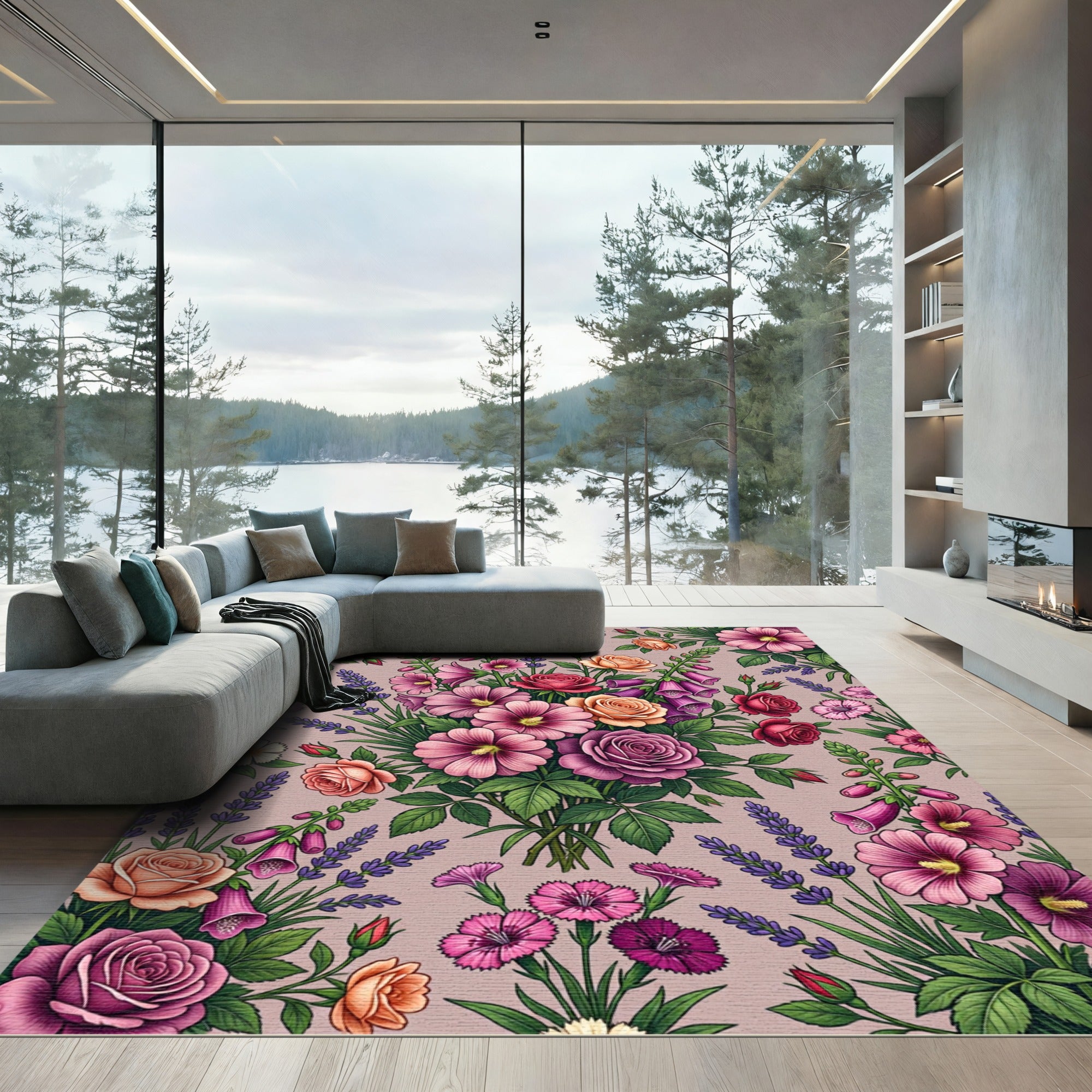 This pattern is a love letter to the Victorian-era botanical illustration, re-imagined for the modern home through a lens of soft-focus serenity. Drawing inspiration from the sprawling cottage gardens of the Pacific Northwest and the disciplined color harmonies of midcentury textile design, the rug creates a field of perpetual bloom. Deep mulberry roses, sun-kissed apricot buds, and rhythmic spires of lavender dance across a muted gray canvas, turning your floor into a rhythmic, living tapestry. The design does not merely sit within a room; it orchestrates a metamorphosis of the space. As you walk across the fibers, the harsh angles of industrial furniture soften into a pastoral sanctuary. This is for the soul who finds grounding in the quiet resilience of a perennial garden, and for the heart-led homebuilder who believes elegance should never be fragile. Don't just fill your space—anchor it with life, color, and grace. Step onto this scene and walk upon poetry.