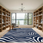 Deep Blue Zebra Stripe Waves Rug