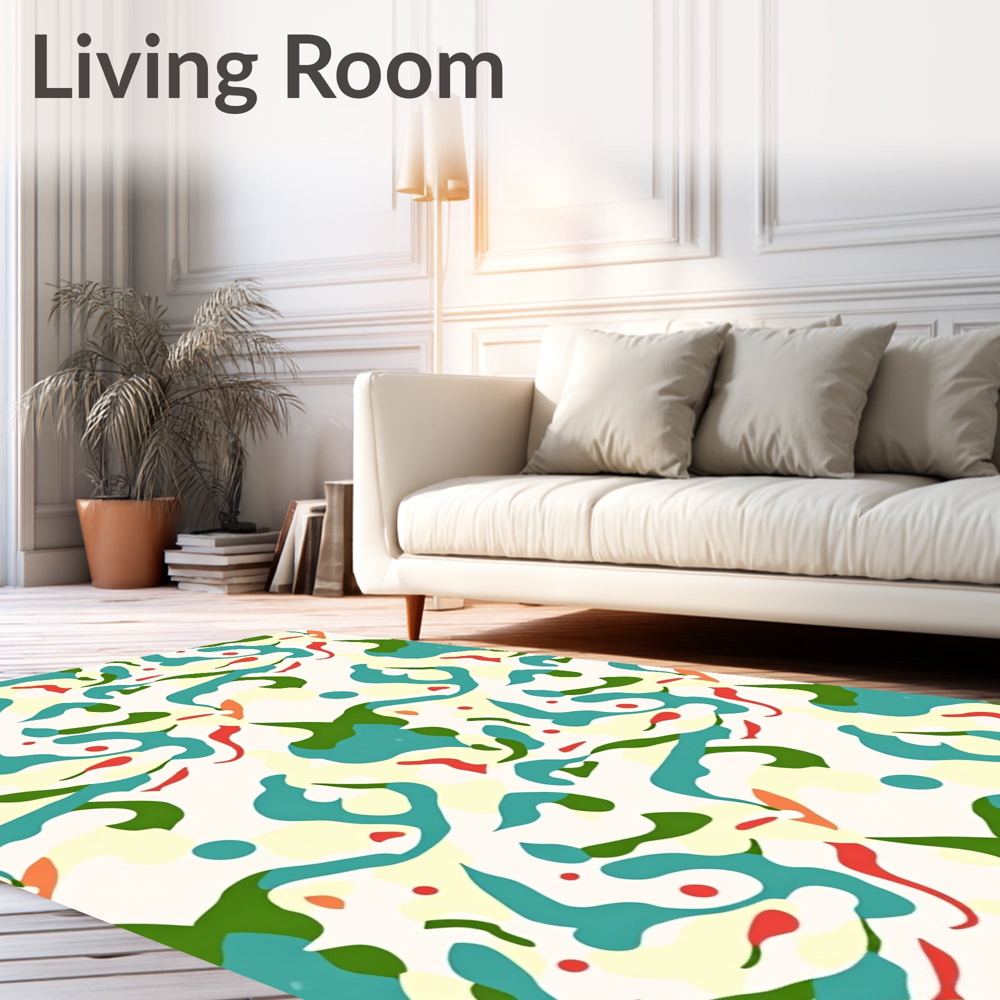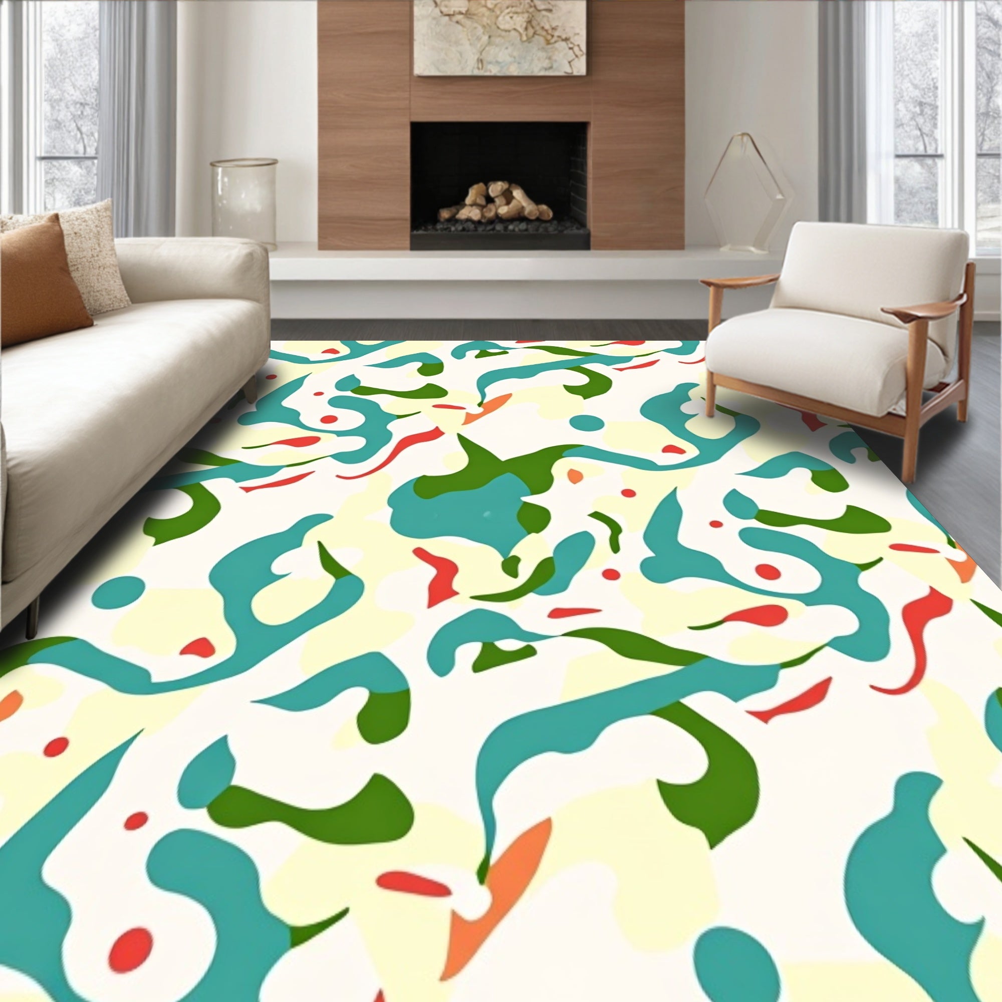 Flatwoven High Traffic Area Rug, Abstract Animal Inspired Design with Spots and Flowing Contours, Non Slip, Stain Resistant, Washable Area Rugs for Living Room, Bedroom (Teal) Overview: