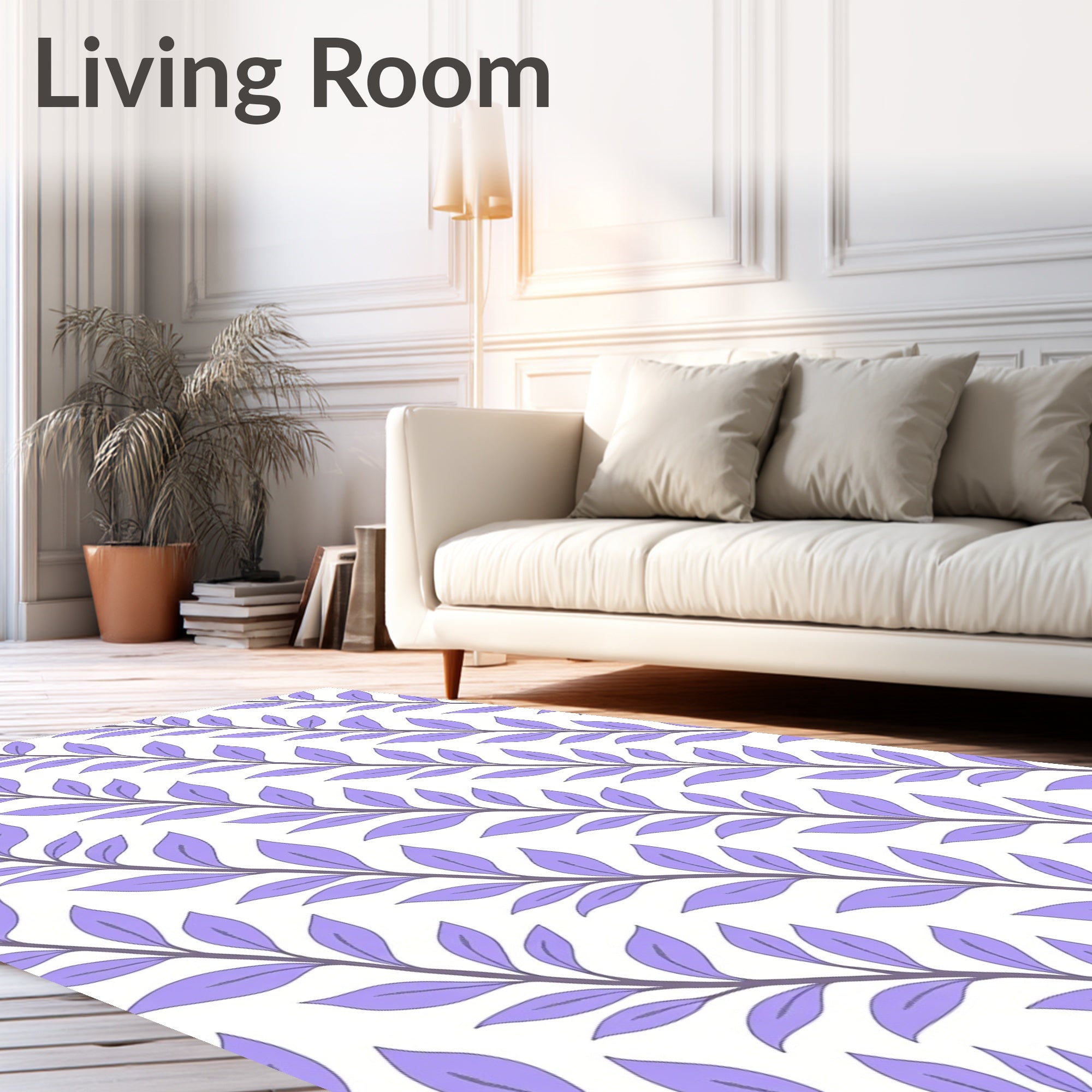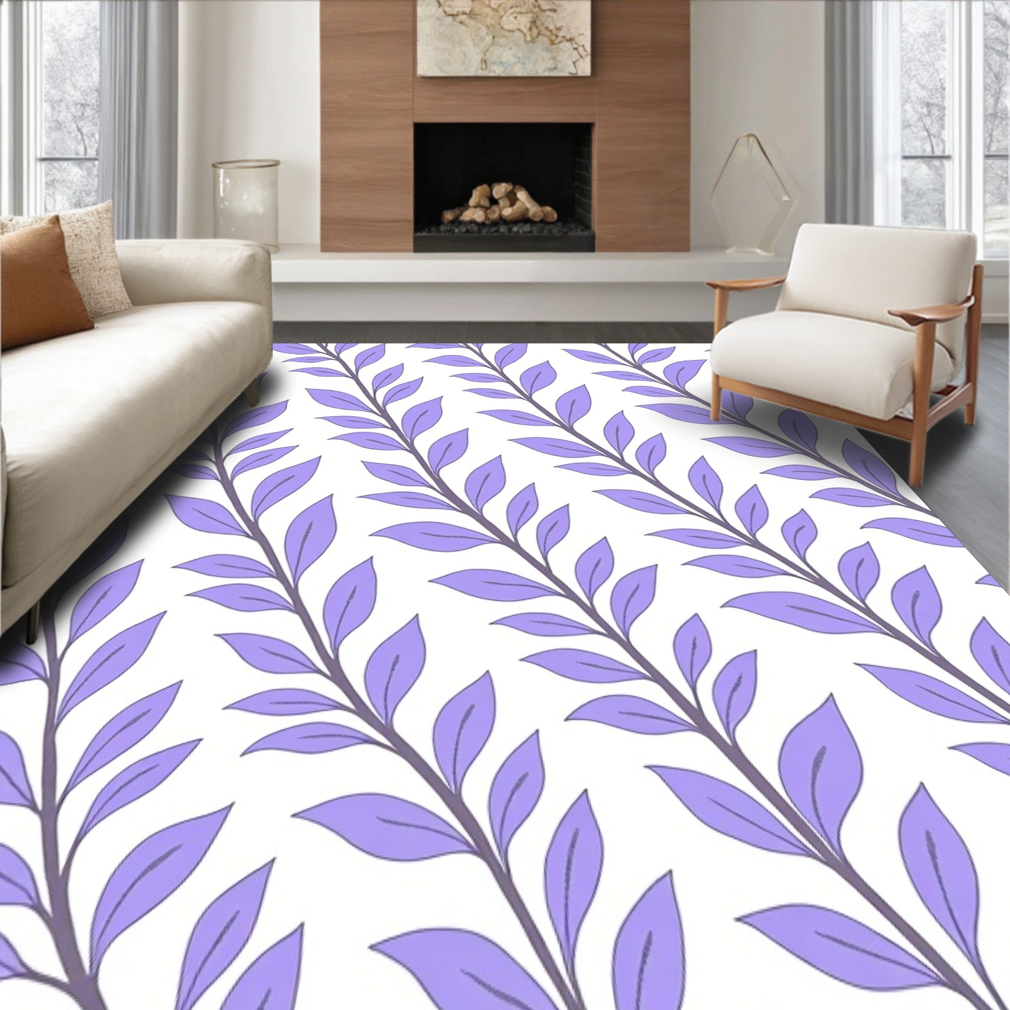 Flatwoven High Traffic Area Rug, Abstract Botanical Arrangement with Curved Leaf and Muted Purple Tones, Non Slip, Stain Resistant, Washable Area Rugs for Living Room, Bedroom (Purple) Overview: