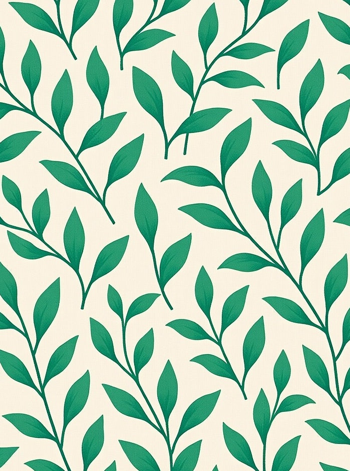 Abstract Botanical Leaf with Flowing Vine Motifs (Green)