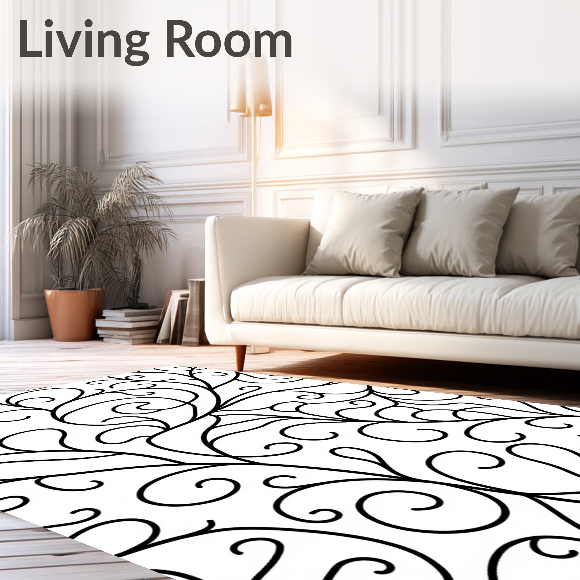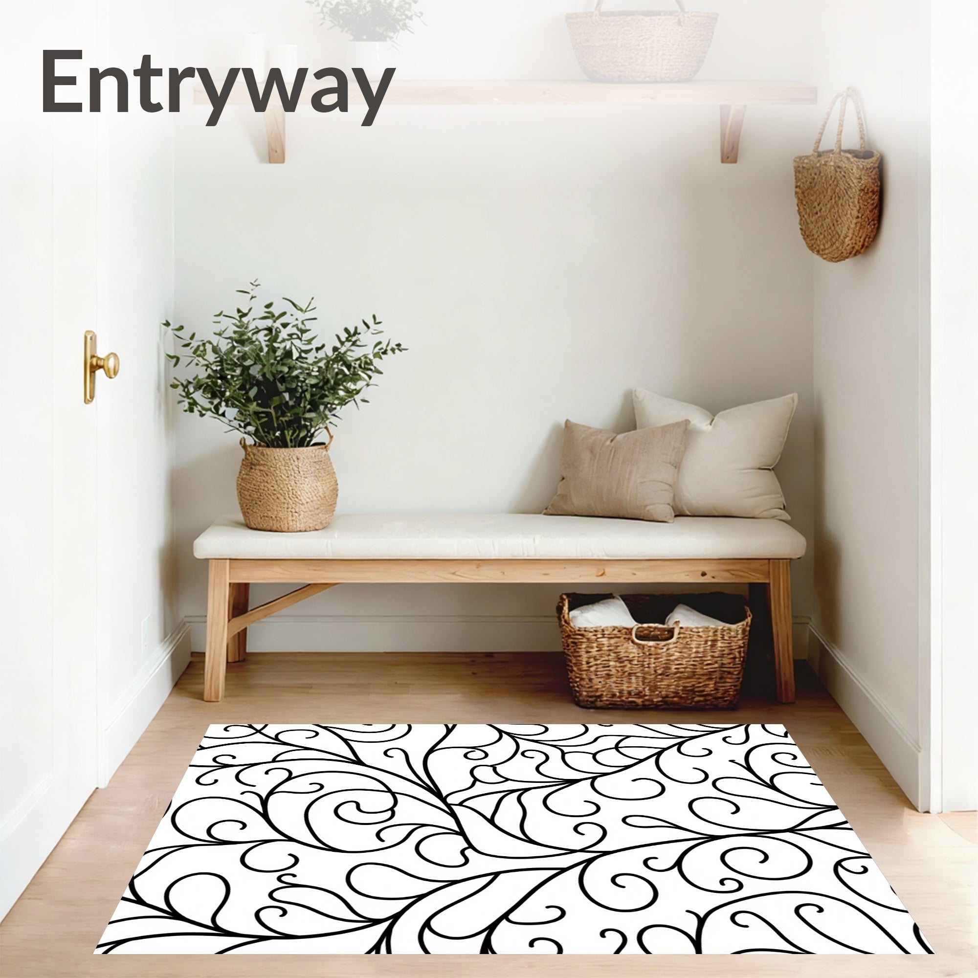Flatwoven High Traffic Area Rug, Abstract Botanical Symphony With Curved Vine Interlacing Paths, Non Slip, Stain Resistant, Washable Area Rugs for Living Room, Bedroom (Black) Overview: