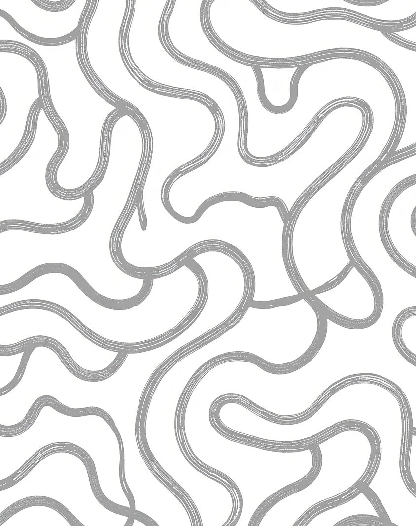 Abstract Brushstroke Waves with Taupe Contrasts (White)