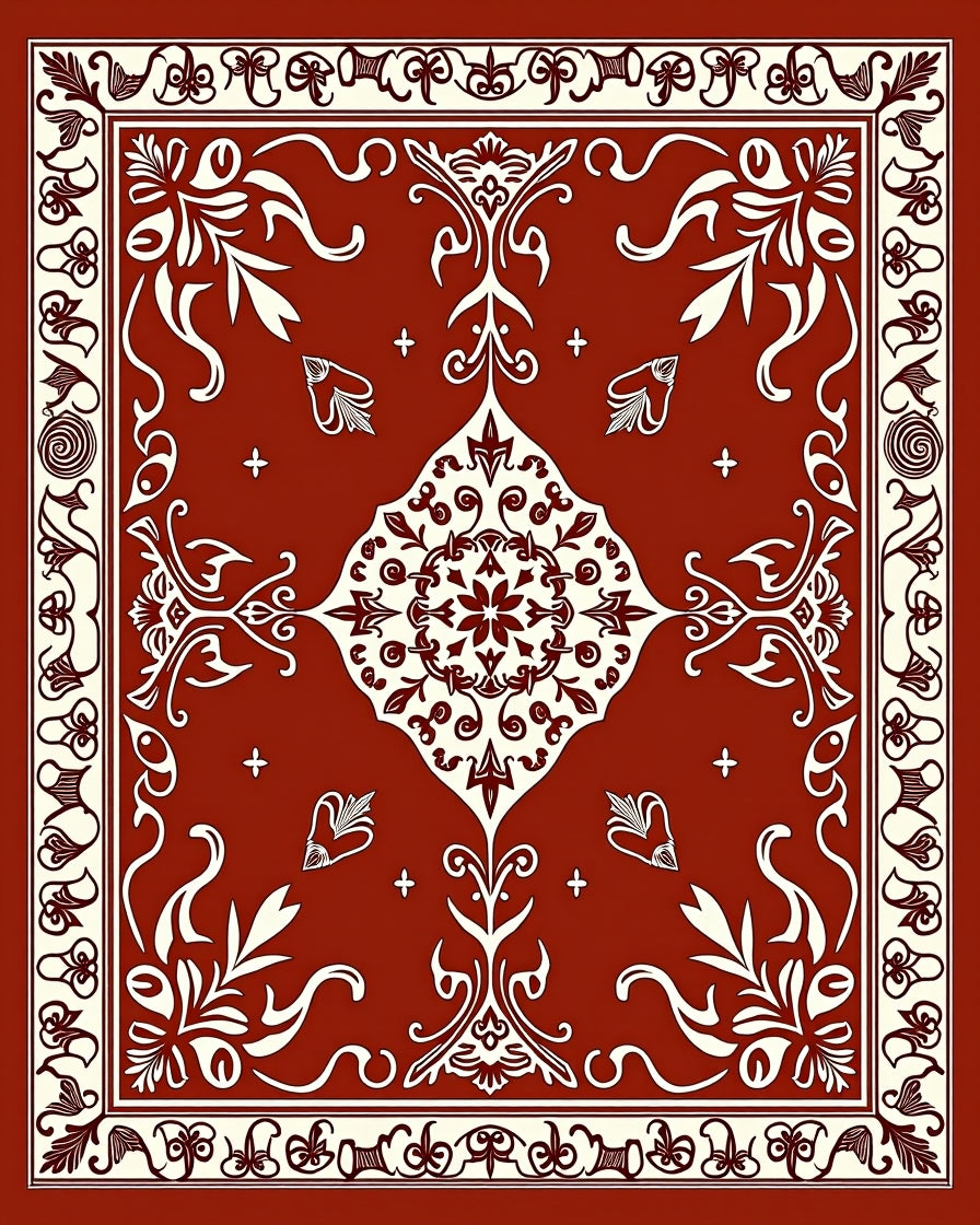 Abstract Damask with Intricate Swirl (Red)