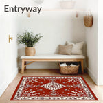 Flatwoven High Traffic Area Rug, Abstract Damask with Intricate Swirl, Non Slip, Stain Resistant, Washable Area Rugs for Living Room, Bedroom (Red) Overview: