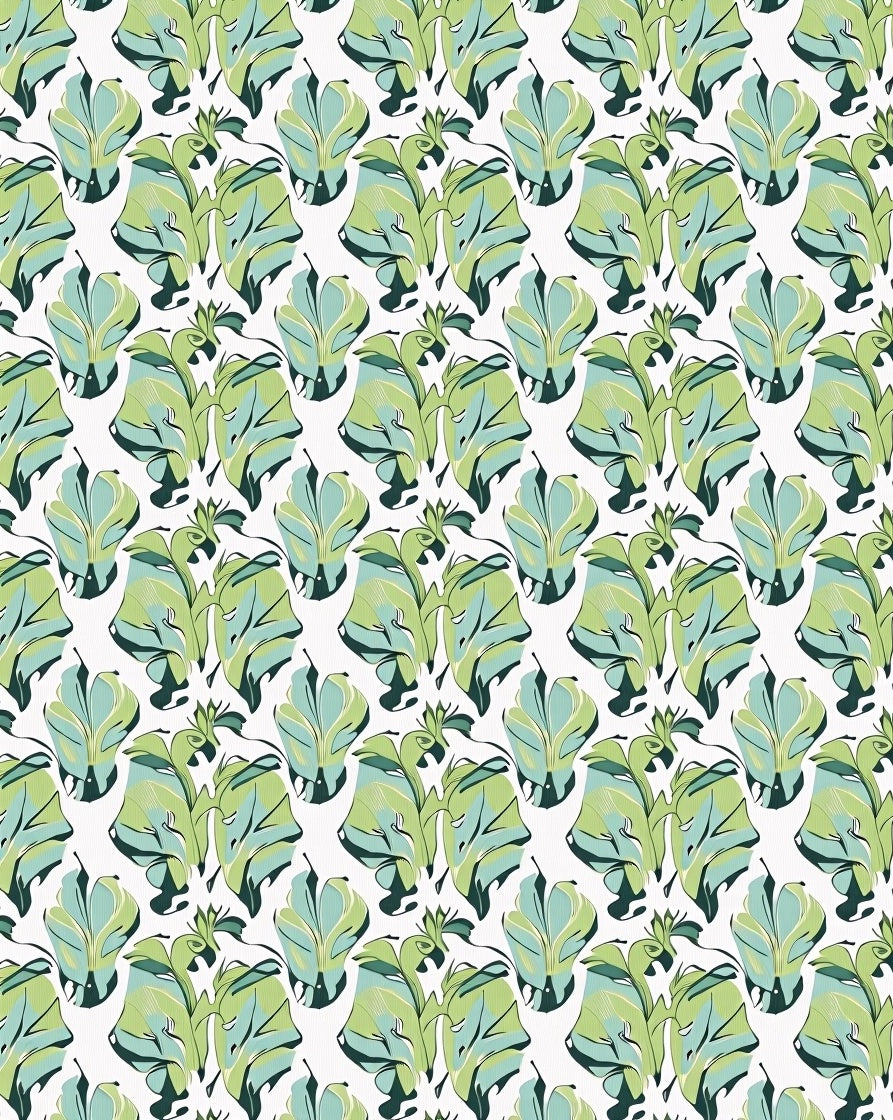 Abstract Leafy Lattice with Floral Highlights (Green)