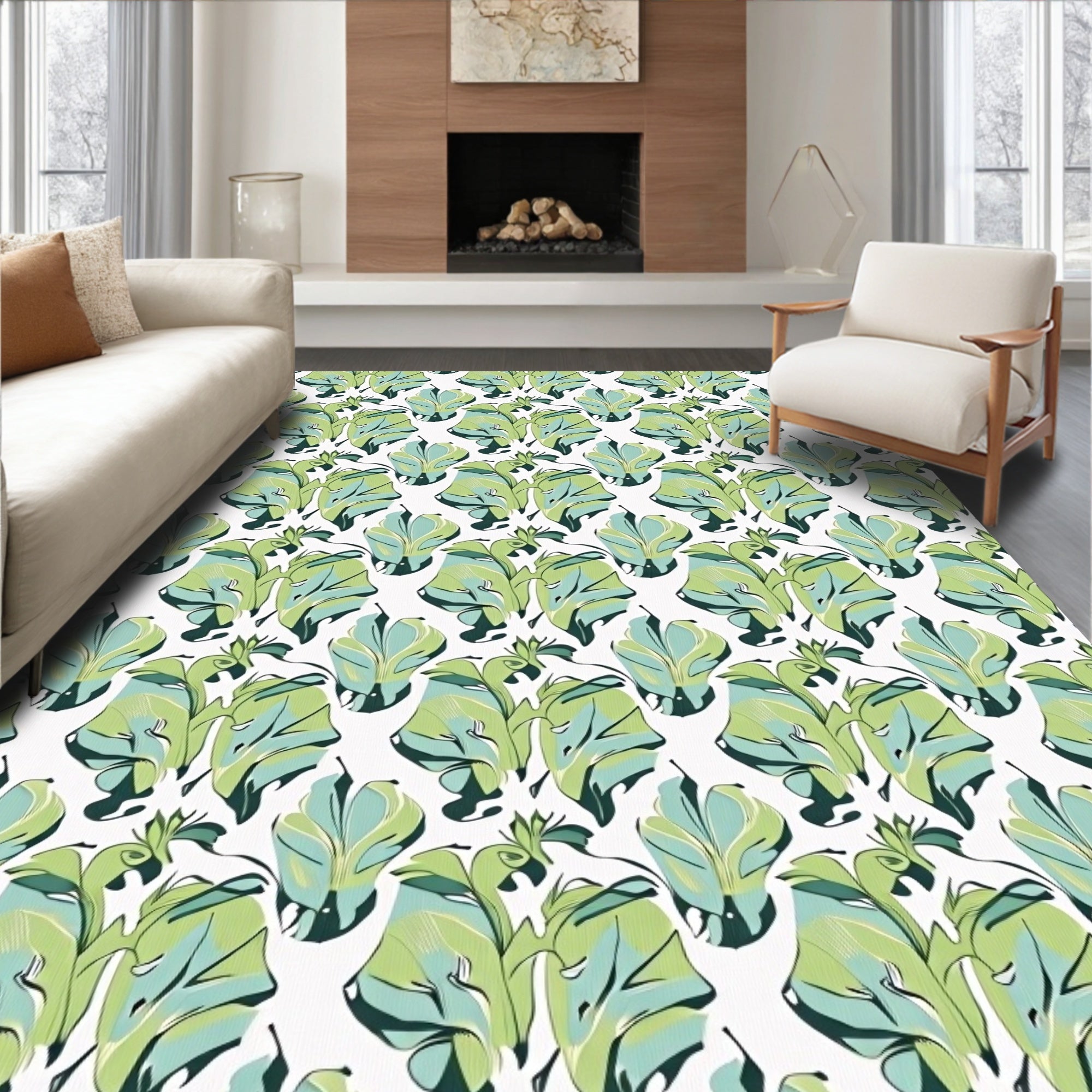 Flatwoven High Traffic Area Rug, Abstract Leafy Lattice with Floral Highlights, Non Slip, Stain Resistant, Washable Area Rugs for Living Room, Bedroom (Green) Overview: