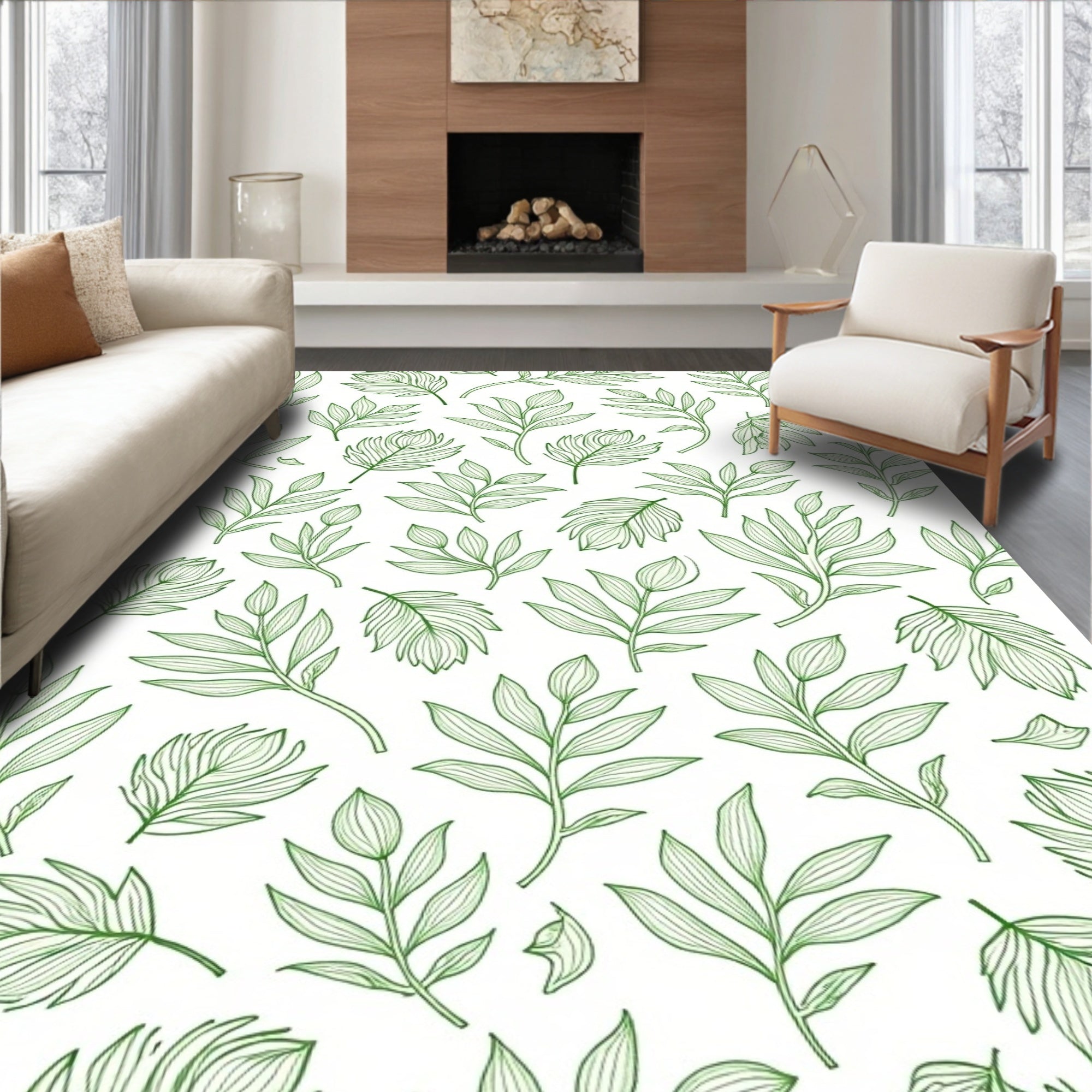 Flatwoven High Traffic Area Rug, Abstract Paisley Swirl with Cascading Botanical, Non Slip, Stain Resistant, Washable Area Rugs for Living Room, Bedroom (Green) Overview: