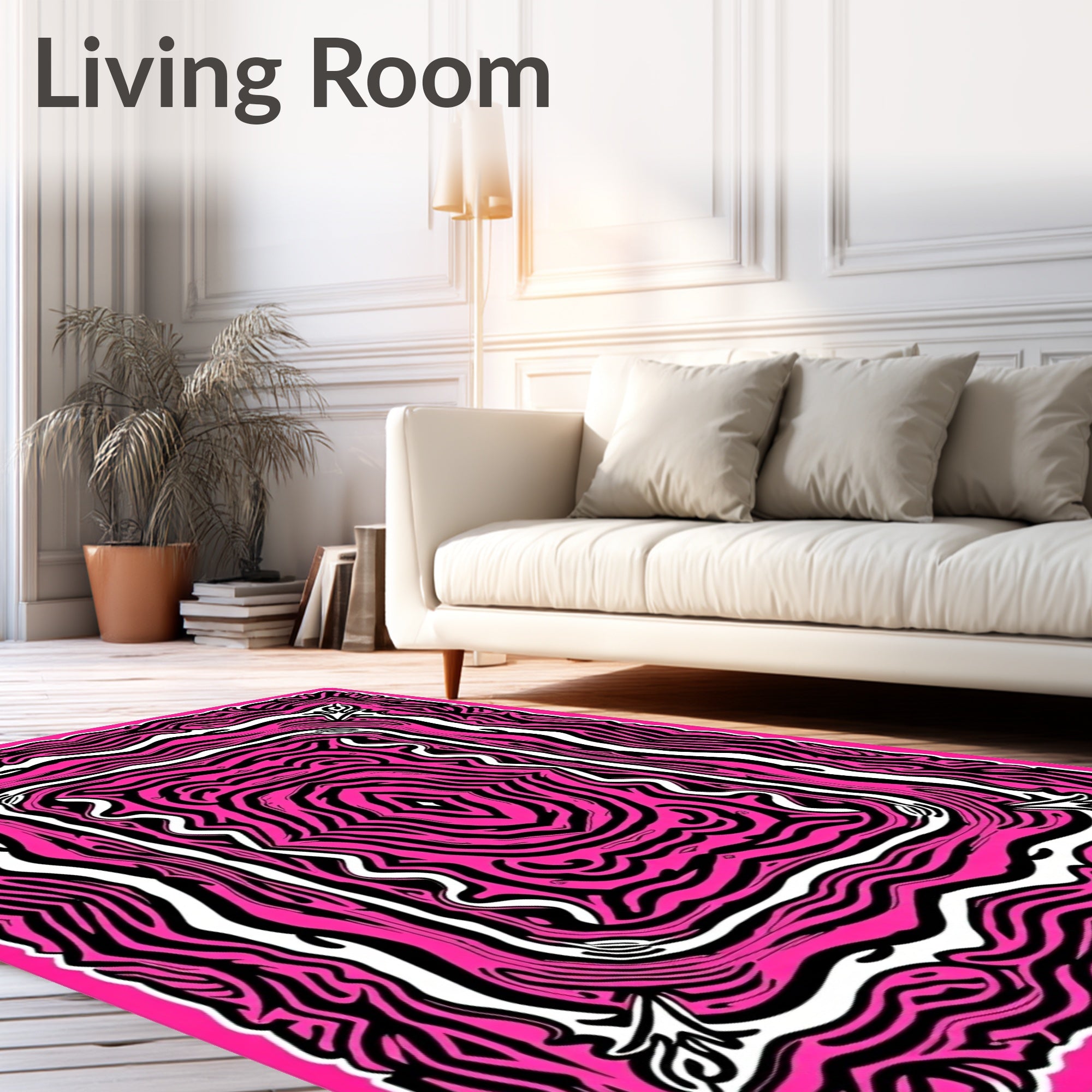 Flatwoven High Traffic Area Rug, Abstract Wave Interlock with Dynamic Zigzag and Chevron Detailing, Non Slip, Stain Resistant, Washable Area Rugs for Living Room, Bedroom (Pink) Overview: