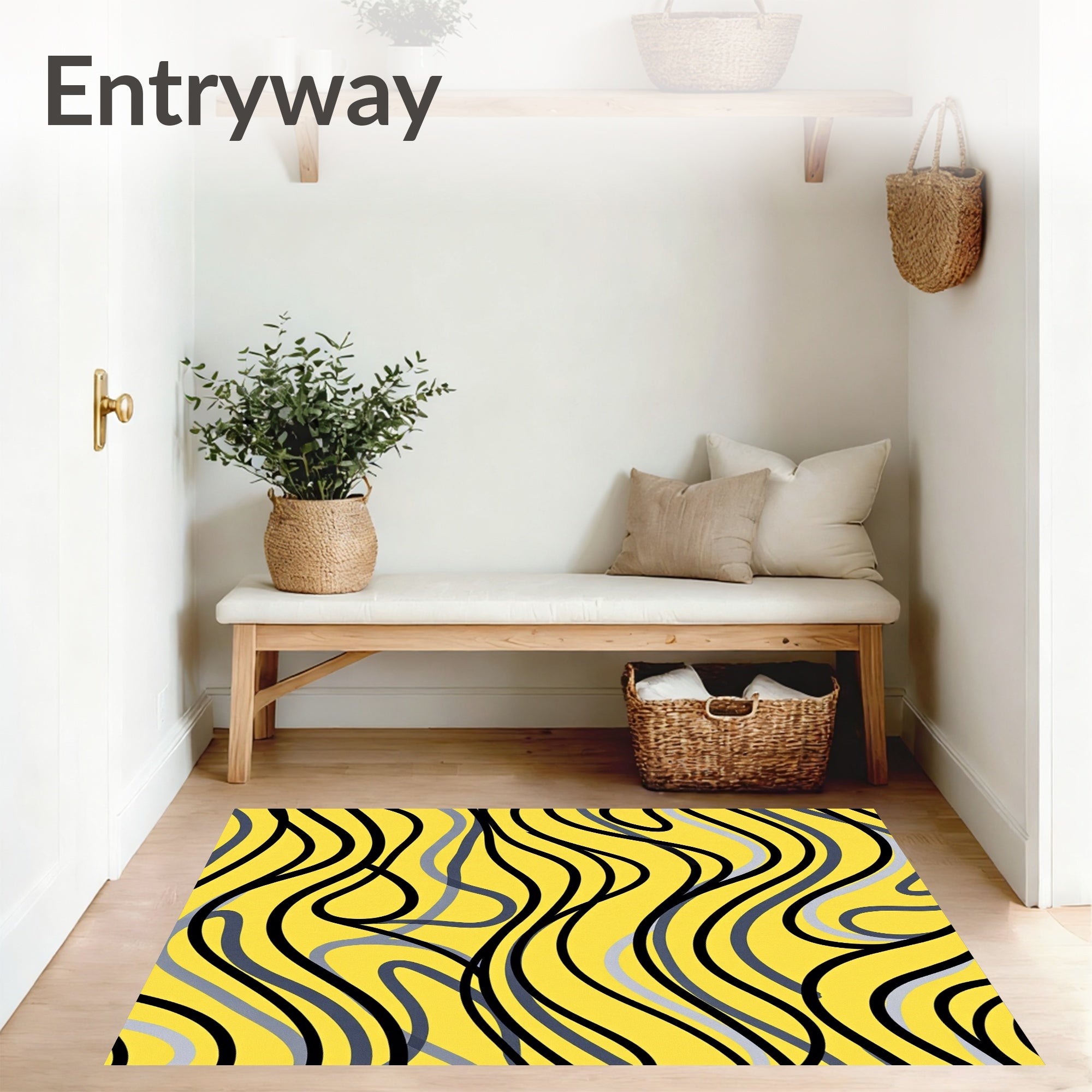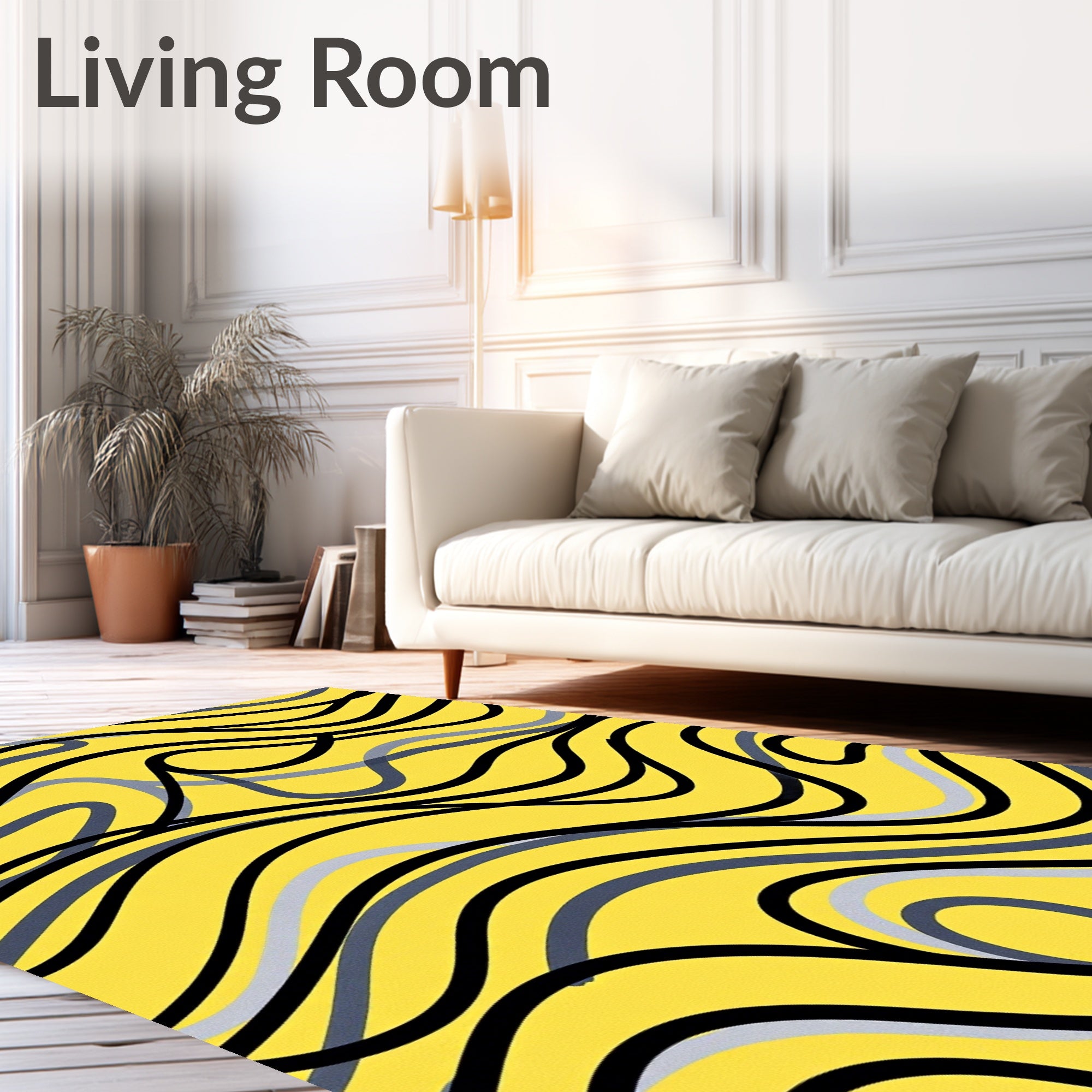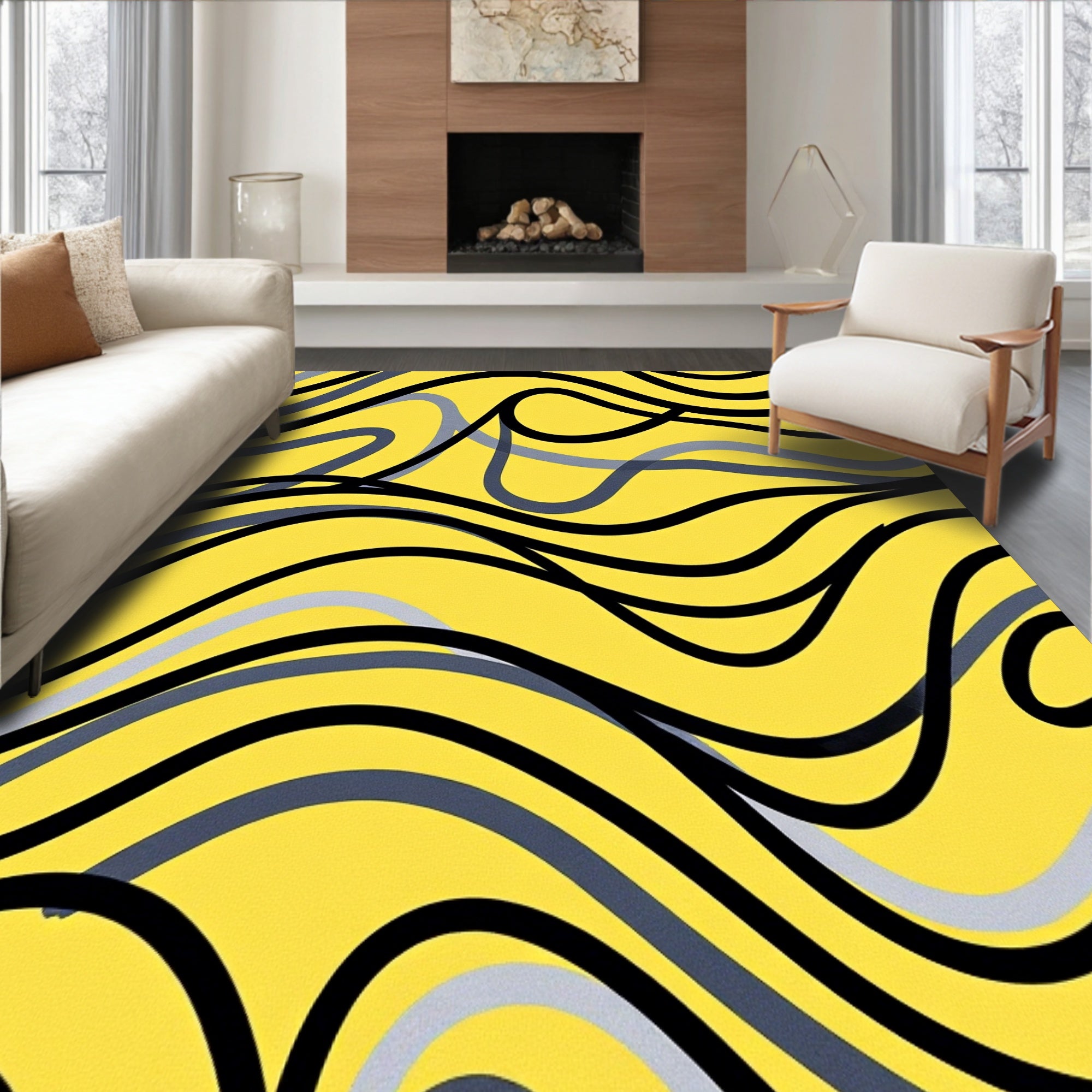 Flatwoven High Traffic Area Rug, Abstract Waves Artistic Swirl Decorative, Non Slip, Stain Resistant, Washable Area Rugs for Living Room, Bedroom (Yellow) Overview:
