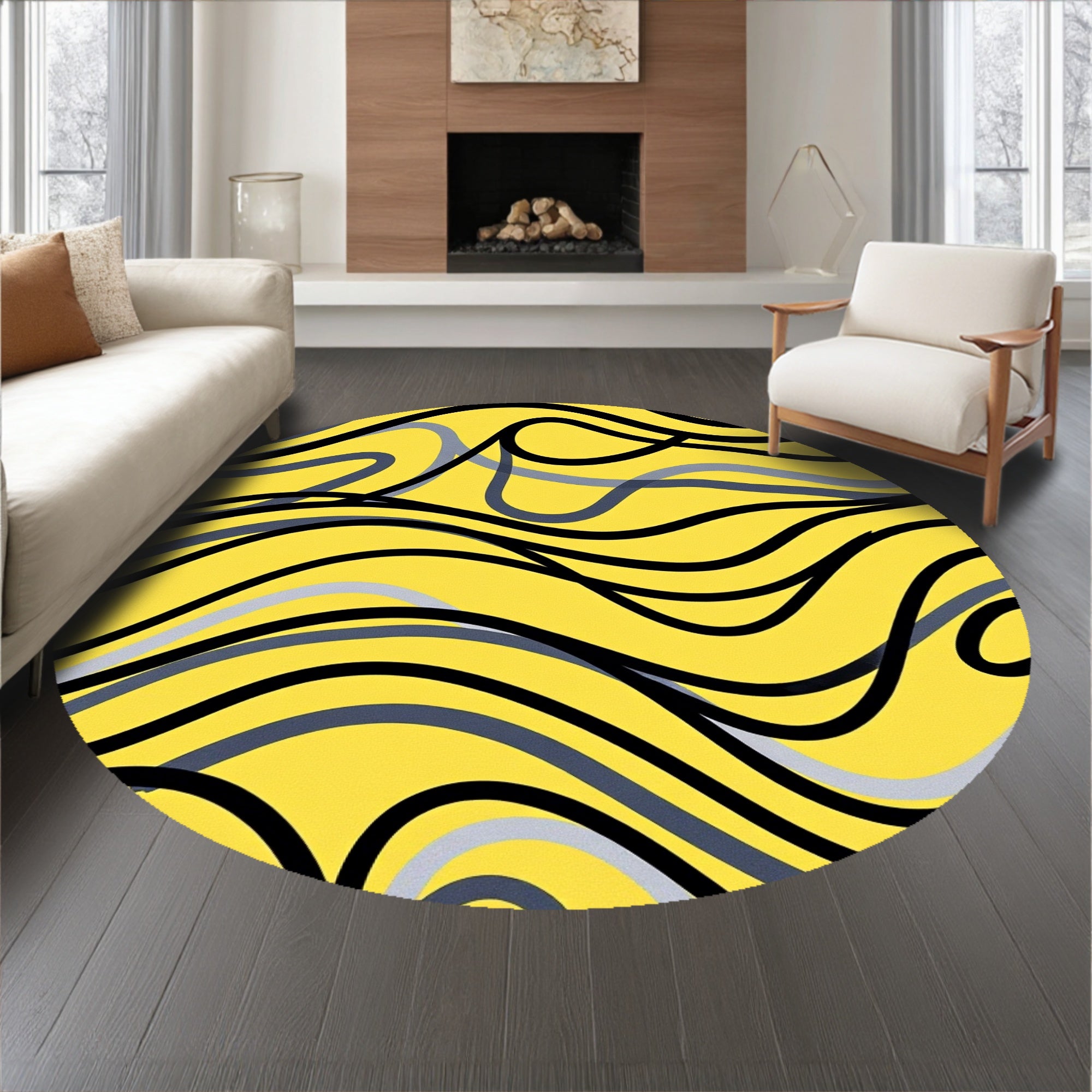 Abstract Waves Artistic Swirl Decorative (Yellow)