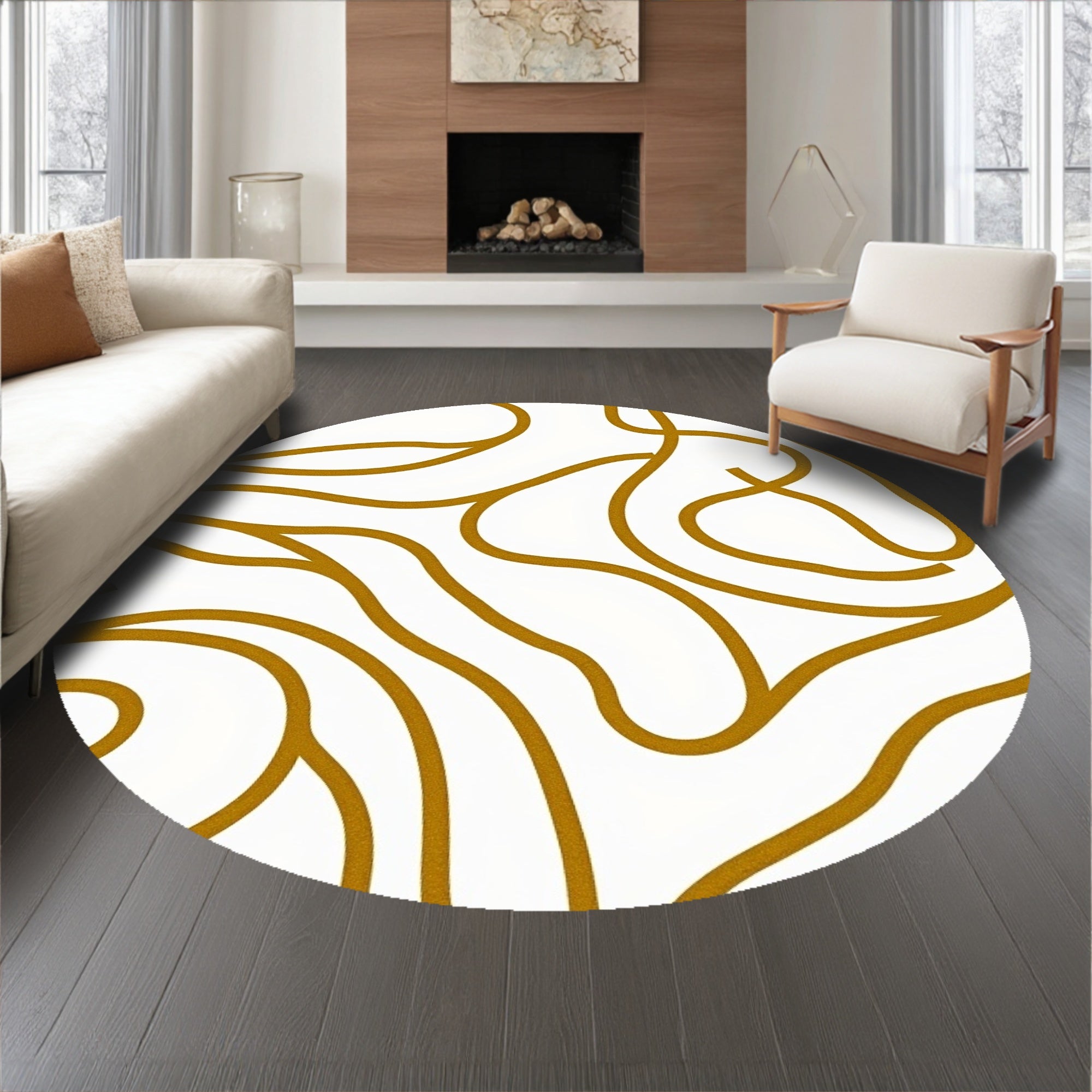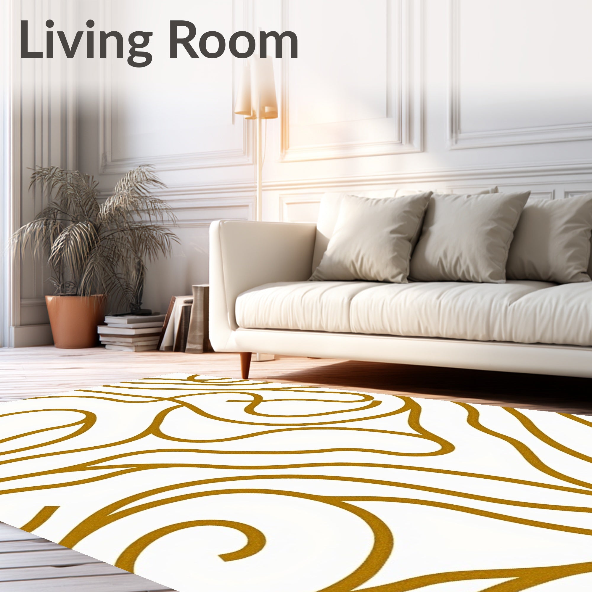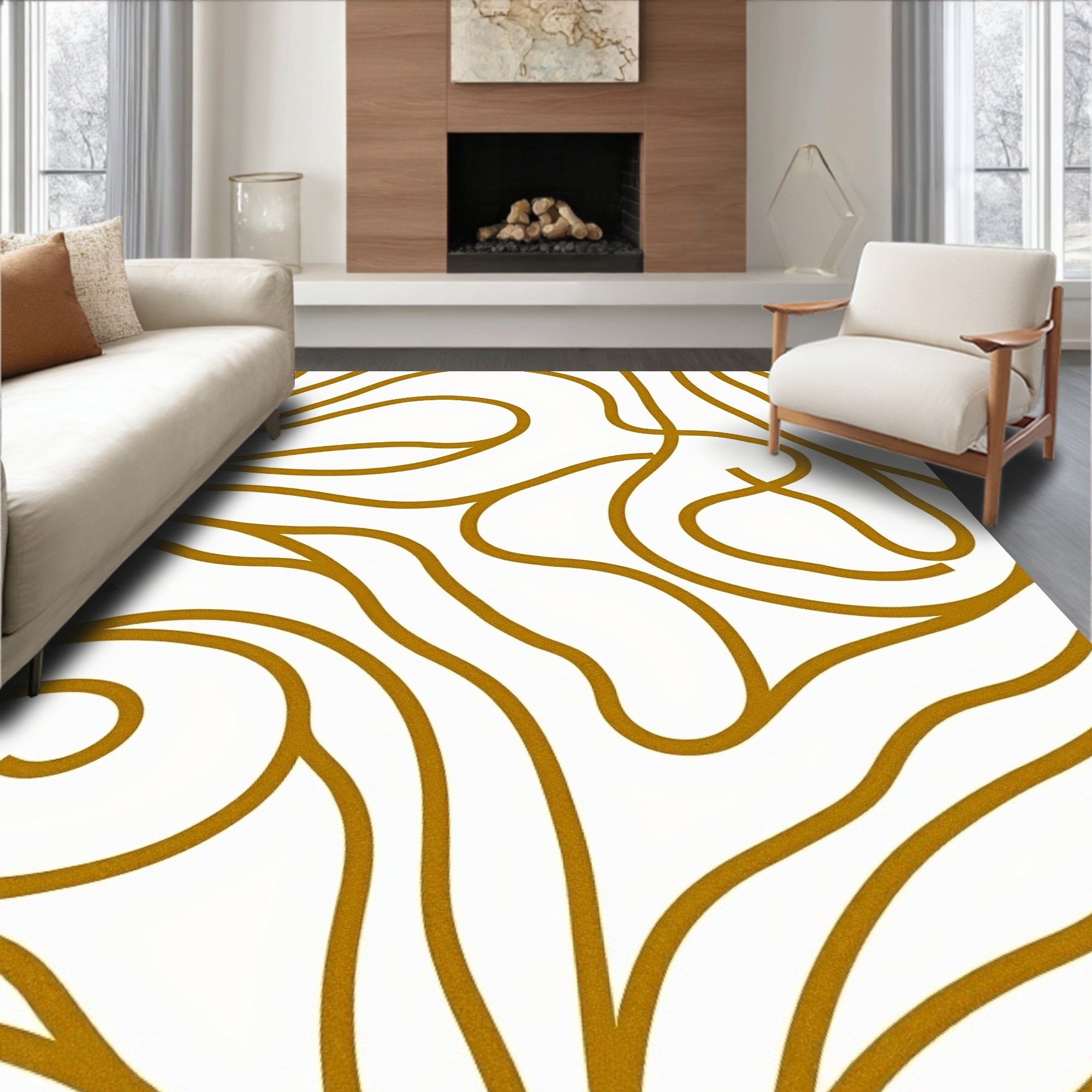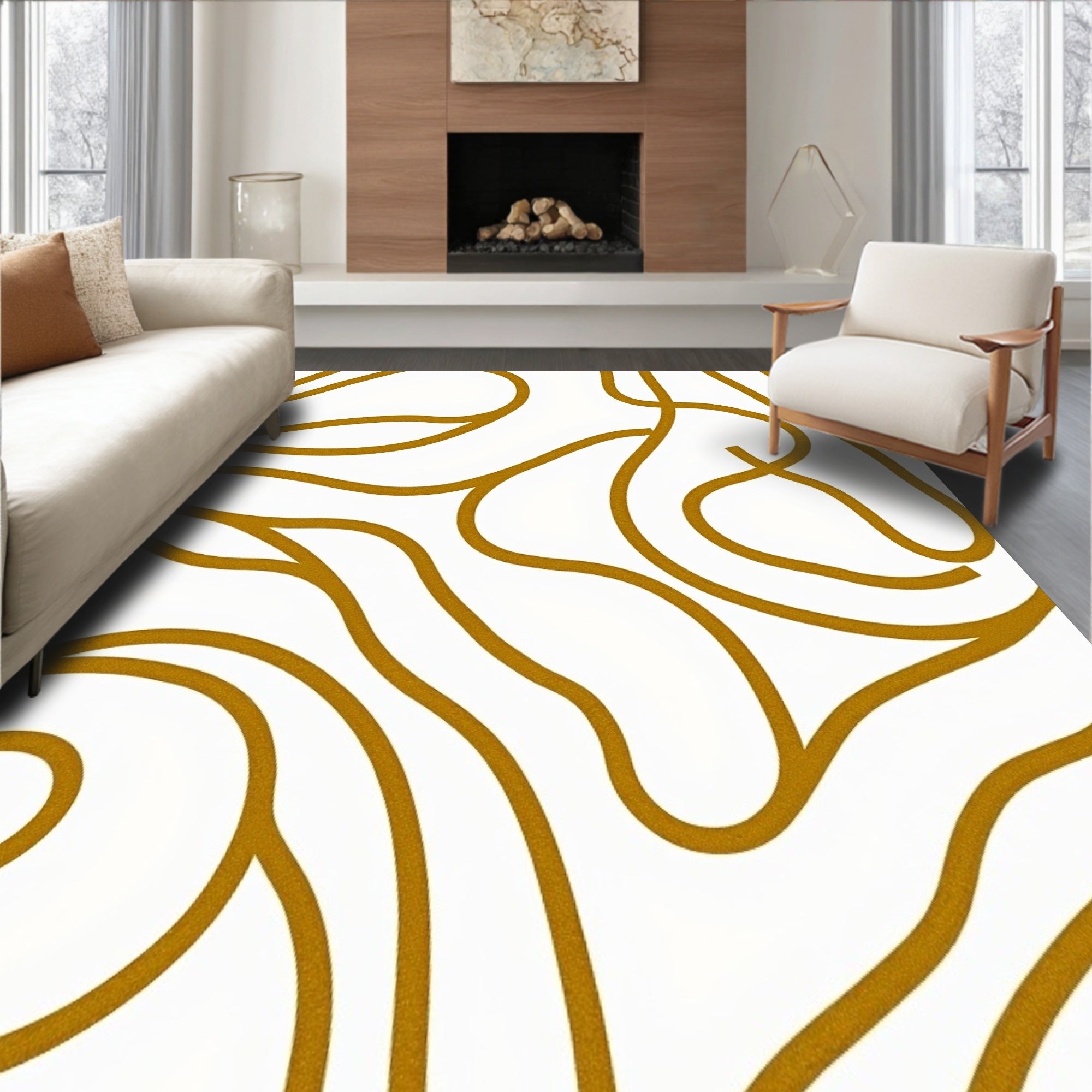 Flatwoven High Traffic Area Rug, Abstract Wavy Curves Modern Artistic, Non Slip, Stain Resistant, Washable Area Rugs for Living Room, Bedroom (Gold) Overview: