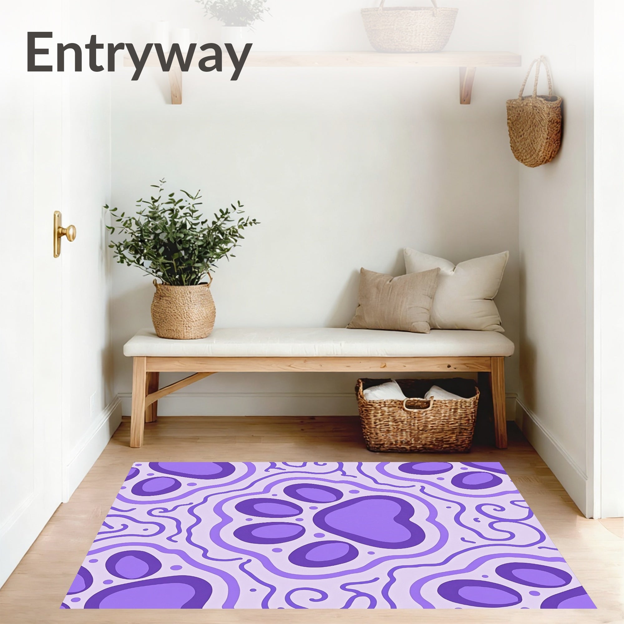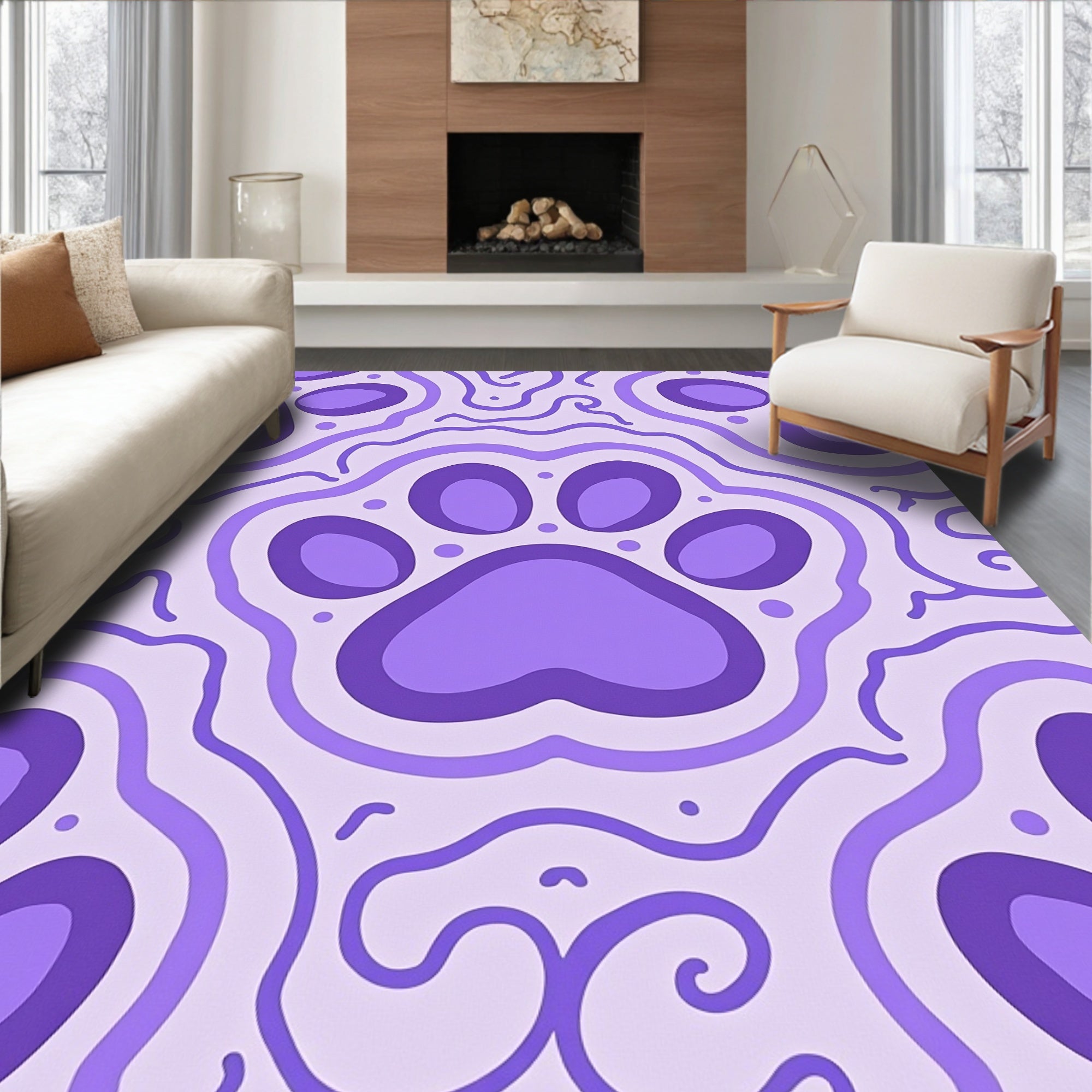Flatwoven High Traffic Area Rug, Adorable Puppy Paw Print Decorative Accent, Non Slip, Stain Resistant, Washable Area Rugs for Living Room, Bedroom (Purple) Overview: