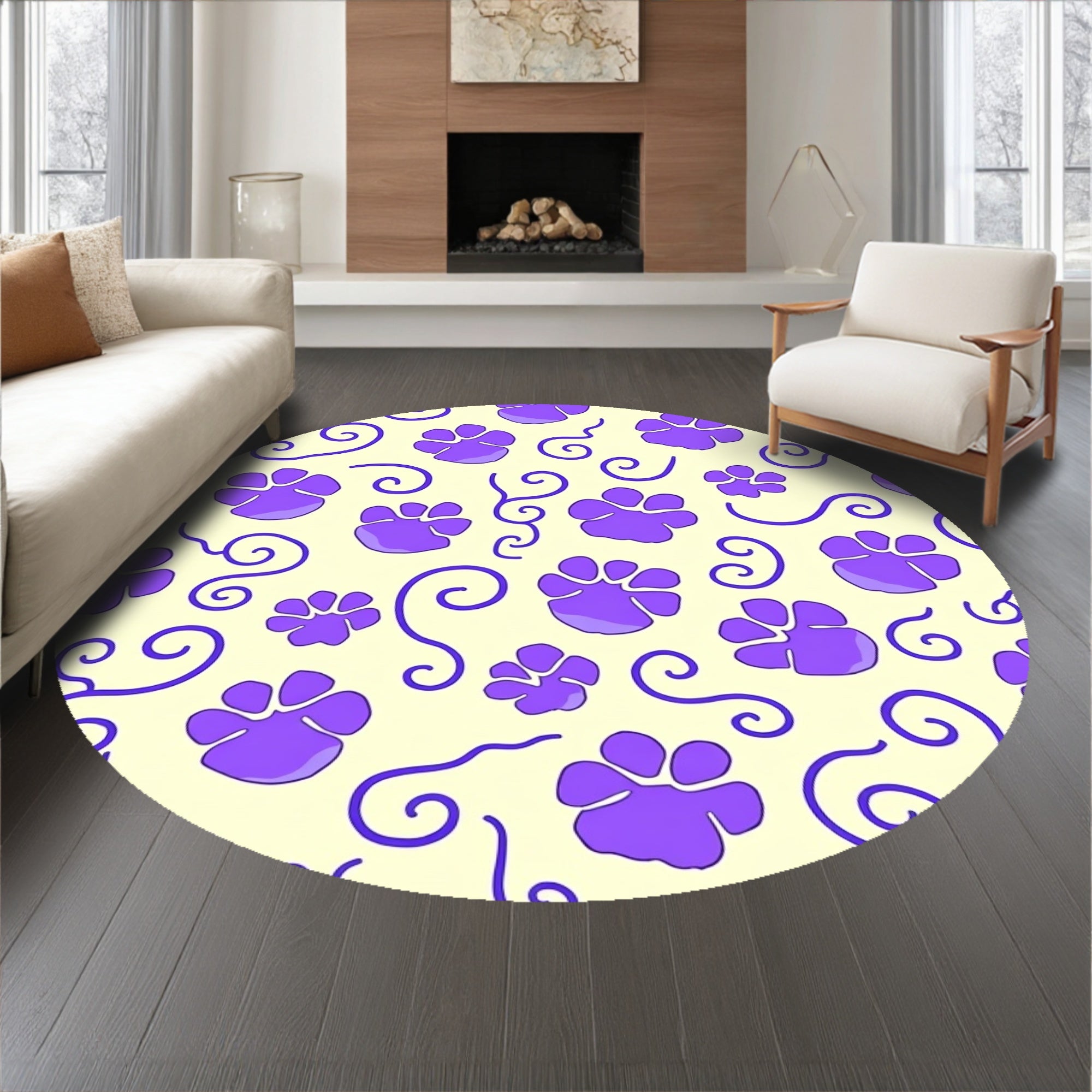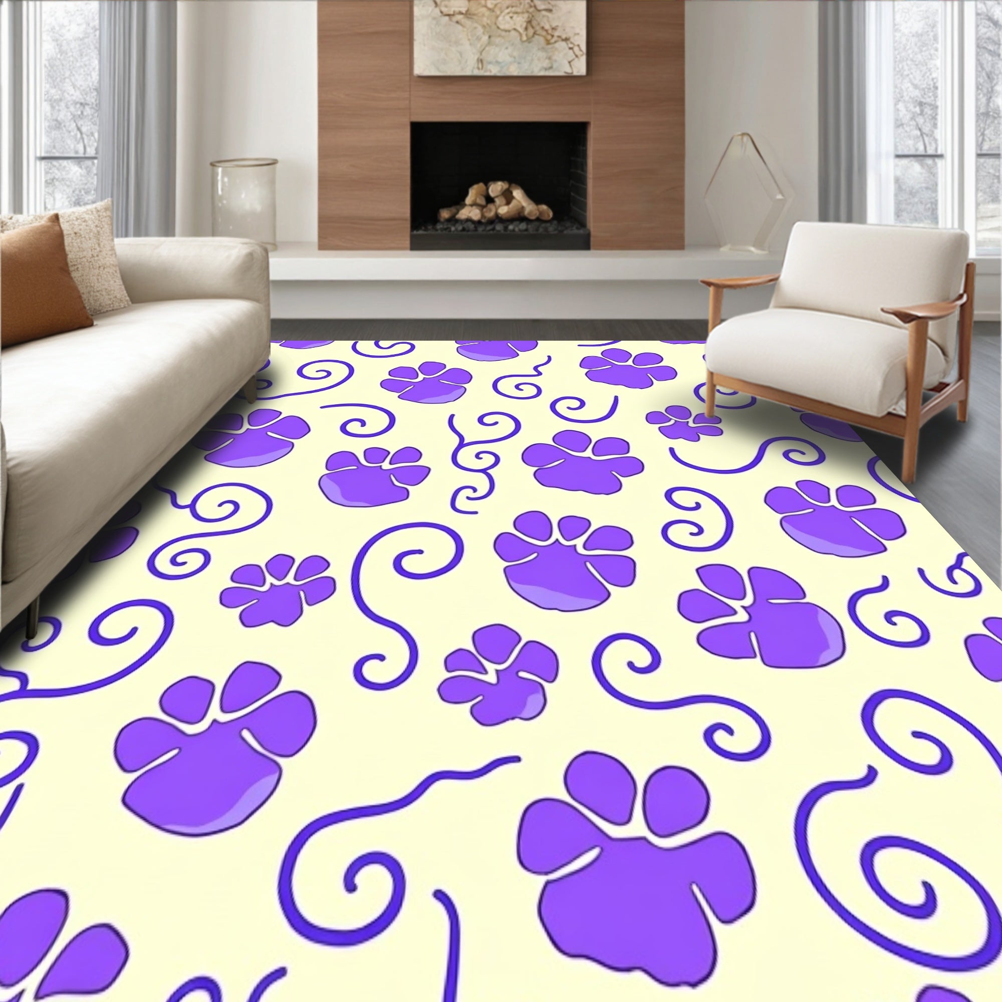 Flatwoven High Traffic Area Rug, Adorable Puppy Paw Print Swirl Design, Non Slip, Stain Resistant, Washable Area Rugs for Living Room, Bedroom (Purple) Overview: