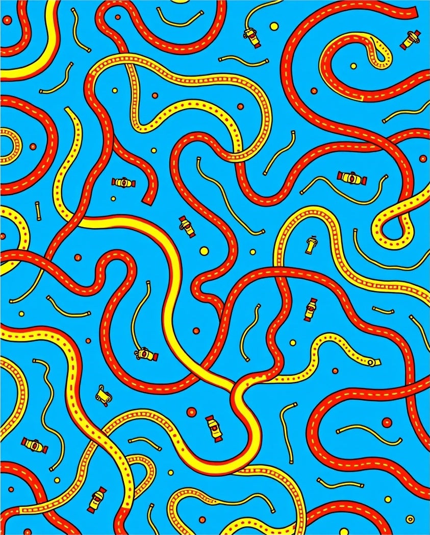 Adventure Roadway Map with Interlocking Tracks and Playful Vehicles Motif (Blue)