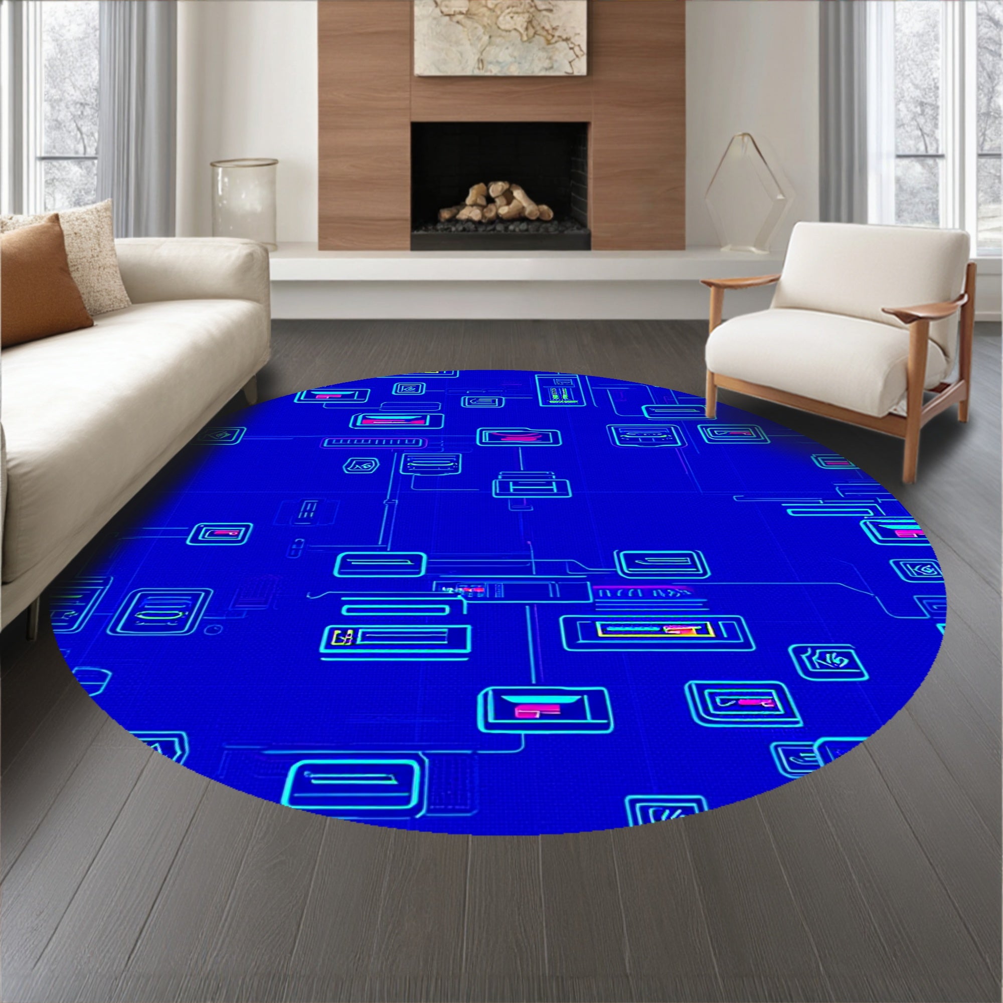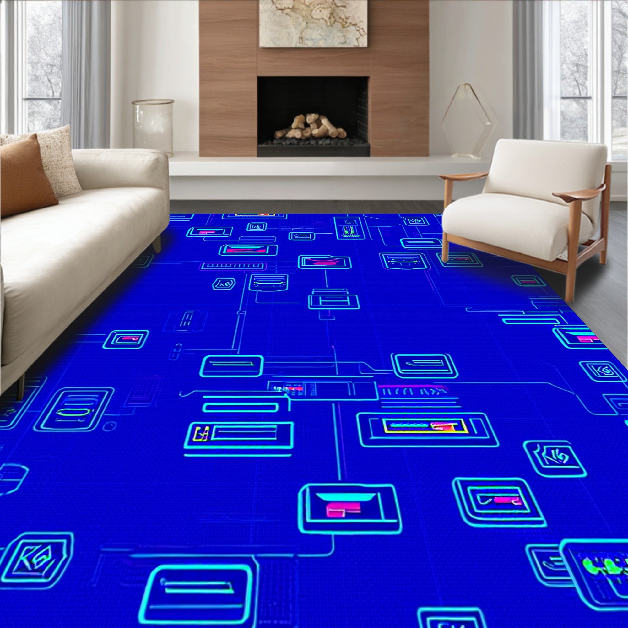 Flatwoven High Traffic Area Rug, Arcade Nostalgia Retro Pixel Console Buttons Design, Non Slip, Stain Resistant, Washable Area Rugs for Living Room, Bedroom (Blue) Overview: