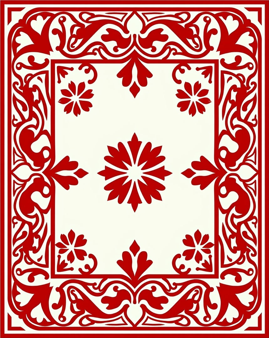 Art Nouveau Floral Swirl with Ornate Vines (Red)