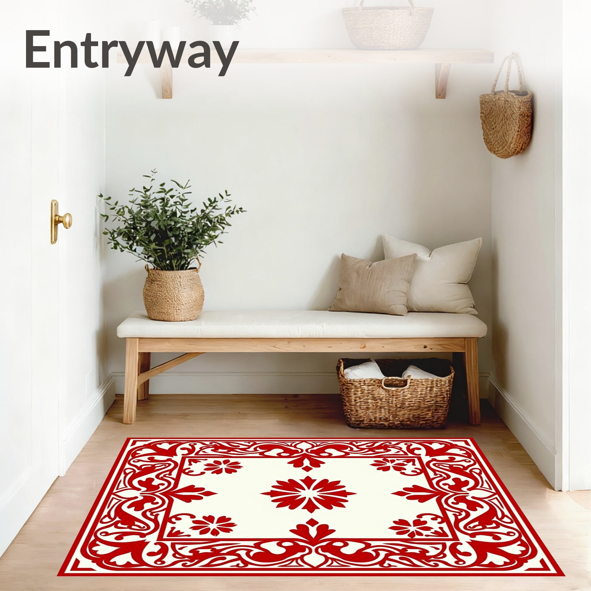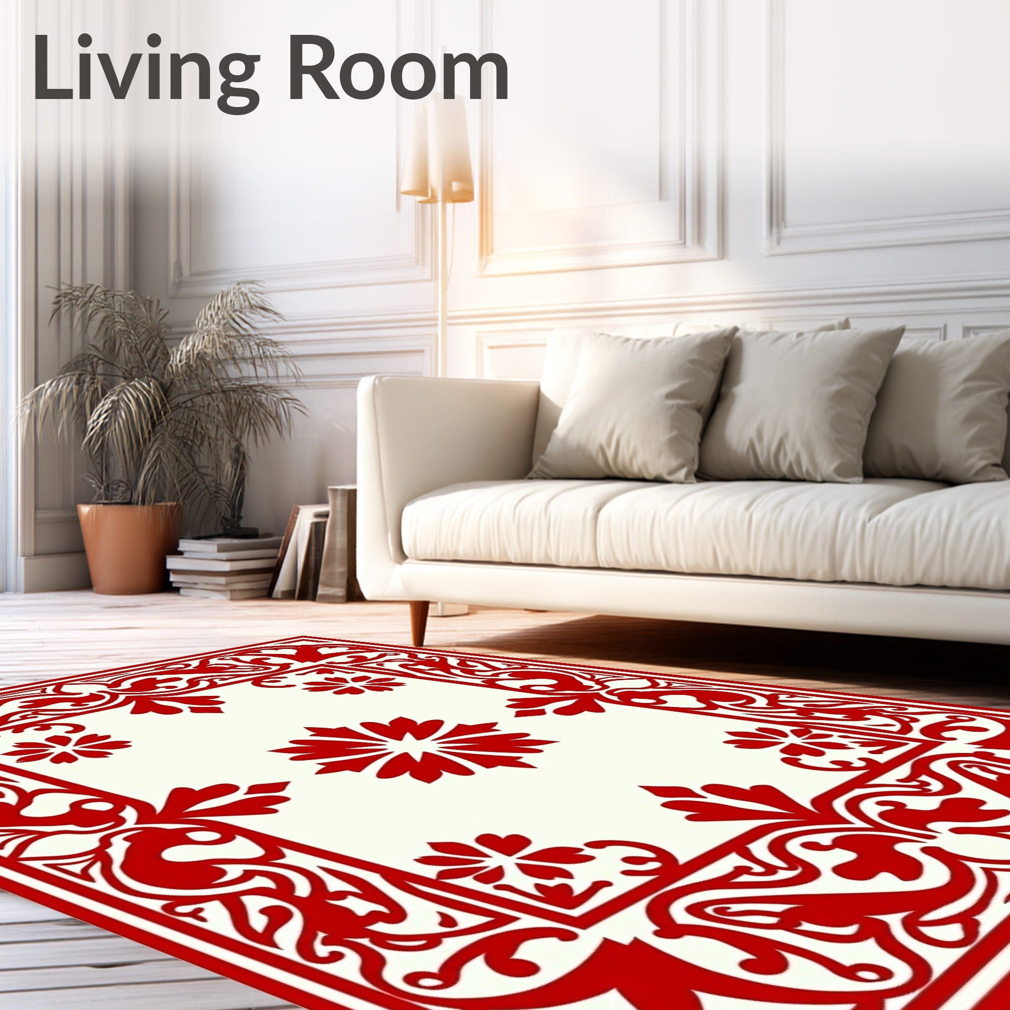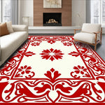 Flatwoven High Traffic Area Rug, Art Nouveau Floral Swirl with Ornate Vines, Non Slip, Stain Resistant, Washable Area Rugs for Living Room, Bedroom (Red) Overview: