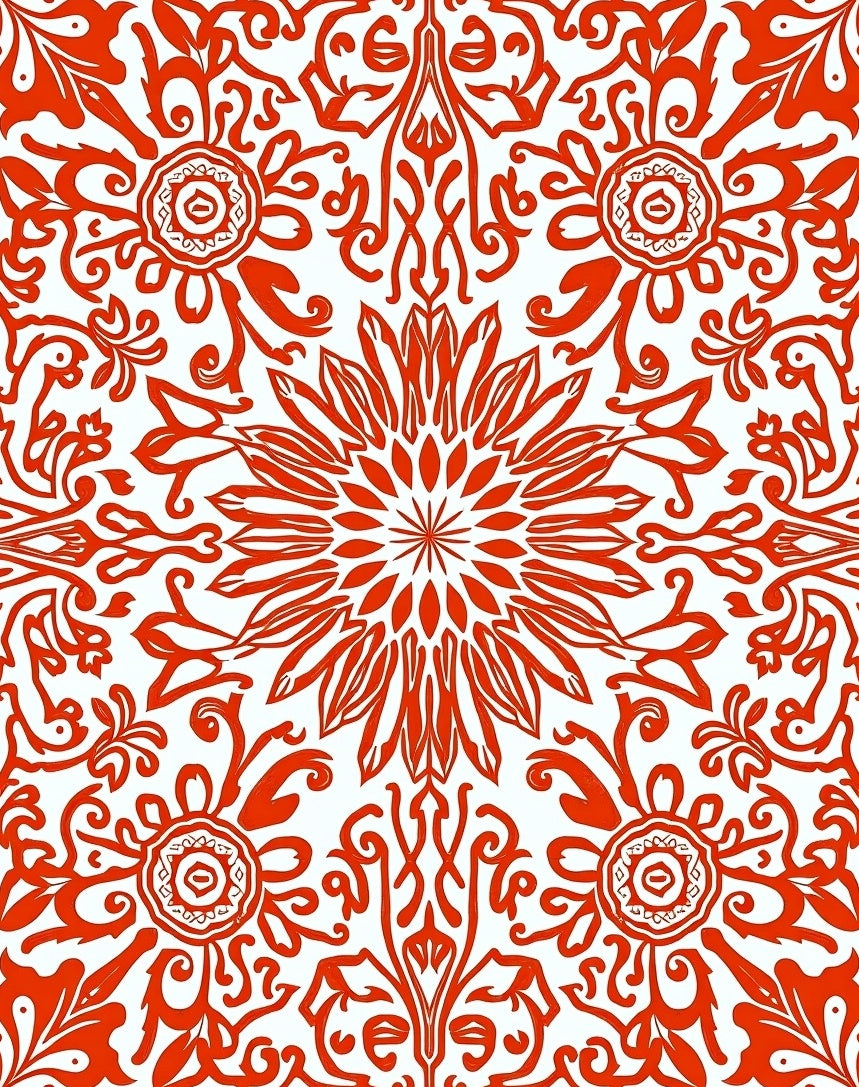 Artisan Floral Scrollwork with Dynamic Brushstroke (Red)