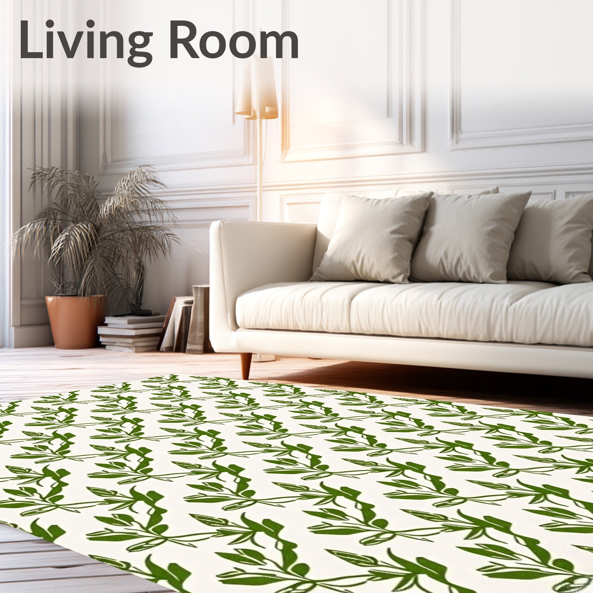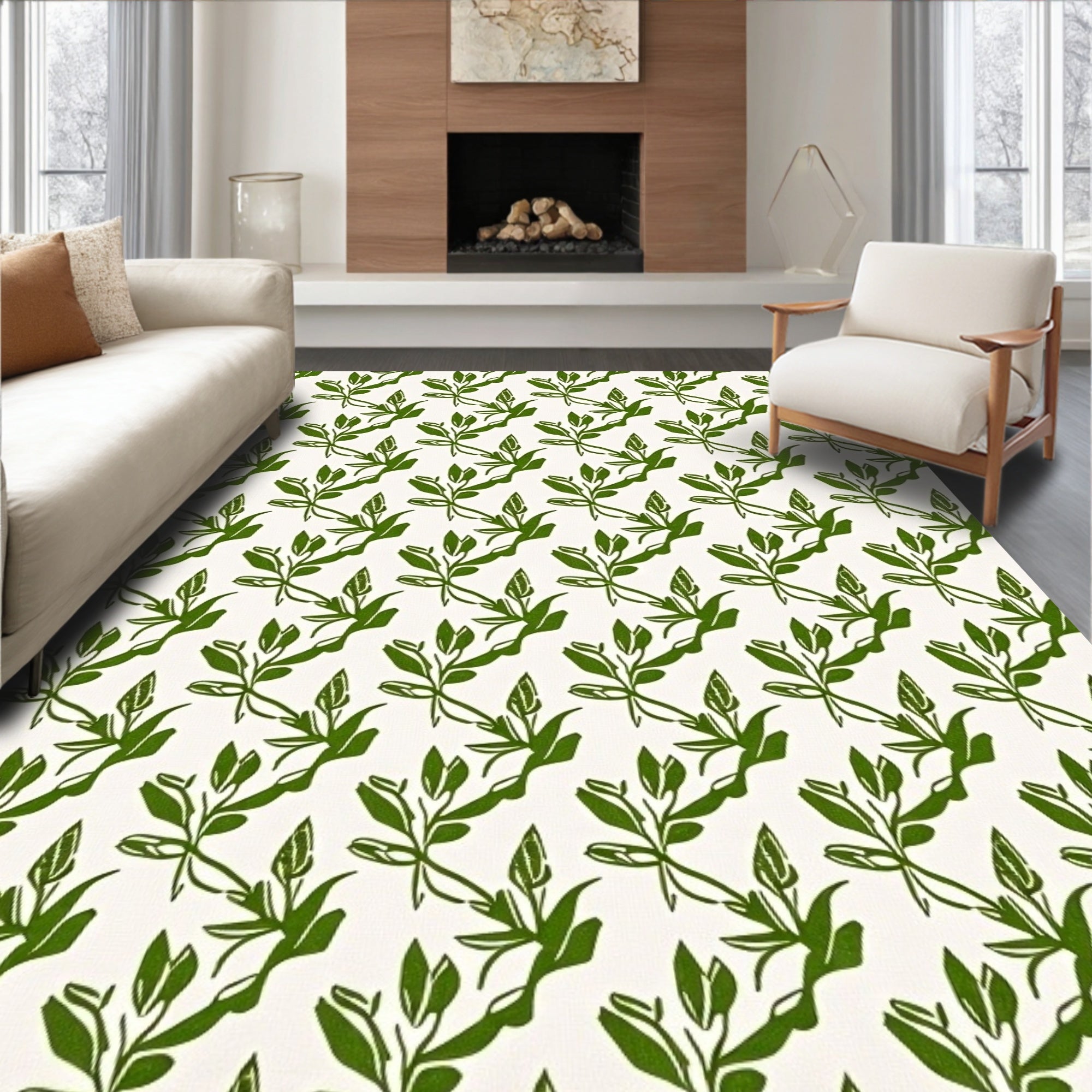 Flatwoven High Traffic Area Rug, Artisan Leaf Motif Plush Decorative, Non Slip, Stain Resistant, Washable Area Rugs for Living Room, Bedroom (Green) Overview:
