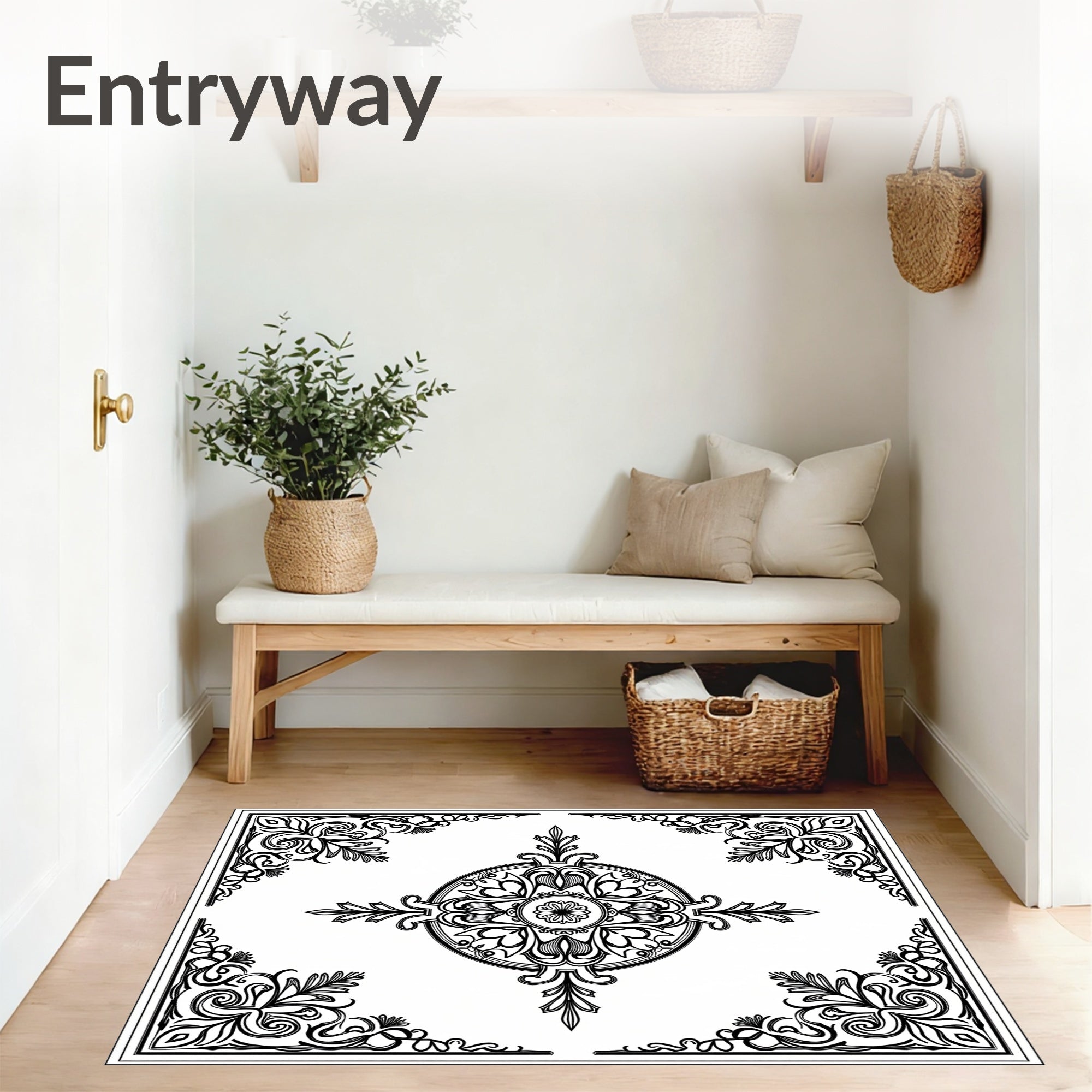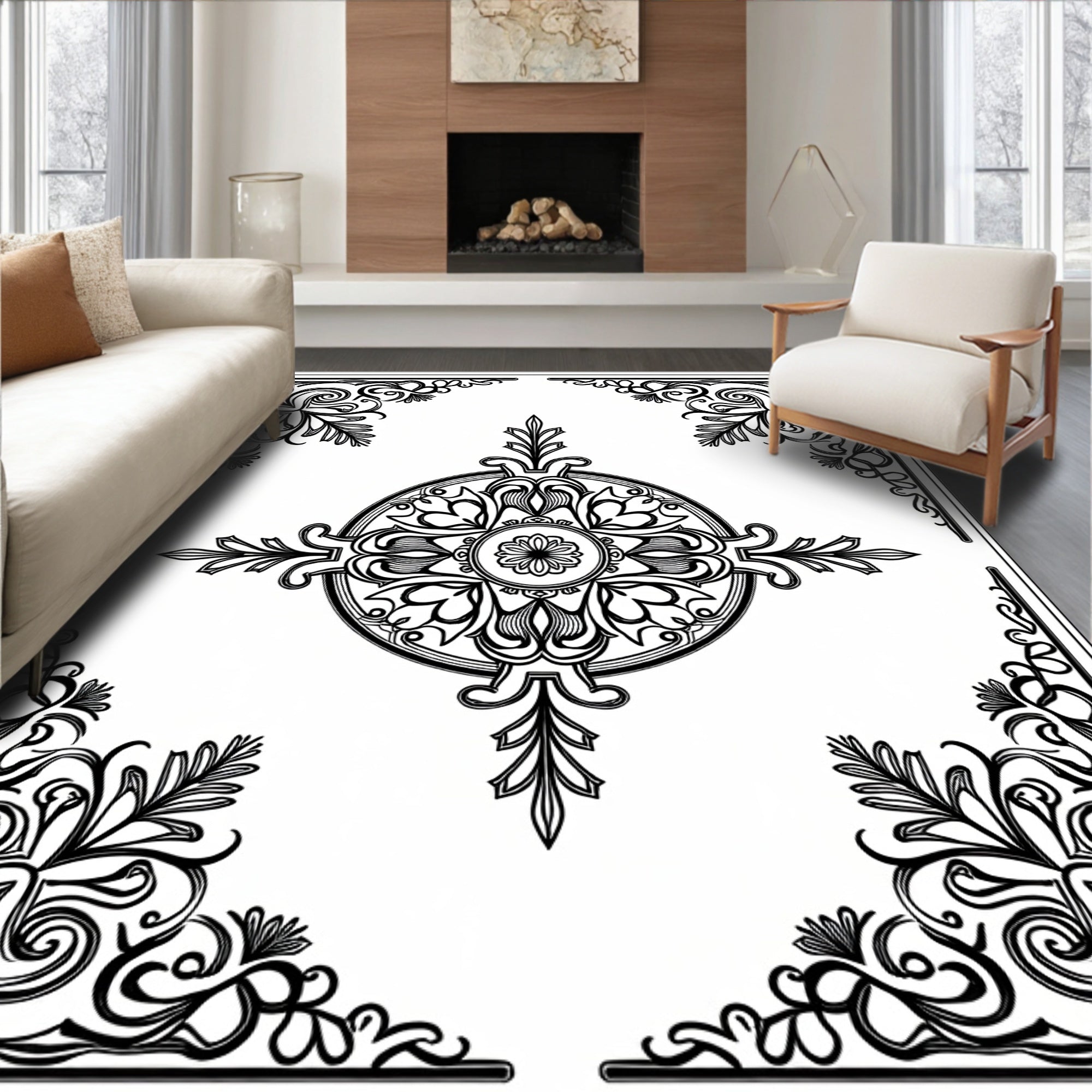 Flatwoven High Traffic Area Rug, Artisan Medallion with Weathered Floral Filigree Design, Non Slip, Stain Resistant, Washable Area Rugs for Living Room, Bedroom (Black) Overview: