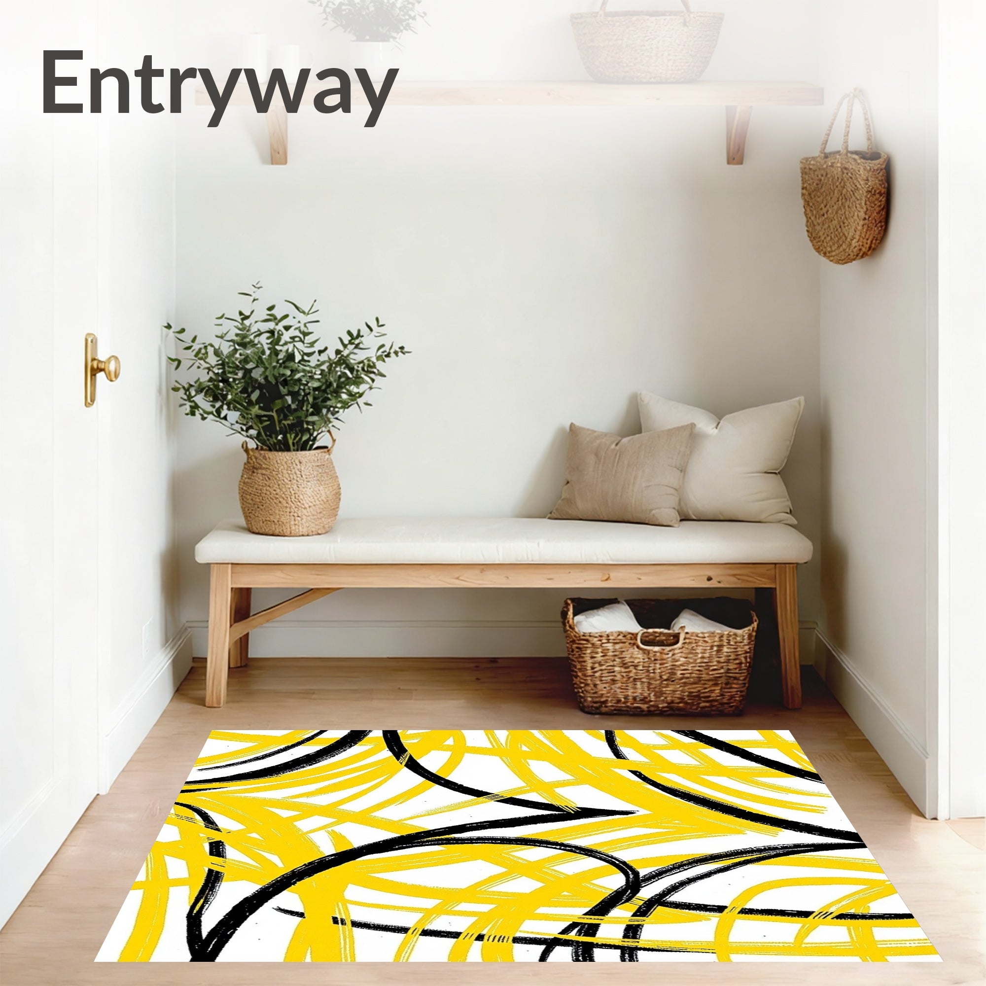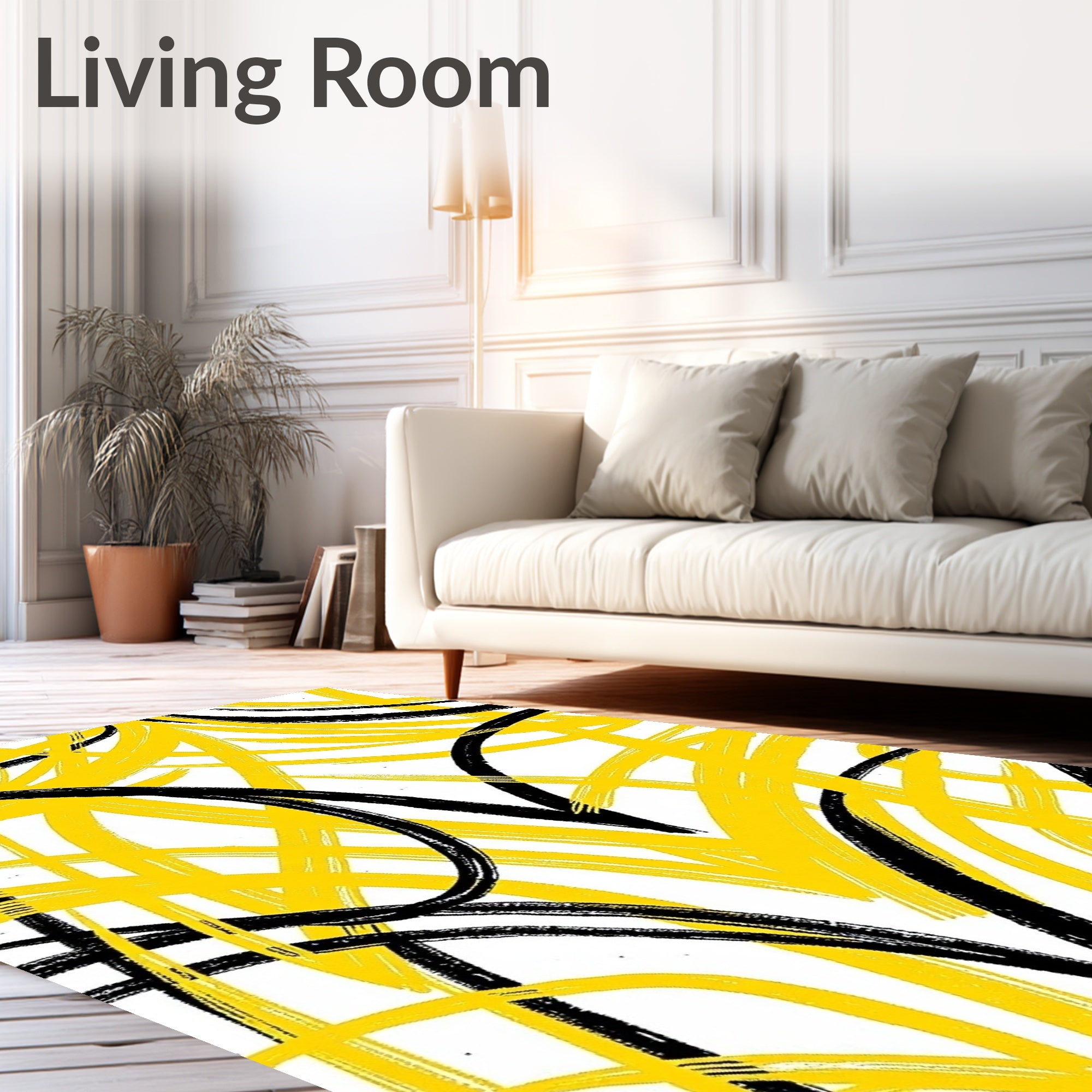 Flatwoven High Traffic Area Rug, Artistic Abstract Brushstroke Modern Ultrasoft, Non Slip, Stain Resistant, Washable Area Rugs for Living Room, Bedroom (Yellow) Overview: