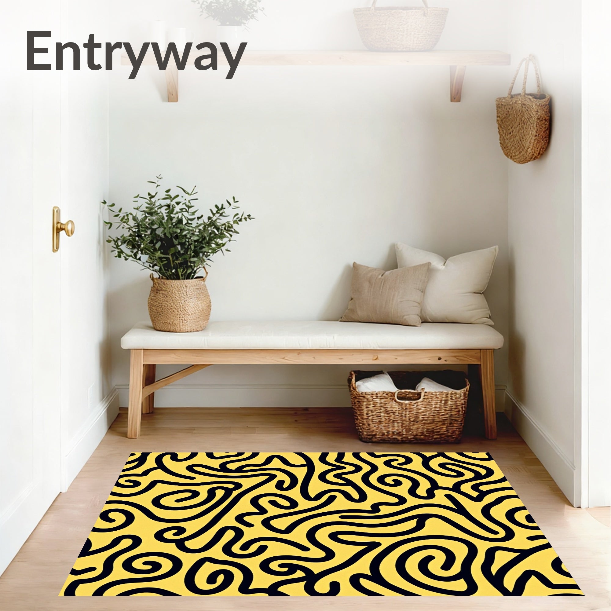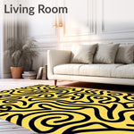 Flatwoven High Traffic Area Rug, Artistic Swirl Motif Wavy Plush Boho Trendy Decorative, Non Slip, Stain Resistant, Washable Area Rugs for Living Room, Bedroom (Yellow) Overview:
