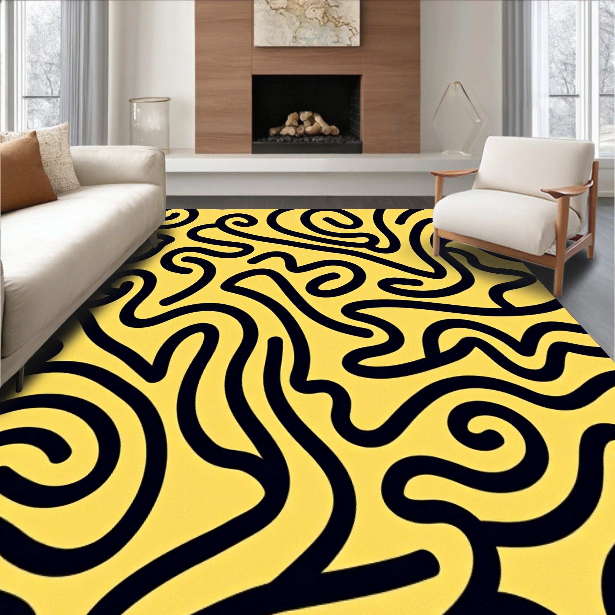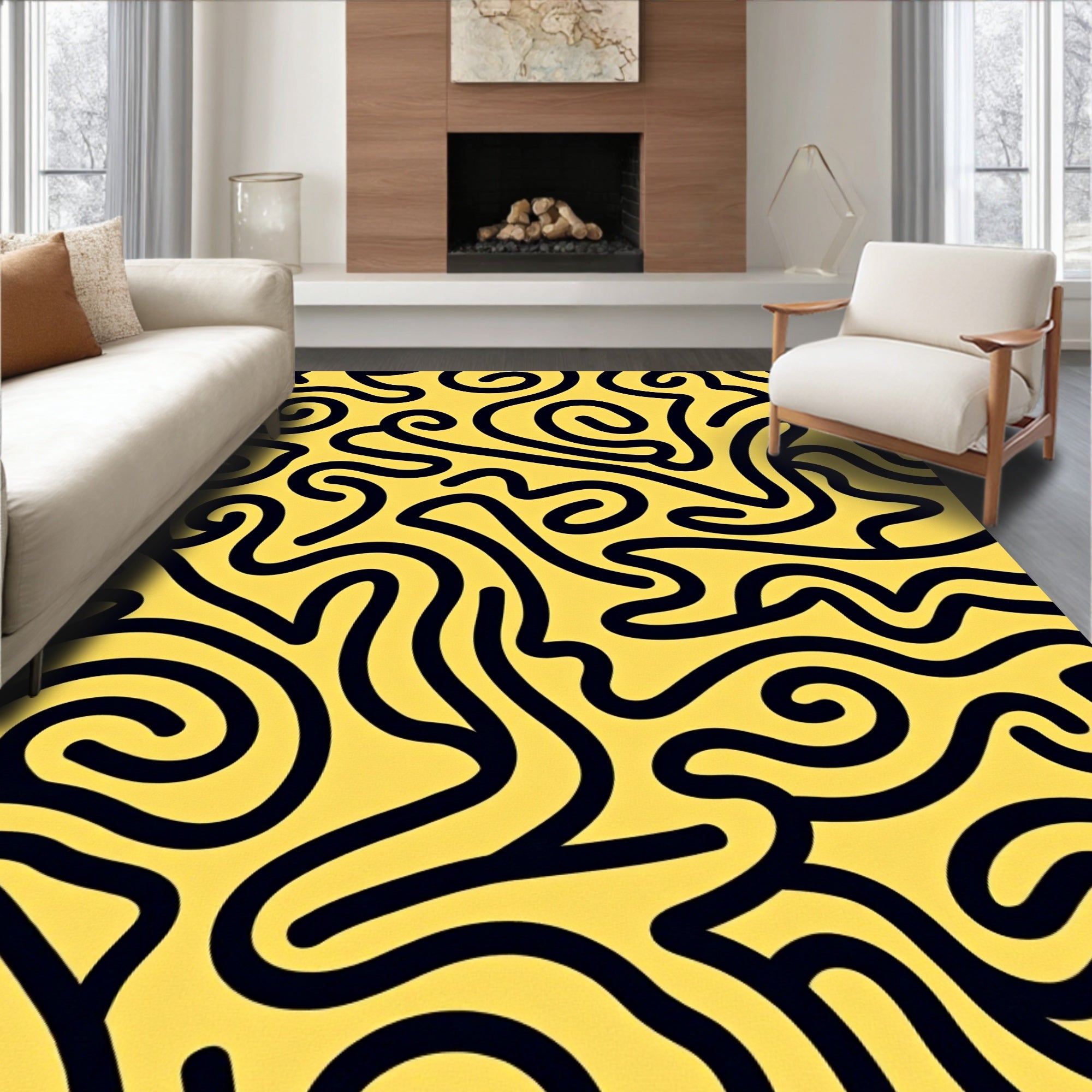 Artistic Swirl Motif Wavy Plush Boho Trendy Decorative (Yellow)