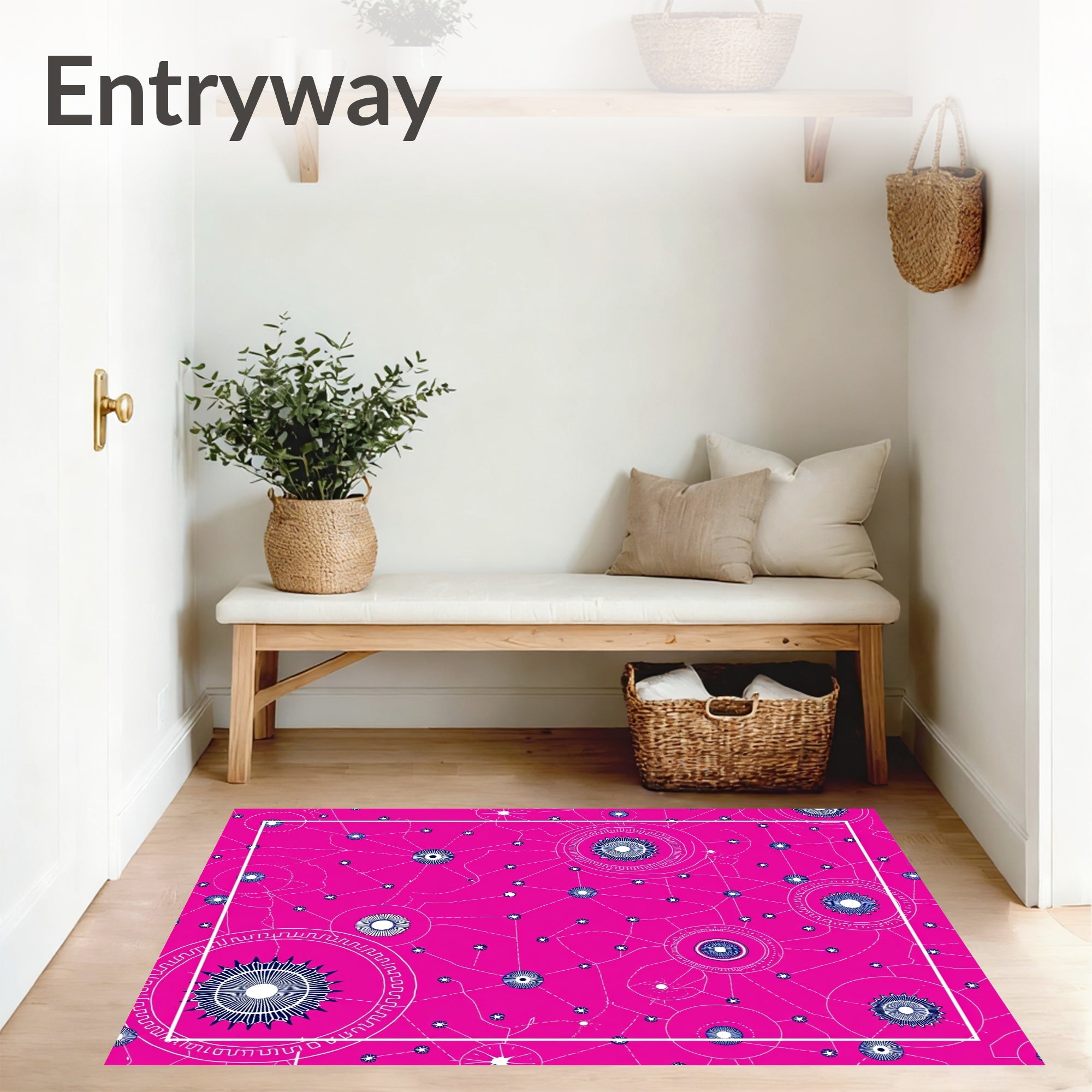 Flatwoven High Traffic Area Rug, Astral Constellation Map with Cluster Artwork, Non Slip, Stain Resistant, Washable Area Rugs for Living Room, Bedroom (Pink) Overview: