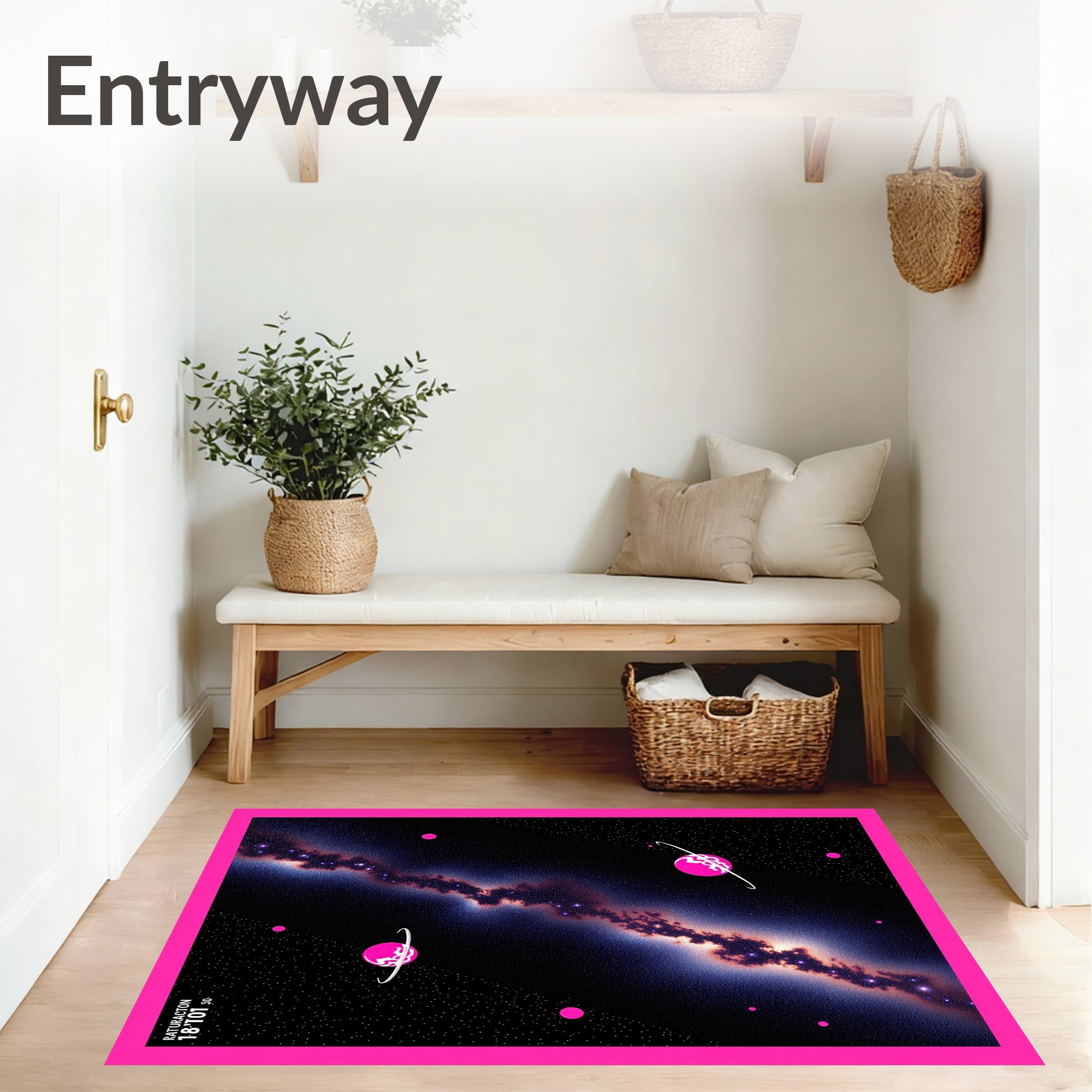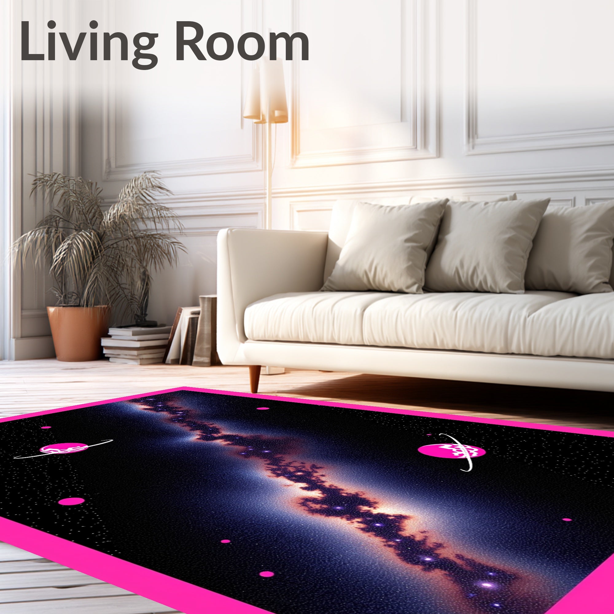 Flatwoven High Traffic Area Rug, Astronomical Journey Milky Way Exploration Heavenly Discovery, Non Slip, Stain Resistant, Washable Area Rugs for Living Room, Bedroom (Pink) Overview: