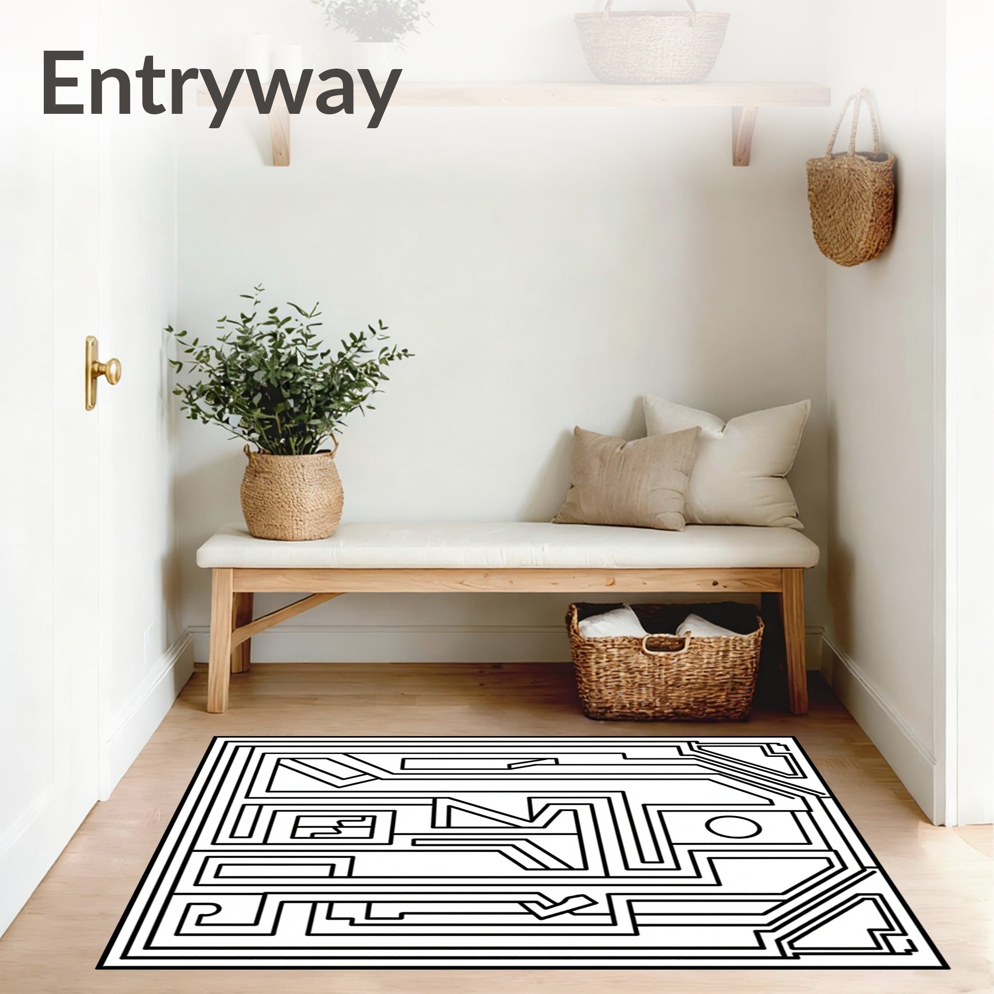 Flatwoven High Traffic Area Rug, Avant Garde Maze Labyrinth Stylish Accent, Non Slip, Stain Resistant, Washable Area Rugs for Living Room, Bedroom (Black) Overview: