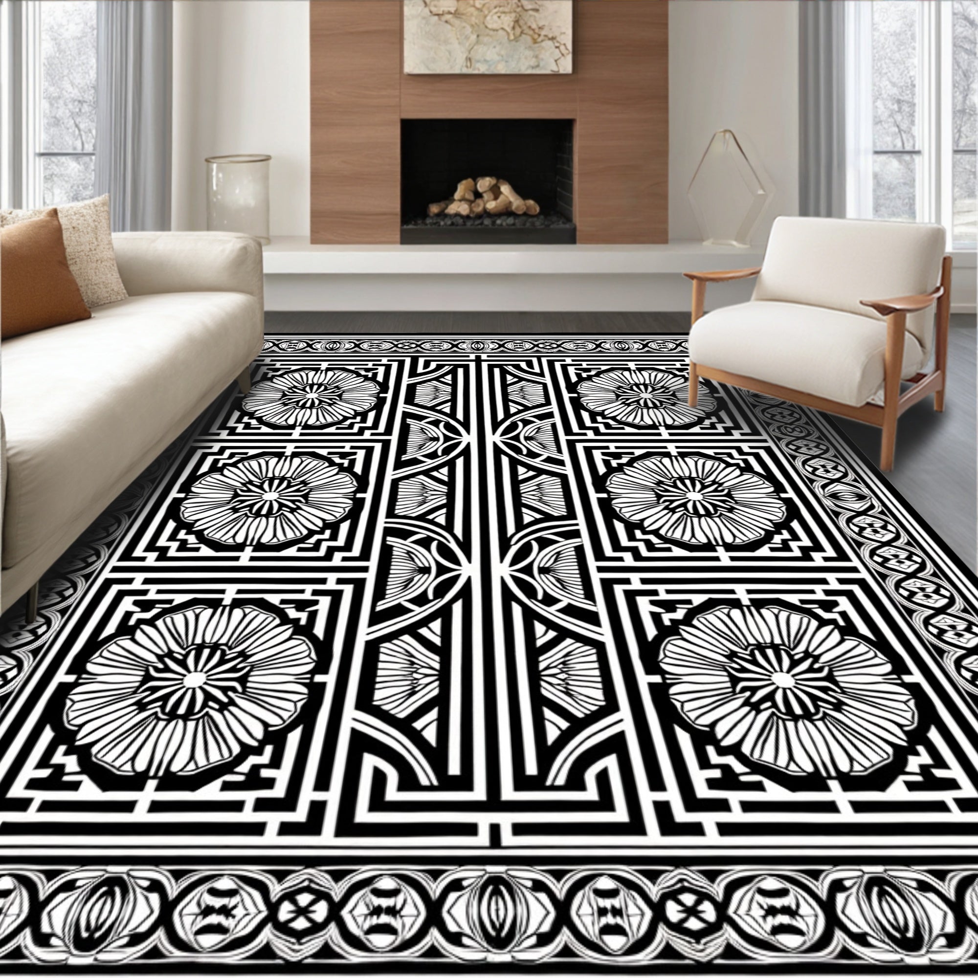 Flatwoven High Traffic Area Rug, Aztec Maze Medallion with Artisan Motif Interplay, Non Slip, Stain Resistant, Washable Area Rugs for Living Room, Bedroom (Black) Overview: