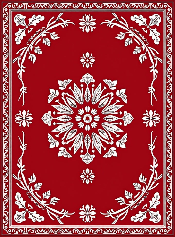 Baroque Floral Vine Arrangement with Symmetrical Petal Embellishments (Red)