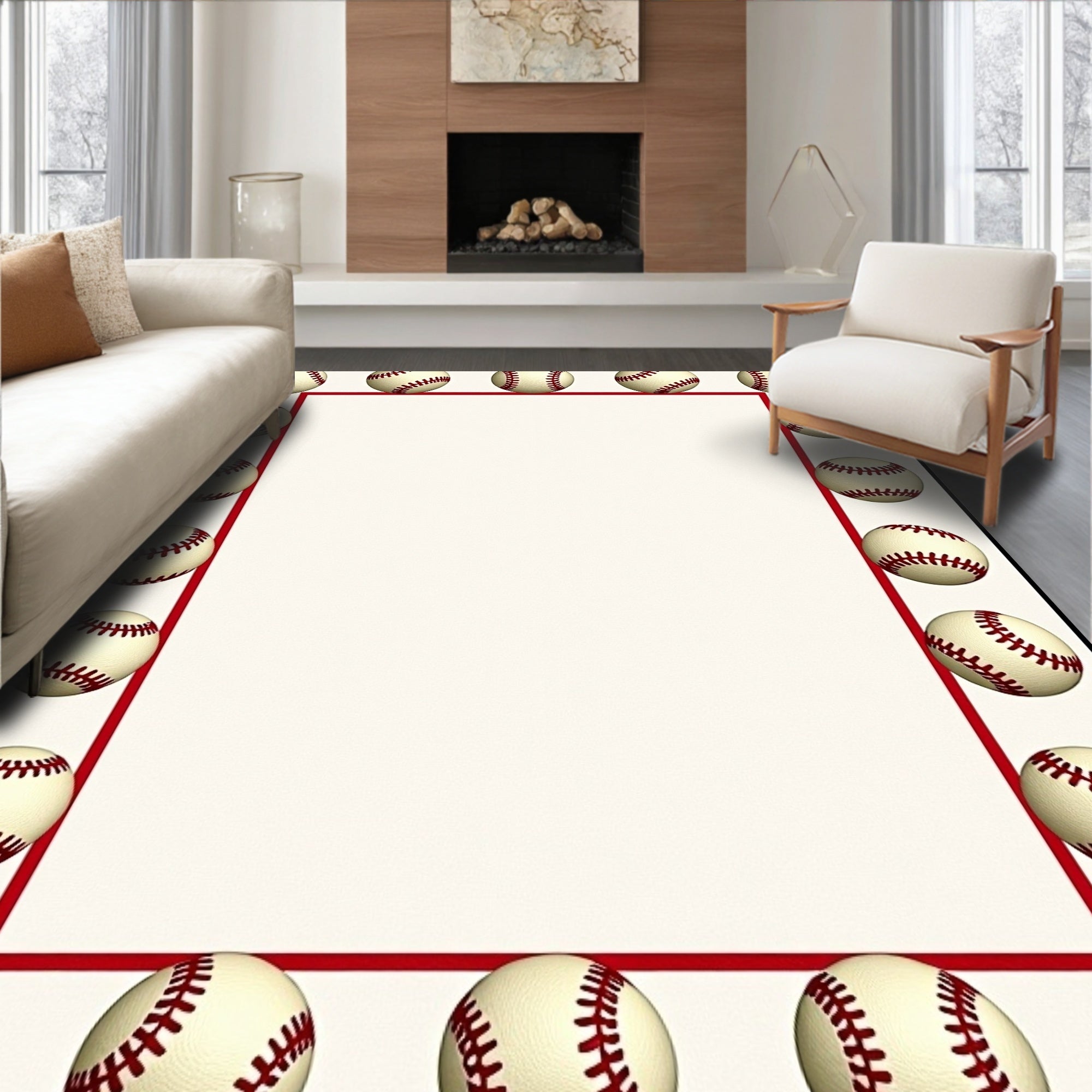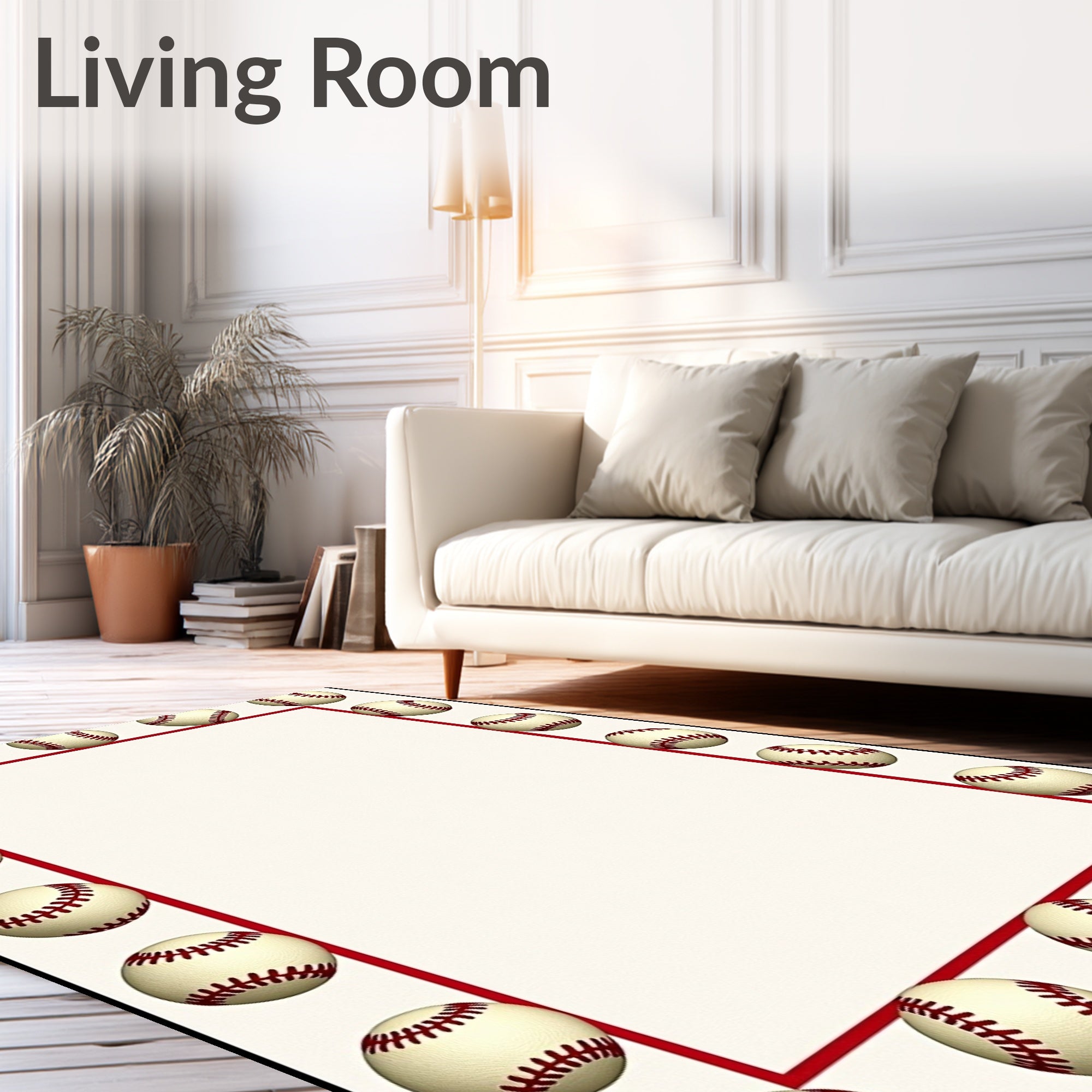 Flatwoven High Traffic Area Rug, Batter Field Practice Dugout Tribute, Non Slip, Stain Resistant, Washable Area Rugs for Living Room, Bedroom (Ivory) Overview: