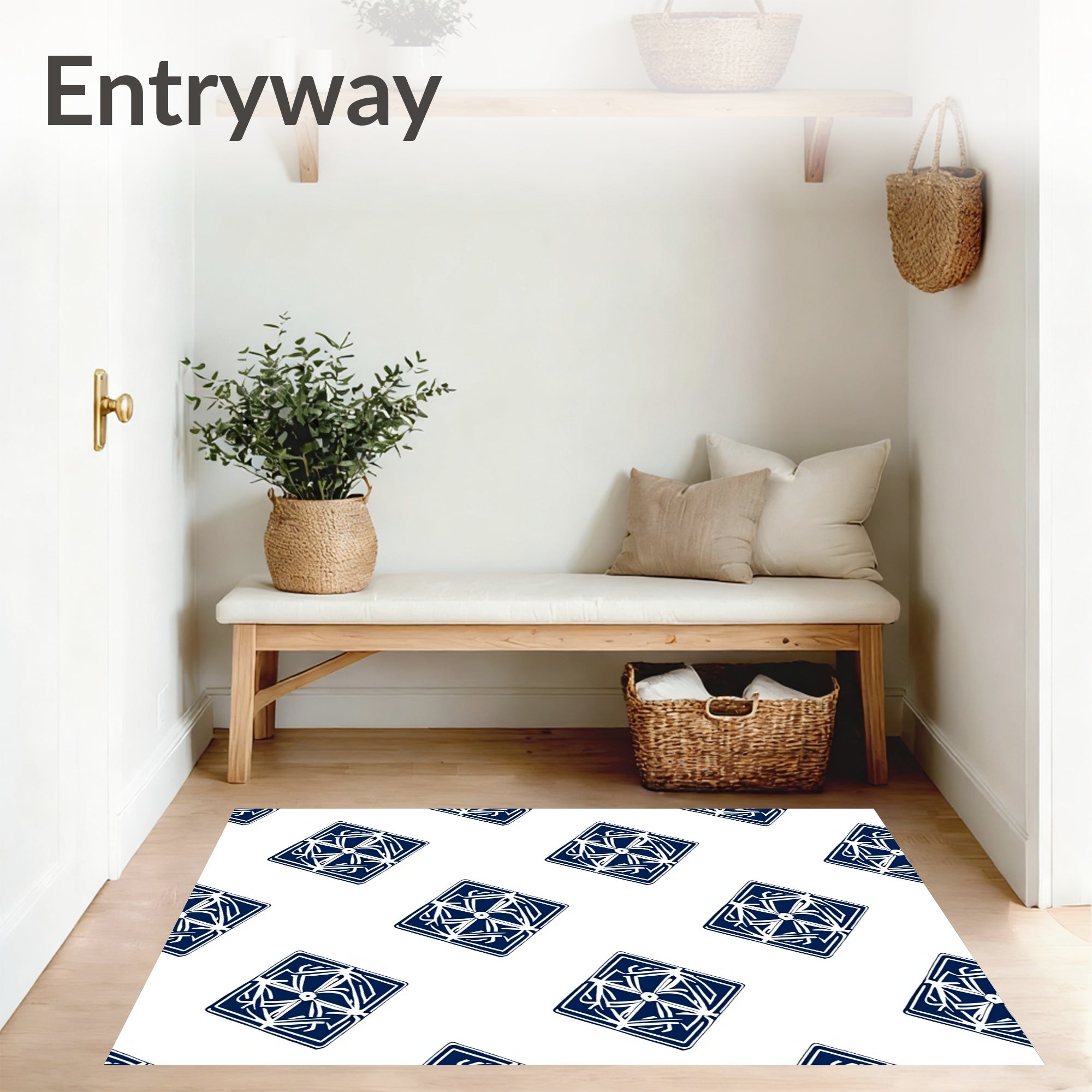 Flatwoven High Traffic Area Rug, Bistro Tablecloth Boxed Quilt Stitch French Inspired, Non Slip, Stain Resistant, Washable Area Rugs for Living Room, Bedroom (Blue) Overview: