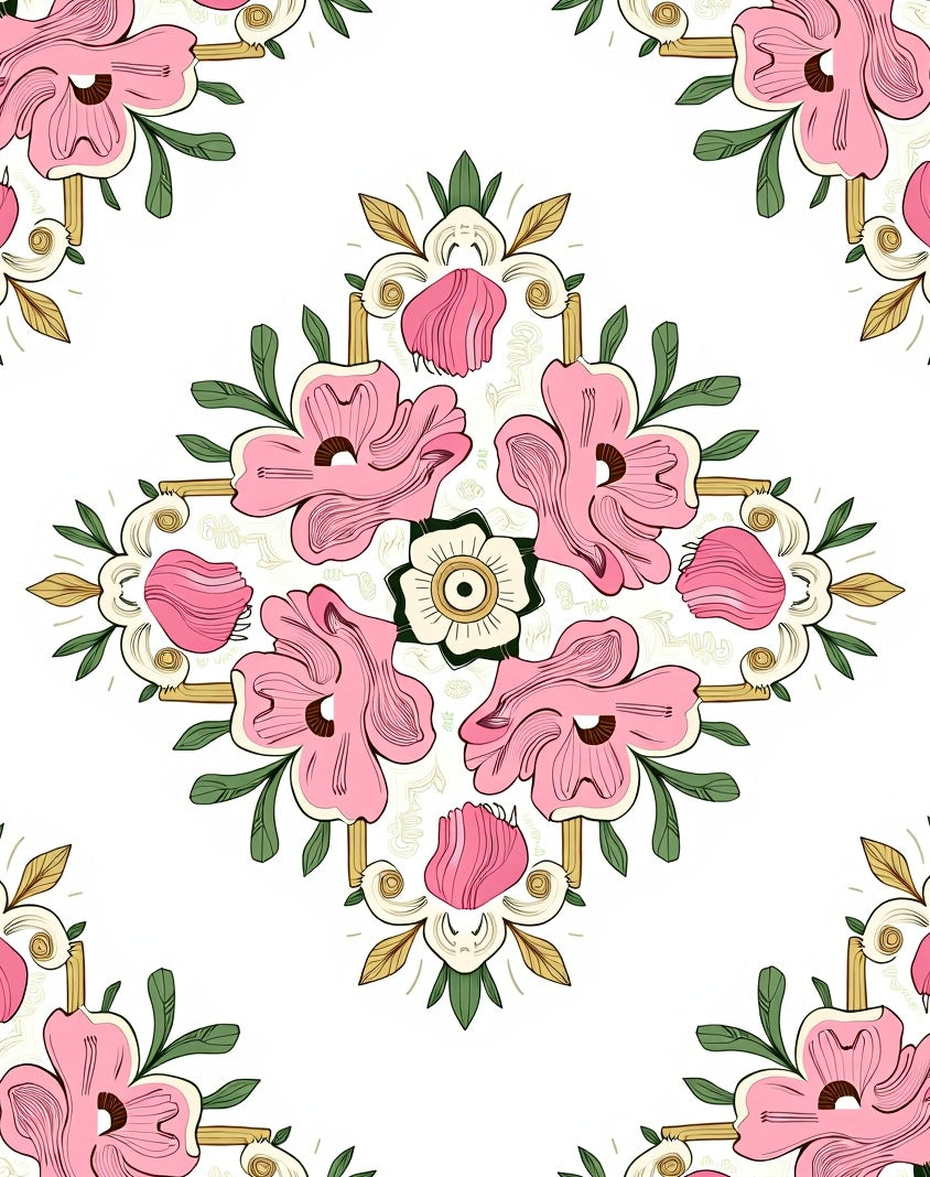 Blooming Botanical Medallion Interwoven Floral Vintage Design (Pink)