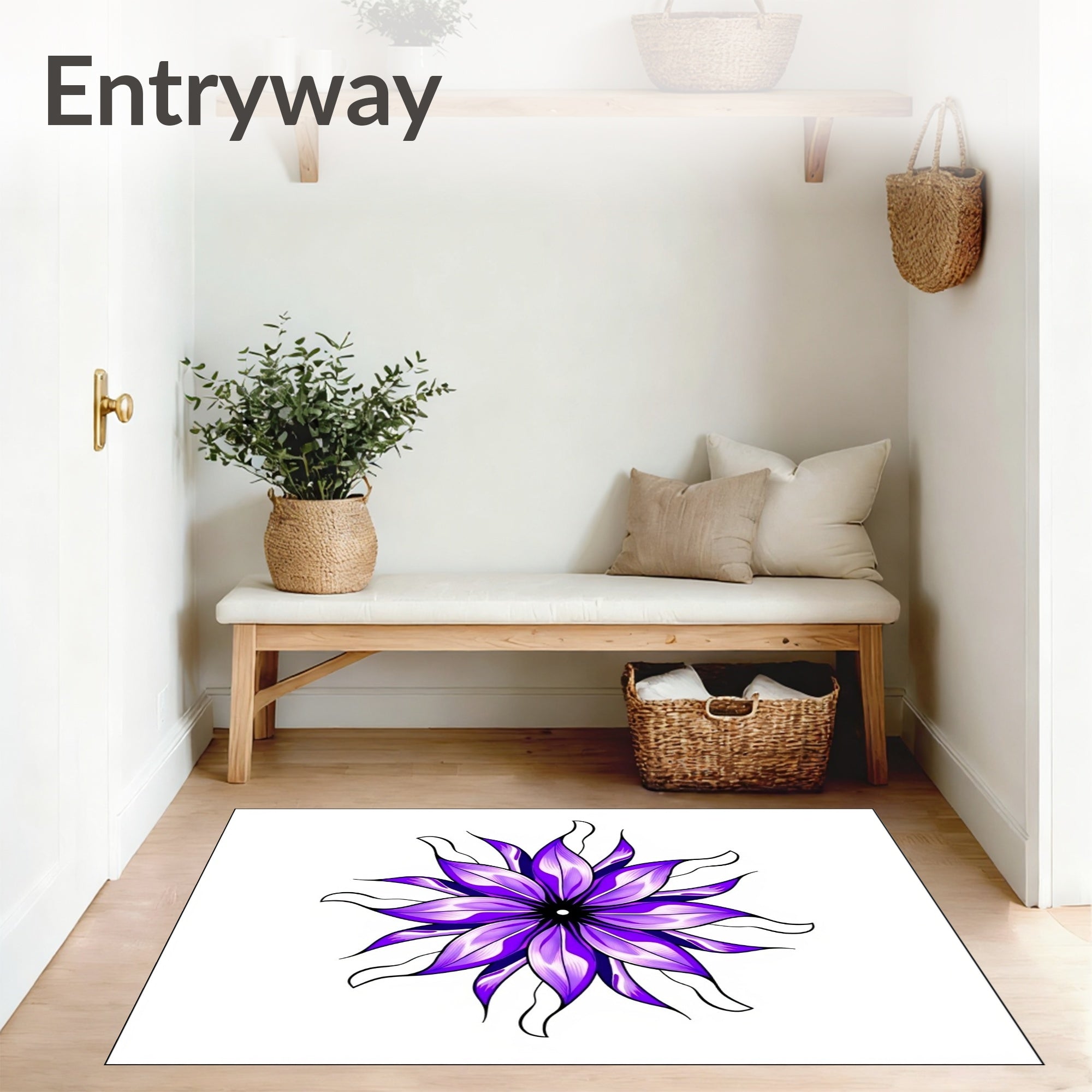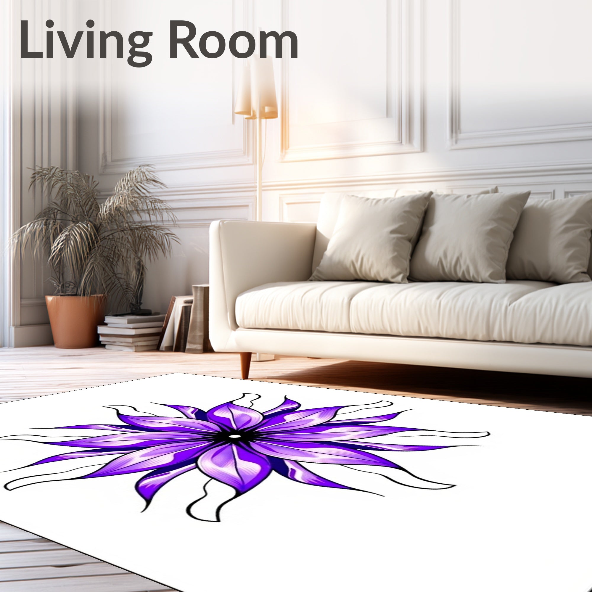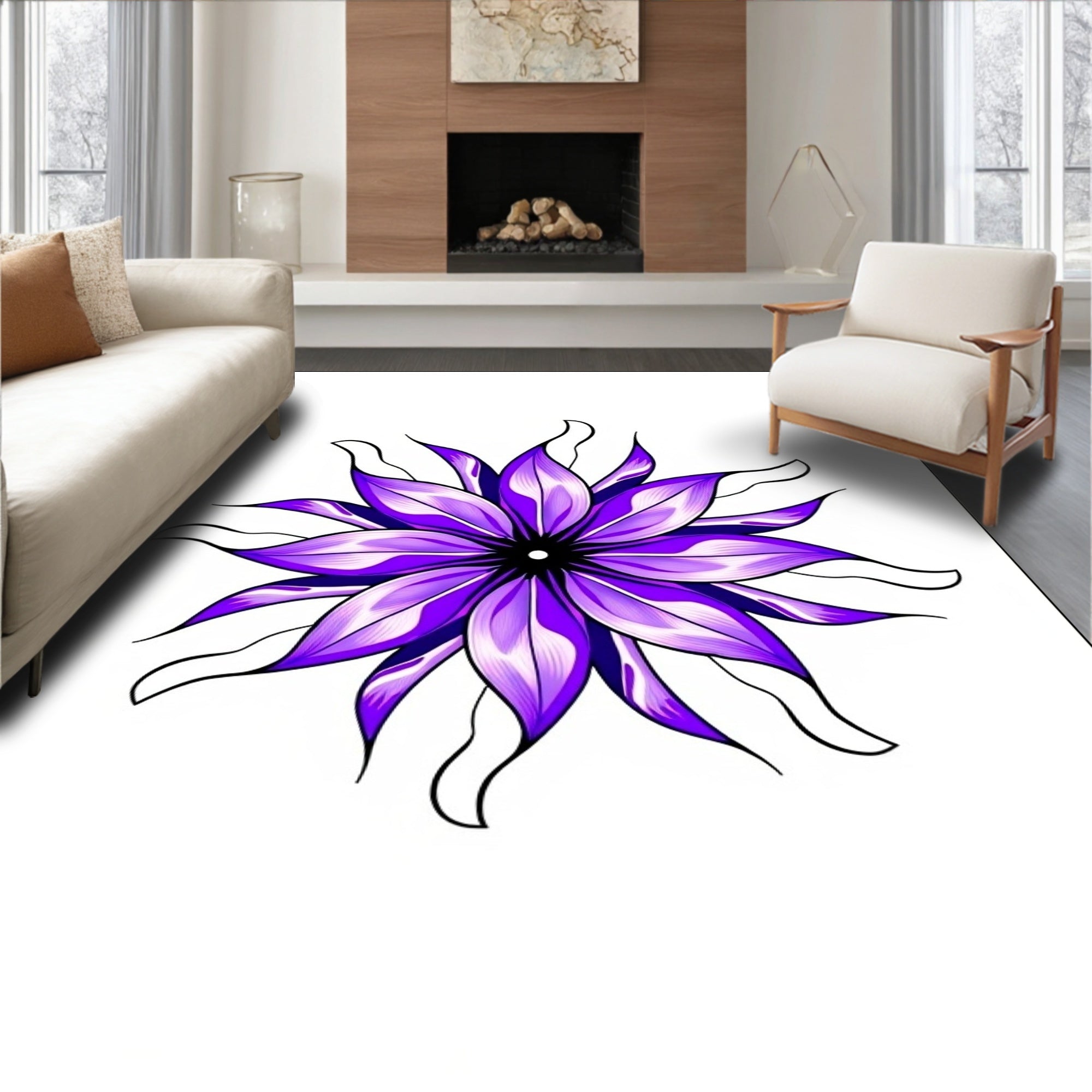 Flatwoven High Traffic Area Rug, Blooming Lotus Petal Symphony, Non Slip, Stain Resistant, Washable Area Rugs for Living Room, Bedroom (Purple) Overview: