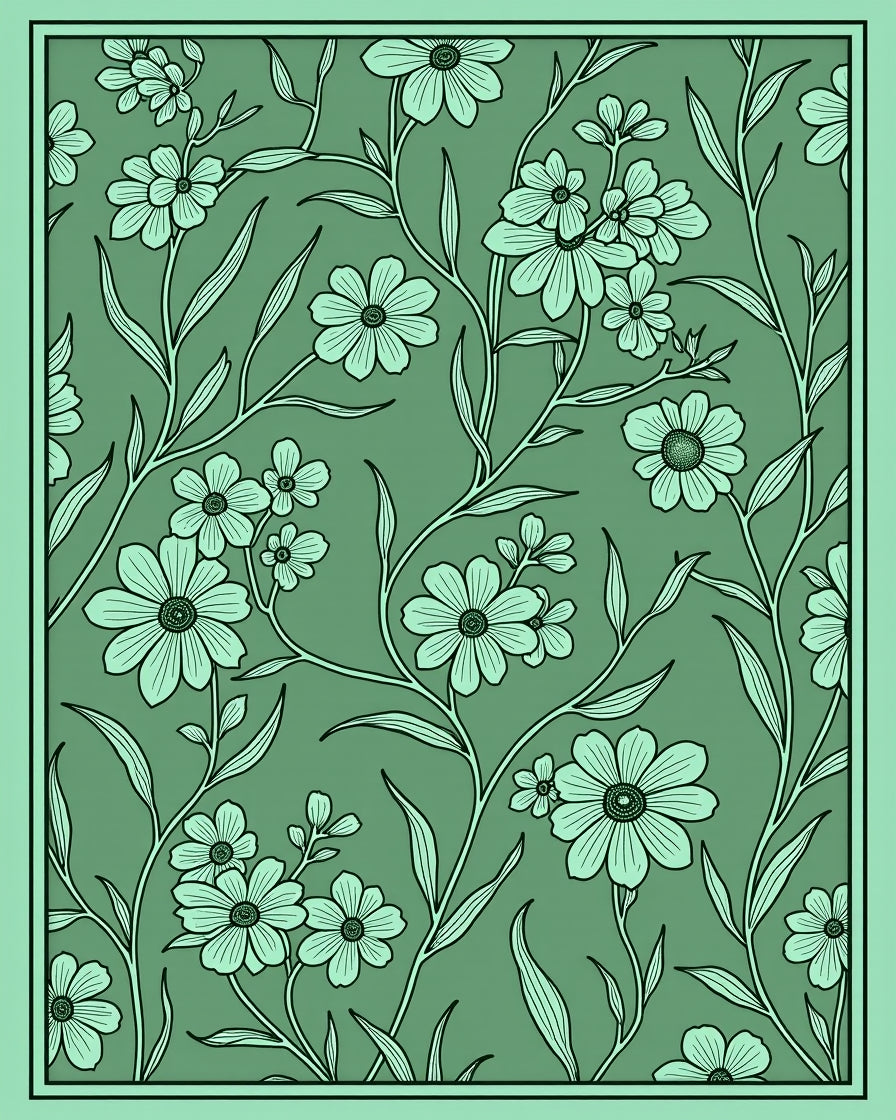 Blossoming Spring Curved Border Artistic (Green)