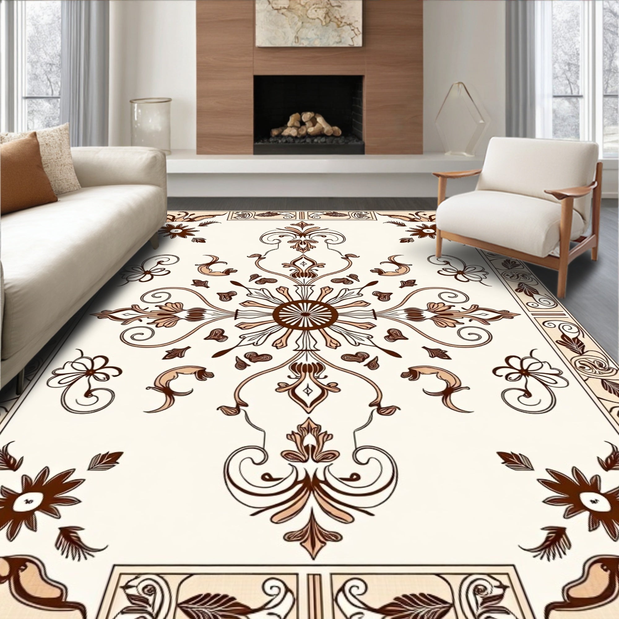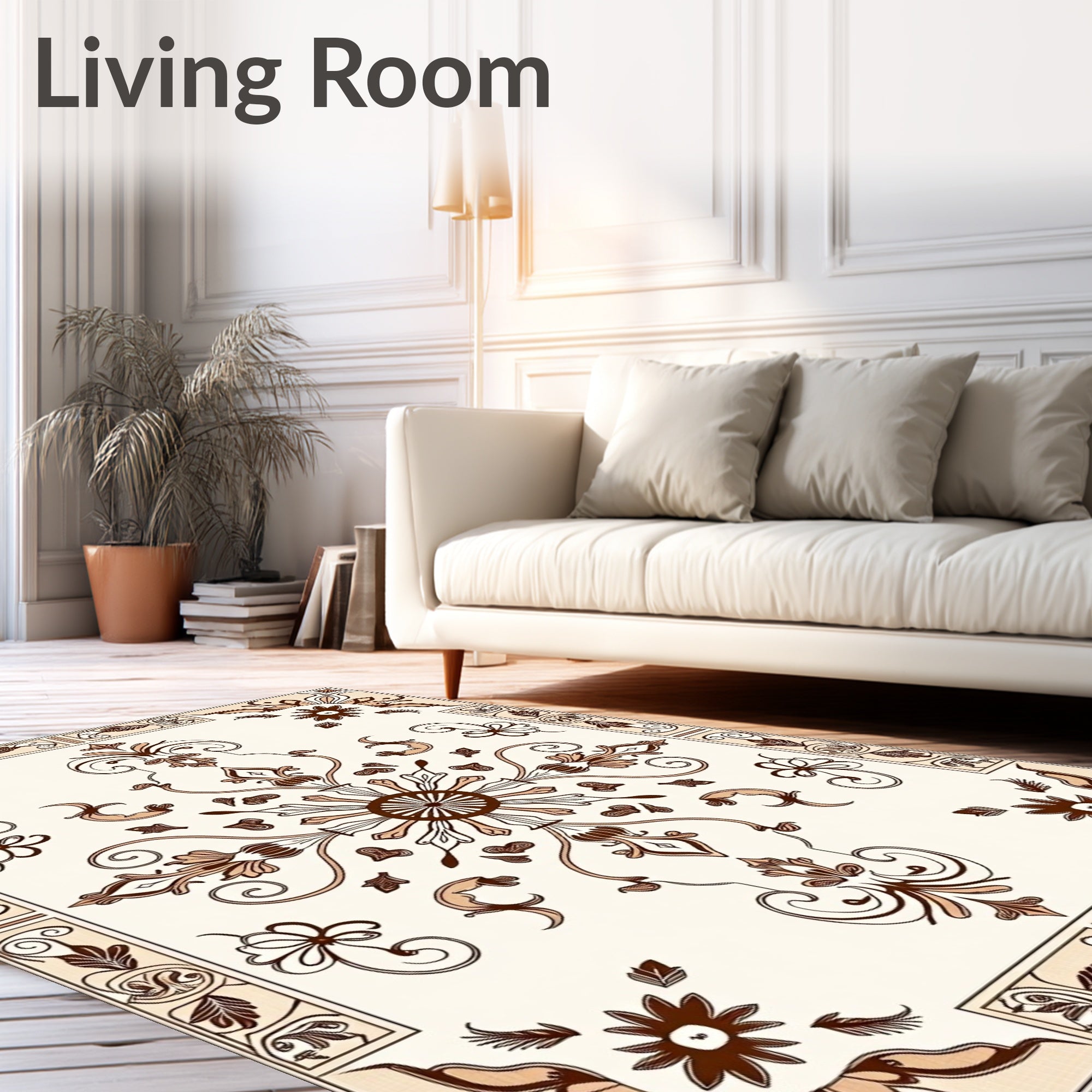 Flatwoven High Traffic Area Rug, Boho Chic with Delicate Floral Swirls and Medallion Accents, Non Slip, Stain Resistant, Washable Area Rugs for Living Room, Bedroom (Ivory) Overview: